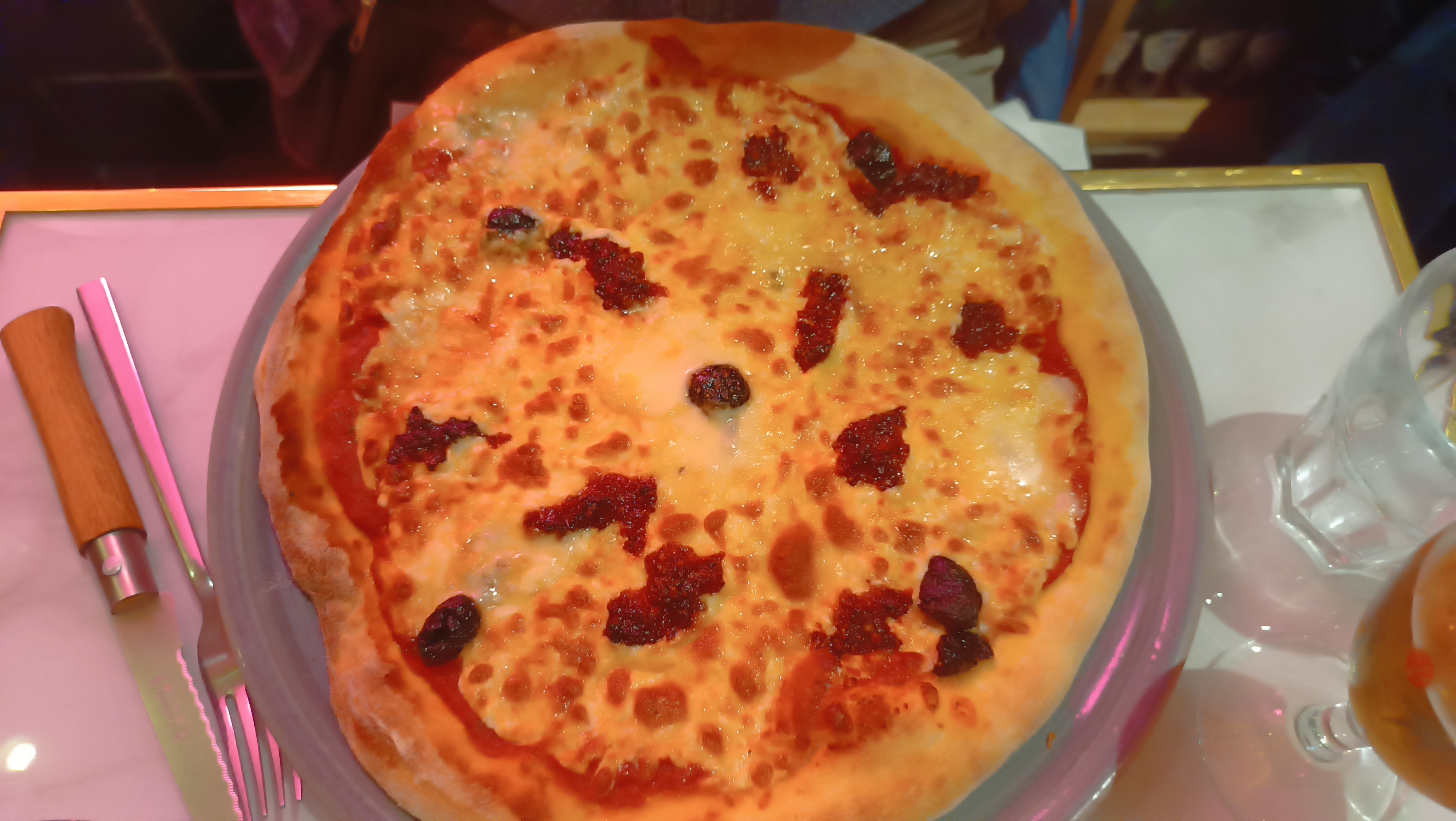 La pâte à pizza est correcte mais faut-il encore pouvoir la couper…. Problème de couverts. L’accueil et le service sont moyens. Hygiène de la salle à revoir.