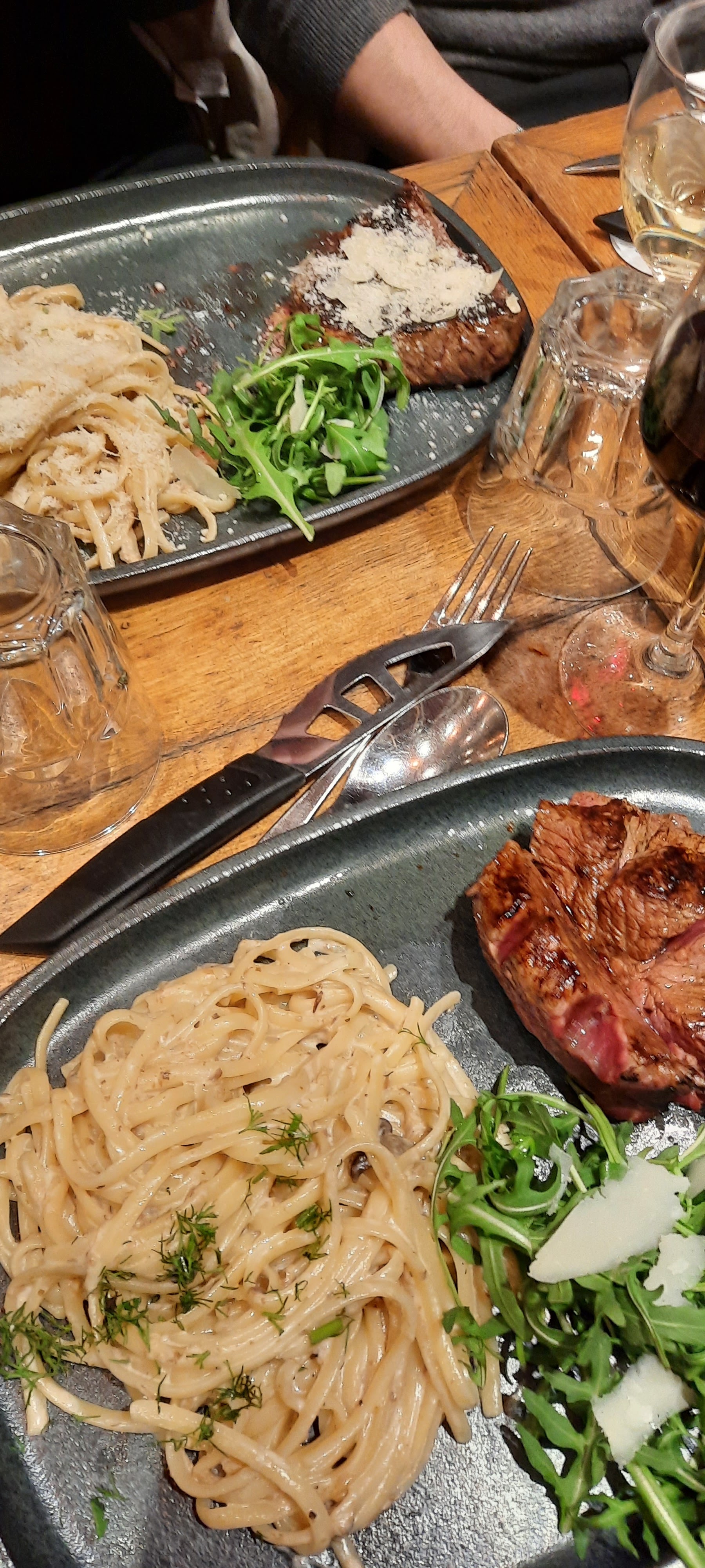 Excellent dîner, très bien servi ! Linguine Saint Jacques, lasagnes saumon épinards. On s'est régalés ! Assiettes copieuses.