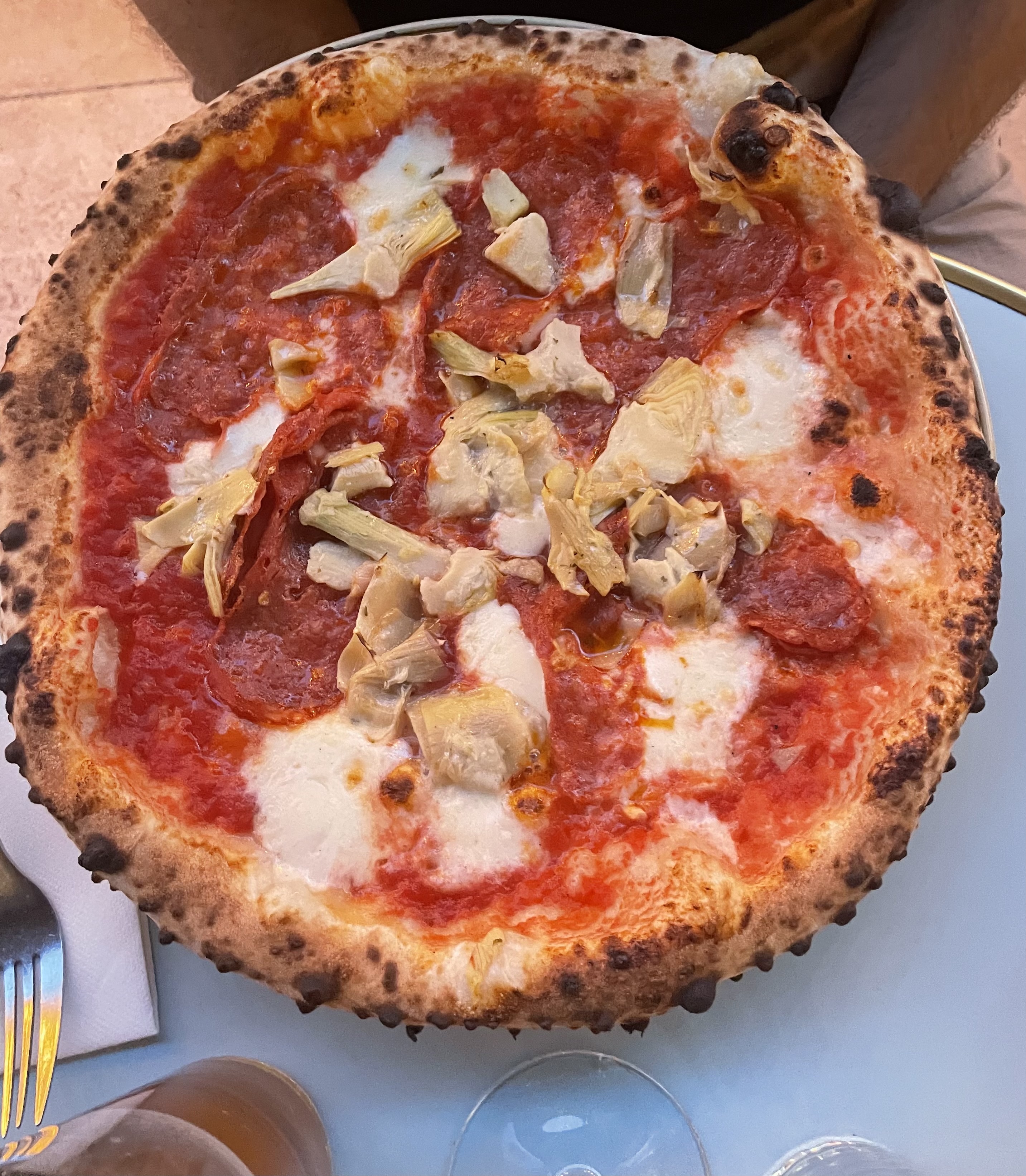 Le restaurant est propre et récent. Le personnel est au top ! Service rapide et avec tout le nécessaire sur demande. Les pizzas sont excellentes ! Surtout la diavola sur la photo est bien savoureuse :)