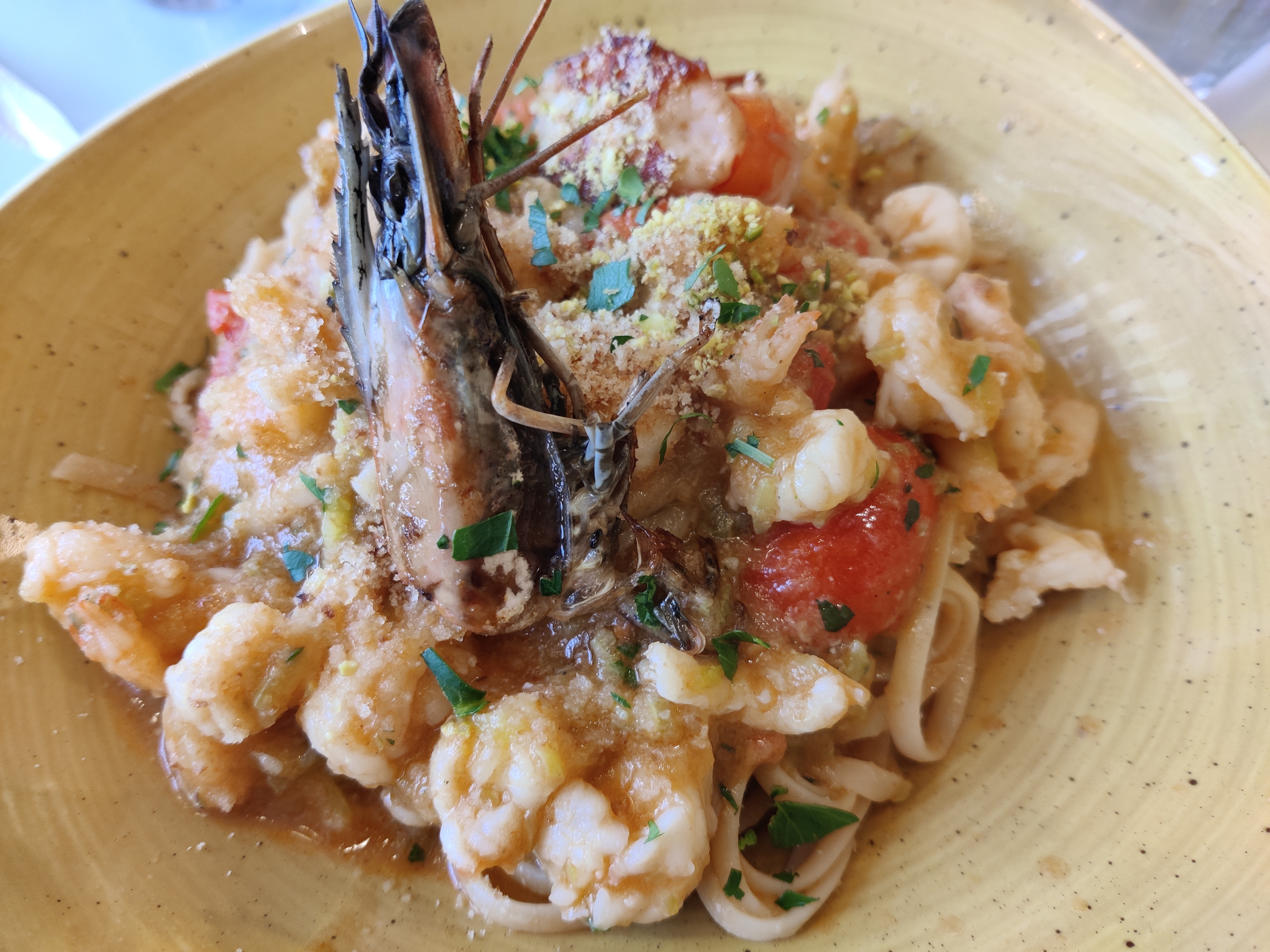 Dans les avis je n'y vois que des éloges , j'ai surement due me trompé d'endroit , apéritif sans la moindre olive ou amuse bouche , pates avec pesto maison? gambas ? dessert boules de glace sans le moindre petit biscuit , bref restaurant sans intérêt.