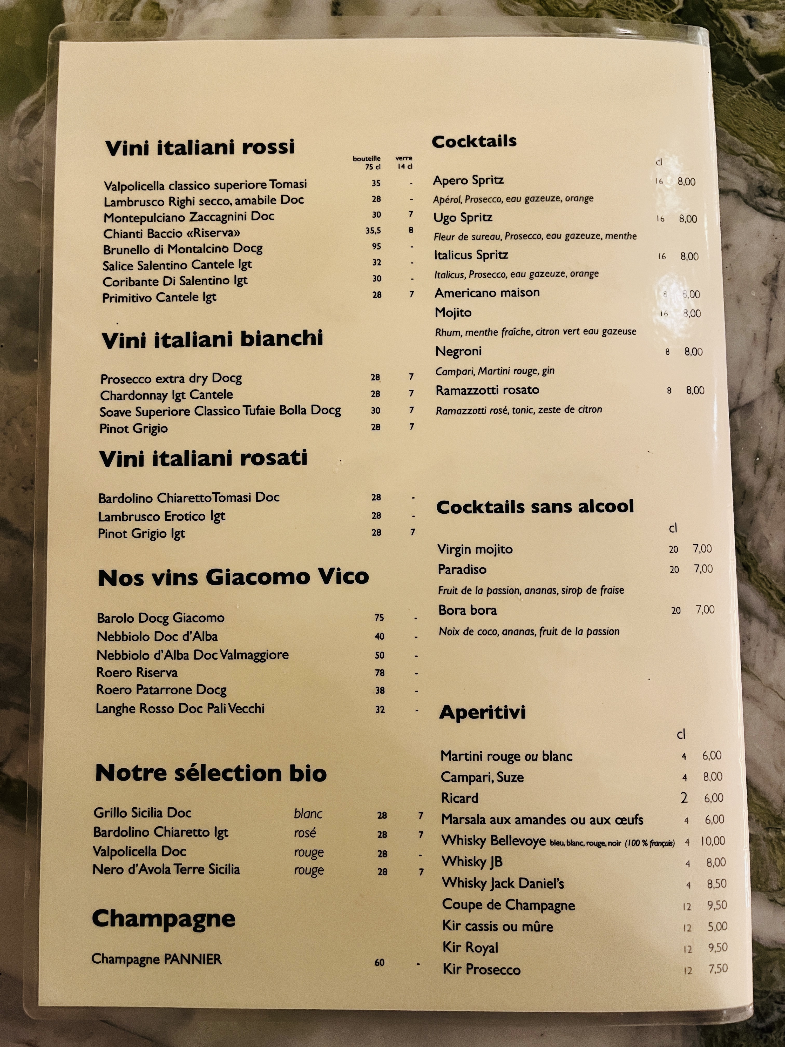 - ✔️ Cocktails et apéritifs