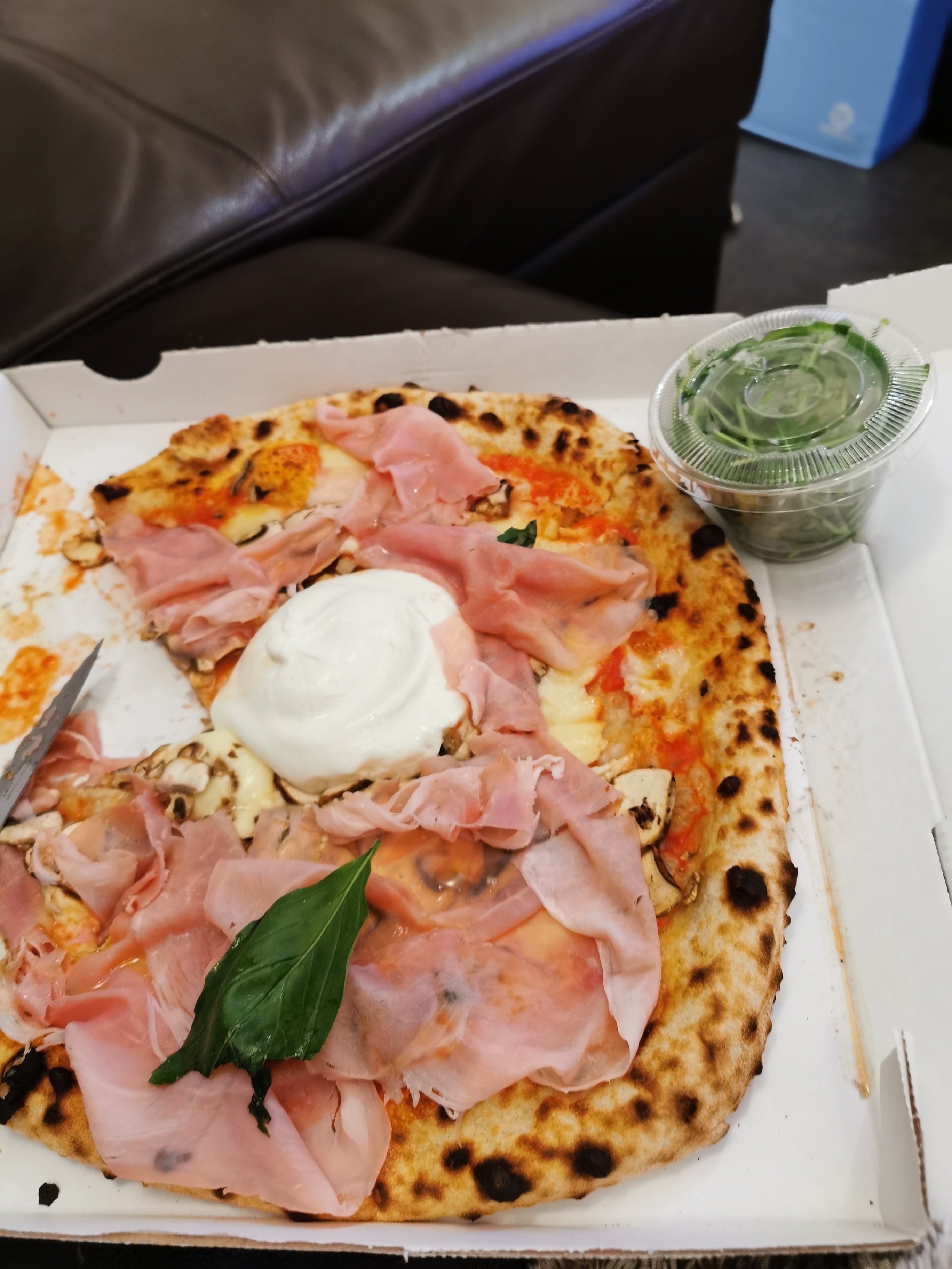 Découvert via Uber eat, très bonne pizza même si le prix est élevé ( Uber eat doit déjà prendre une bonne part) Les ingrédients sont frais, les champignons par exemple restent croquant. Et on sent que les produits sont de bonne qualité comme le jambon de parme et jambon blanc. La roquette est mise à part dans un pot pour éviter qu'elle soit chauffée par la pizza. Les quantités sont tres appréciable nous avons plus faim après la pizza ! Le tiramisu est un peu petit par contre mais vraiment bon !! Je conseille de goûter !! Je rejoins un peu les commentaires sur le côté salé de la sauce tomate mais c'est une appréciation personnelle Bonne adresse en tout cas je recommande