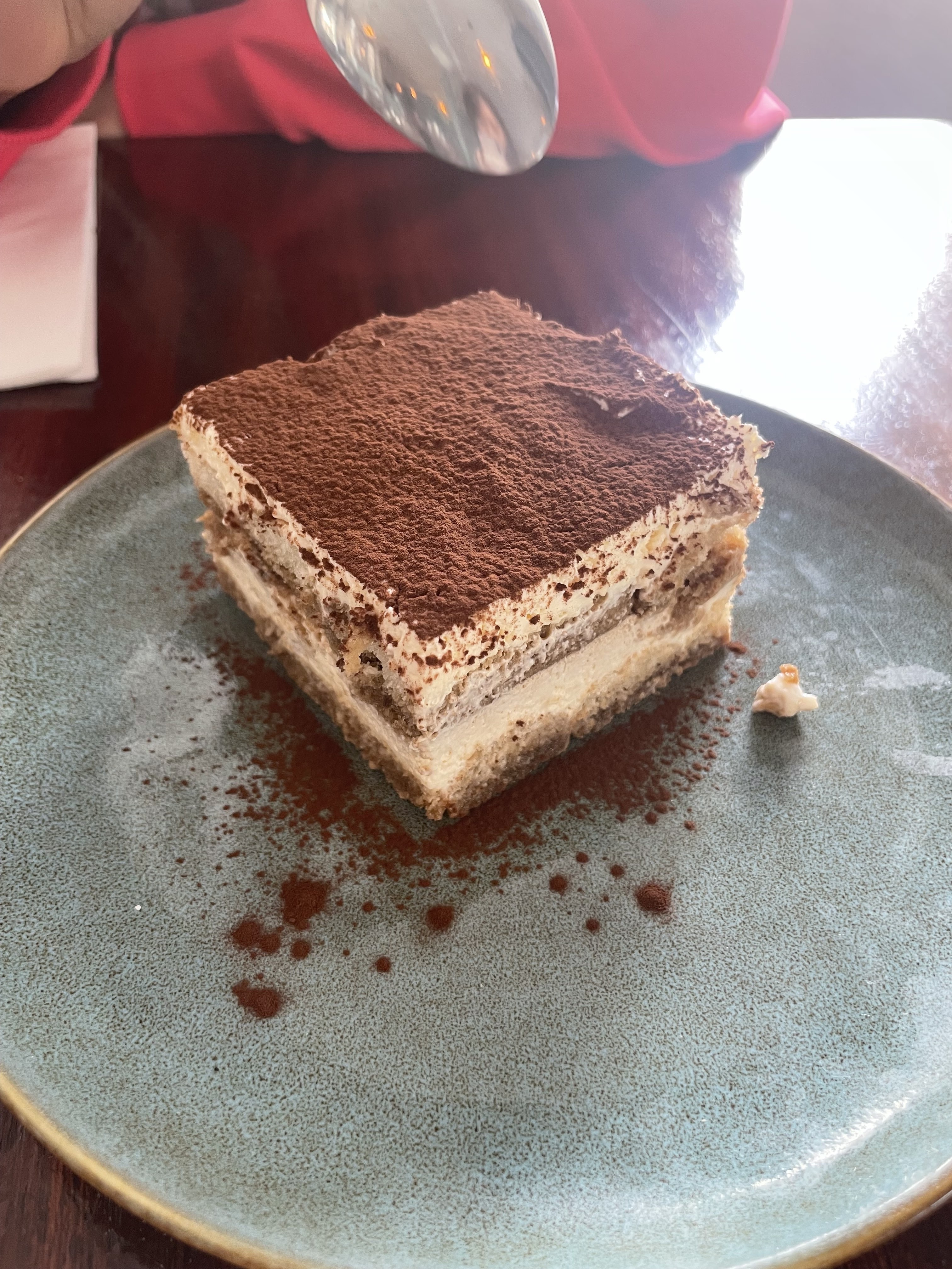 Un délice! Et pourtant je suis exigeante en cuisine italienne après être allée de très nombreuses fois dans plusieurs villes d’Italie (ma belle famille est napolitaine). Nous avons commandé des pâtes, la sauce tomate est fraîche, ça change tout. Les autres ingrédients sont frais aussi. De plus, le serveur nous a apporté des bouts de pâte à pizza en guise de pain et maintenant j’ai hâte de revenir pour manger une pizza, bravo 🤣 En desserts, le tiramisu était très savoureux car bien parfumé, ce qui est rarement le cas de beaucoup de tiramisus insipides. Le baba accompagné de son petit verre de limoncello avait l’air bien gourmand aussi.