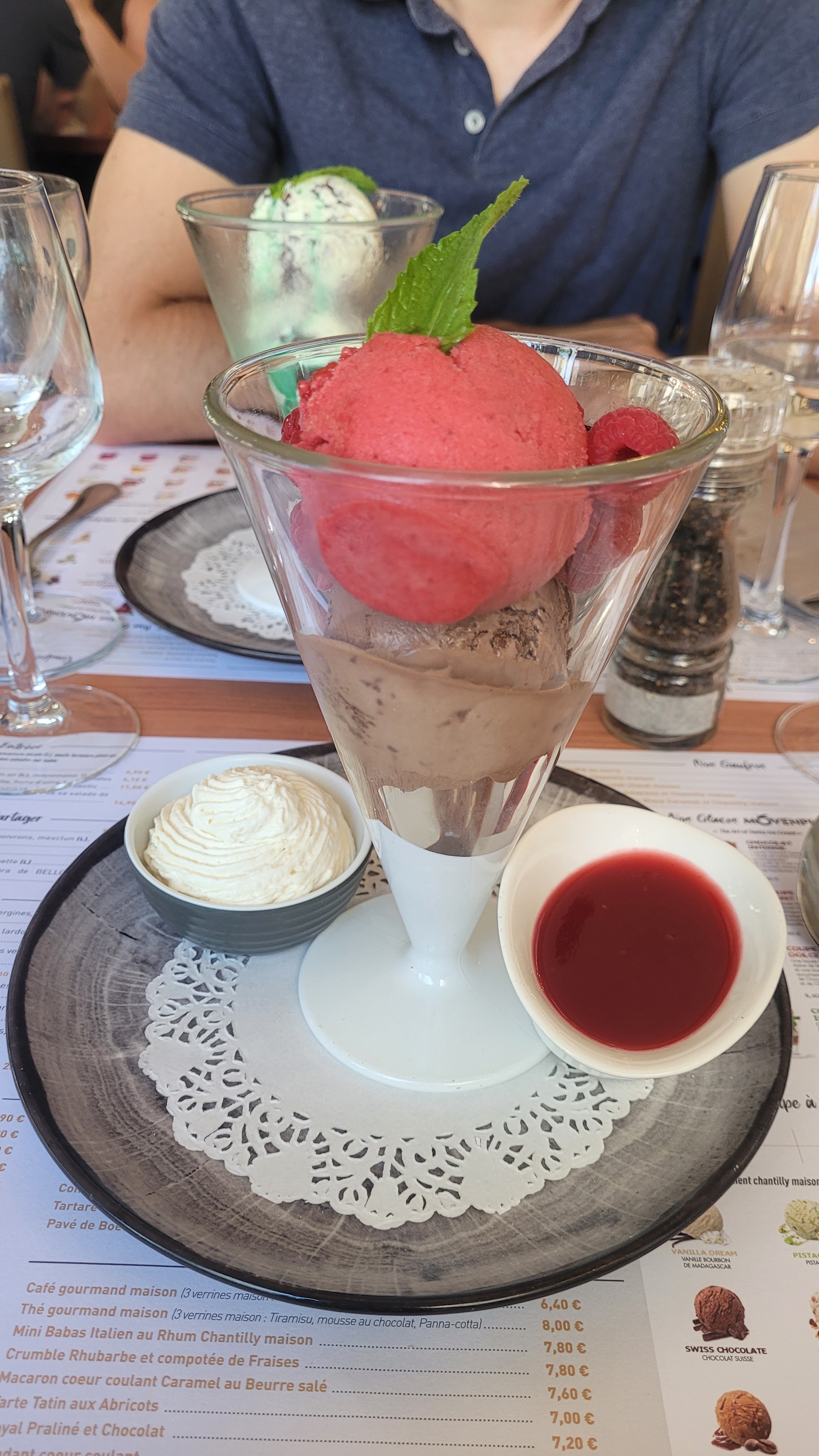 Une très belle découverte. Resto dans la rue principale de chantilly. Le cadre est très sympa, l’accueil chaleureux Très bon repas Ne passez pas à côté des coupes de glace faites maison À refaire très vite Ne changez rien c’est génial