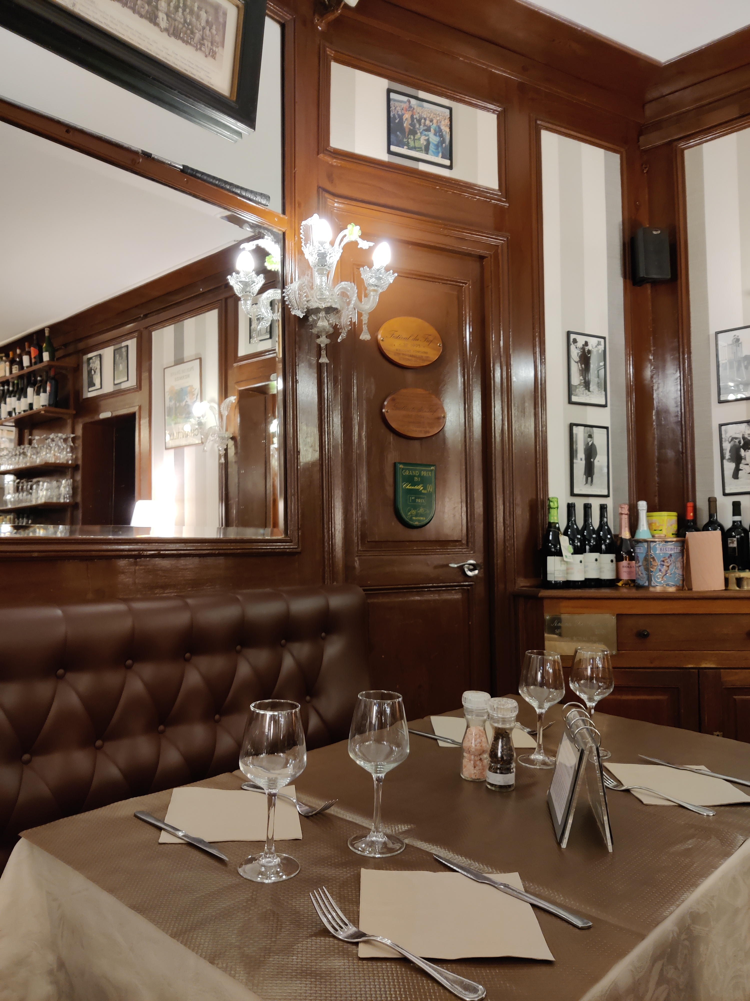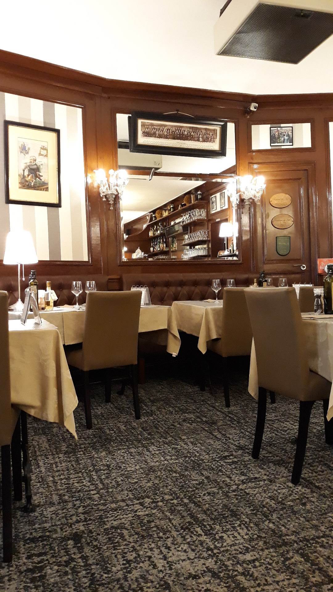 Ambiance détestable. Les deux personnes préposées au service pas sympathiques (l'une devant prendre sa retraite dans une semaine, se foutait de tout, ne voulait pas faire de calculs pour l'addition, et aurait préféré que nous la divisions par 5, ce qui n'était pas notre choix), l'autre soupirait pour exprimer son mécontentement devant des demandes parfaitement raisonnables, prix trop élevés pour la qualité fournie, en particulier le vin, le moins cher, en carafe de 75 cl, servi glacé, ce qui pour un vin rouge est une preuve de mauvais goût, pas de fromage, autre preuve du même mauvais goût (Un repas sans fromage est une belle à qui il manque un œil : Brillat-Savarin), nous ont pratiquement virés aux alentours de 14 heures, un peu tôt quand même... Bref, un piège à gogos. À éviter à tout prix.
