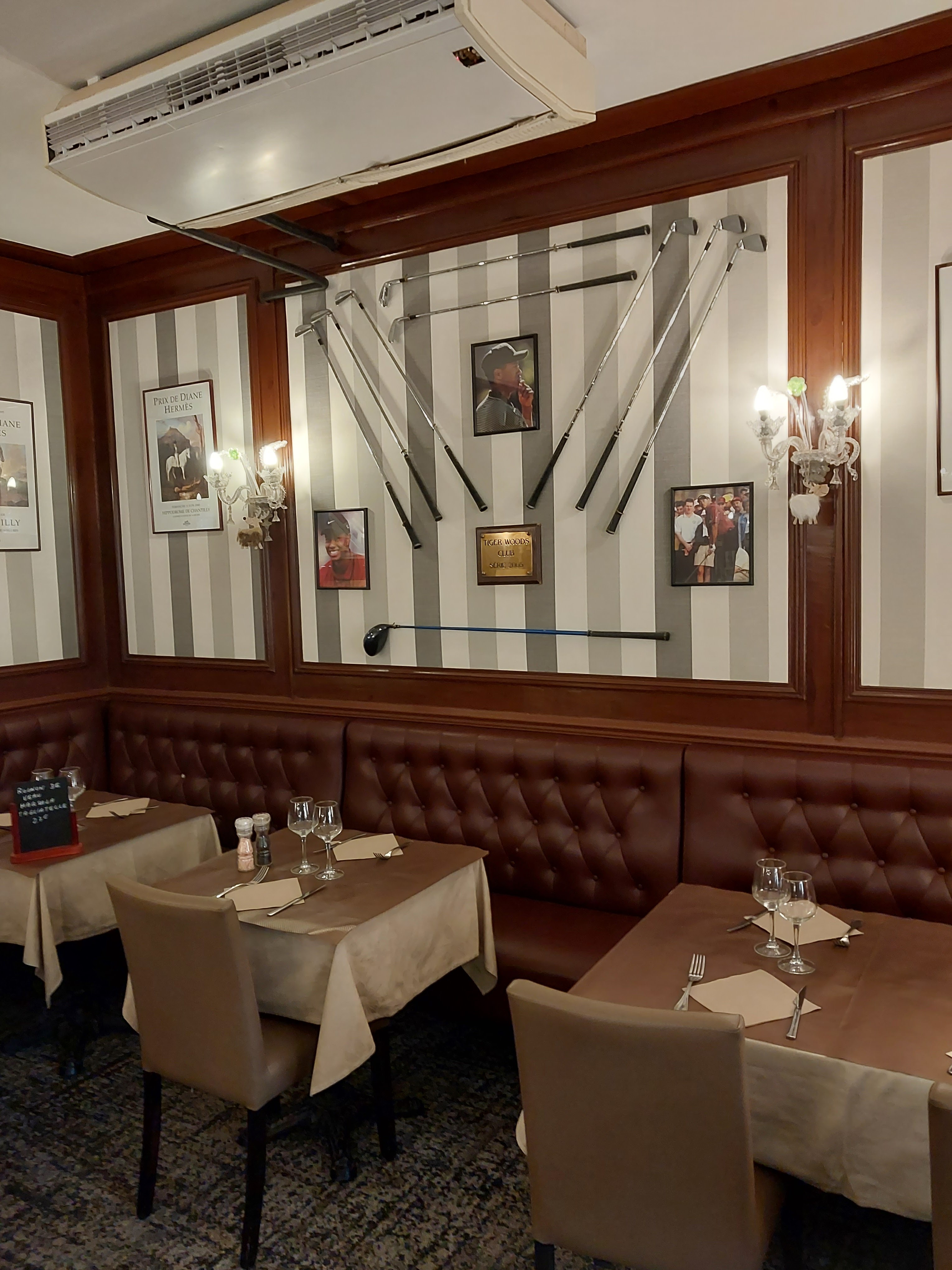 Patron et serveurs tres sympa? Cadre de golf et d'equitation soigné. Belles tables et entrée de legumes grillés géniale. Plein centre de chantilly et facile de se garer. Aller boire un verre au Sylvia apres et soirée reussie a coup sur