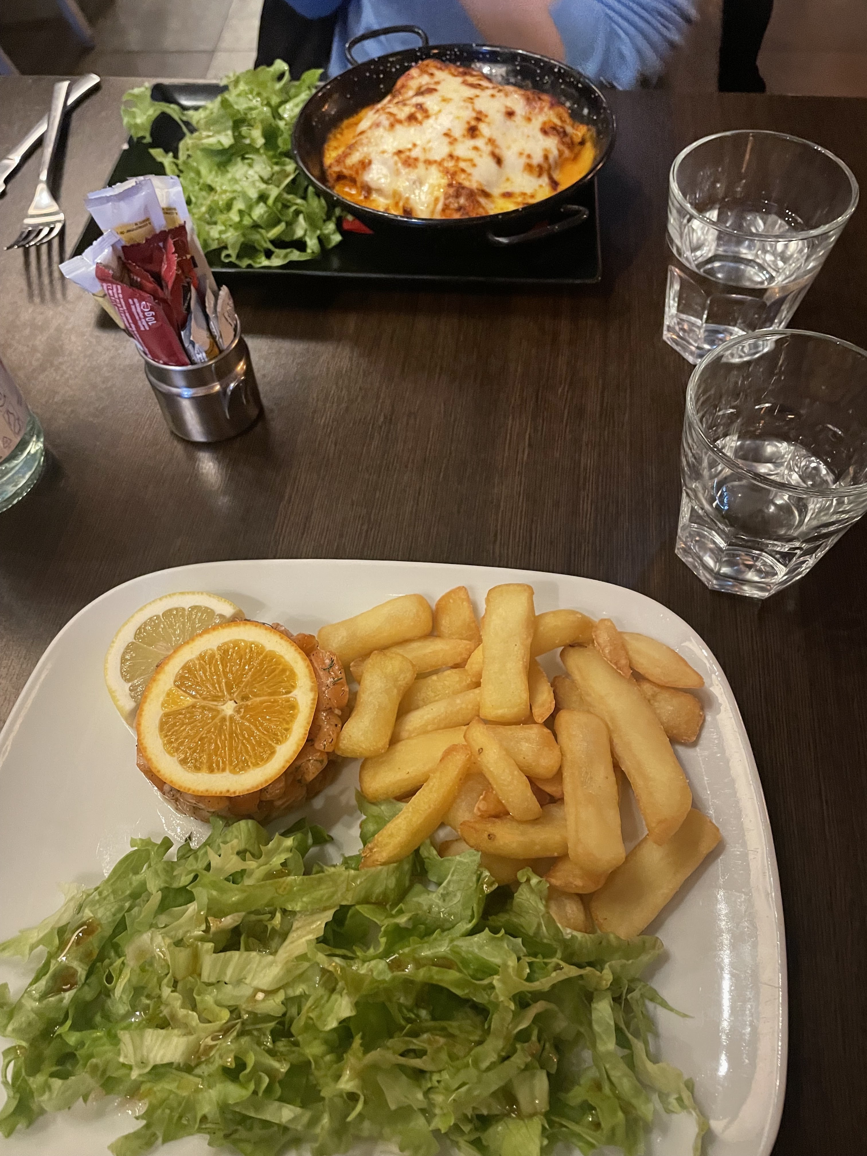 Repas très copieux et bon, la terrasse est très sympa. Par contre, zéro chaise haute, et donc nous ne reviendrons pas. C'est quand même le comble quand on prend la peine de faire un menu enfant.
