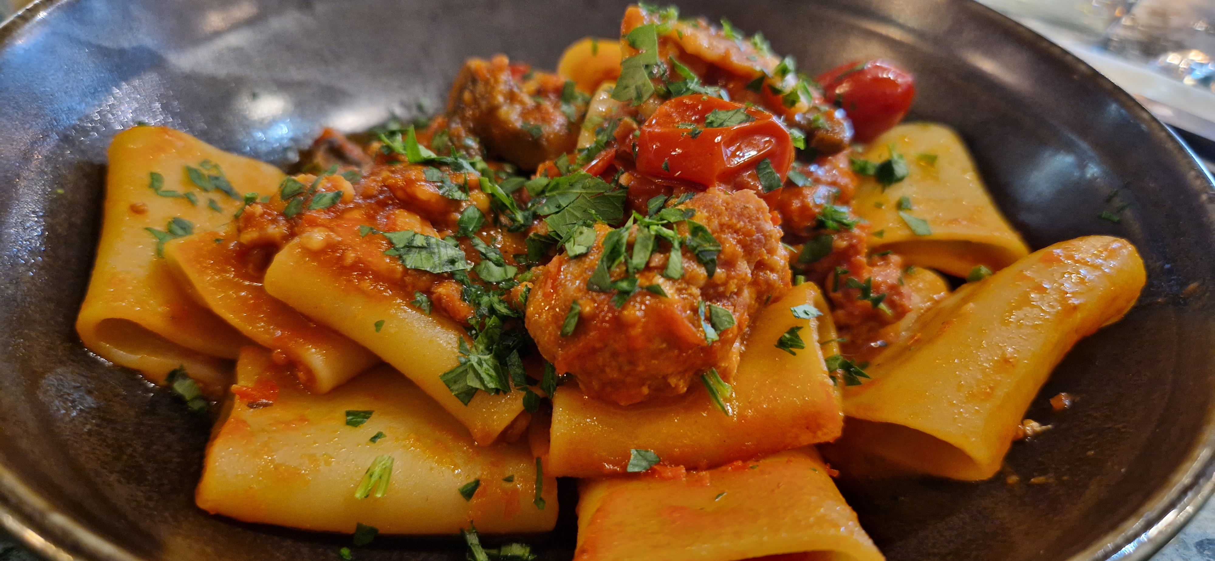 Arrivés en couple sans réservation à 20h40 nous avons pu avoir une table en 5 min… Le lieu est très sympa et l’accueil des serveuses impec. Nous commandons et nous sommes servis rapidement pour un resto blindé. Les plats sont très copieux. Vraiment juste une petite remarque sur les pâtes à l’amatriciana : le guanciale est très peu présent trop fin et fumé ( je pense qu’il s’agissait plus de pancetta mais pas de vrai guanciale qui doit être coupé en bâtons ou cubes 😎) Les pâtes et la sauces étaient excellents Le plat de poulpes grillés impec. Bel établissement