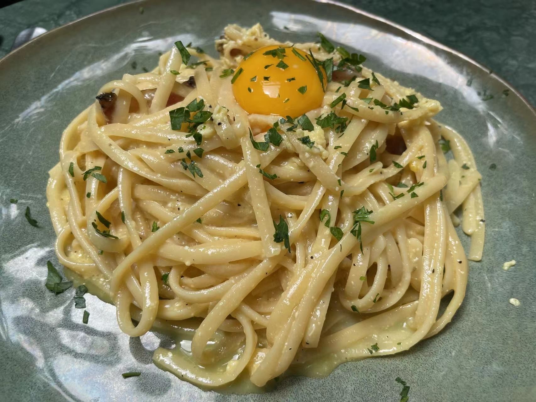 Accueil, très bonnes pâtes à la burata (mozzarella crémeuse et légèrement coulante), deux grandes tables à l'intérieur ce jour-là, donc un peu bruyant.😎