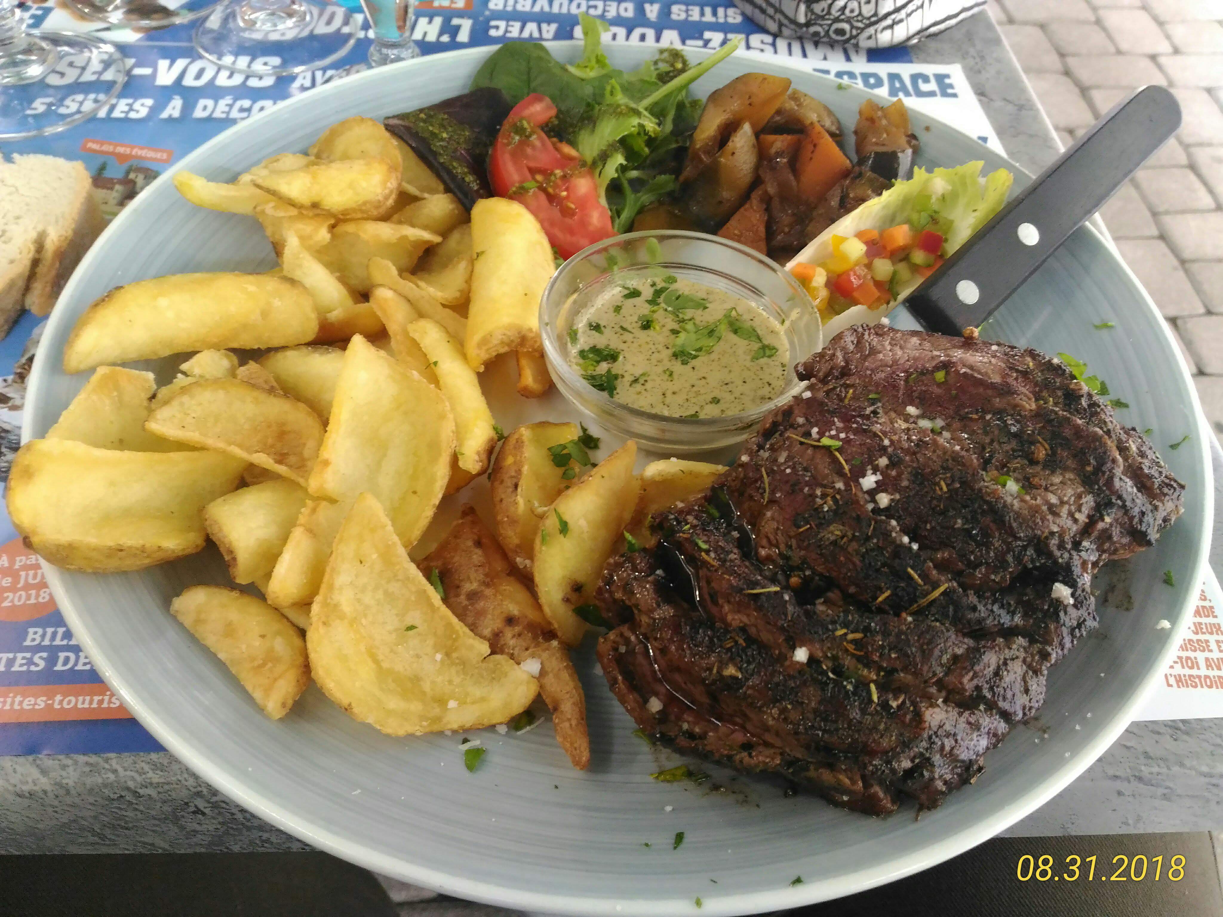 Viande très bonne mais les 300g n’y sont pas le prix et t’abuser et surtout très long on nous as dit des frite mais on as eu 3 patate bref j’en conclus que du mauvais
