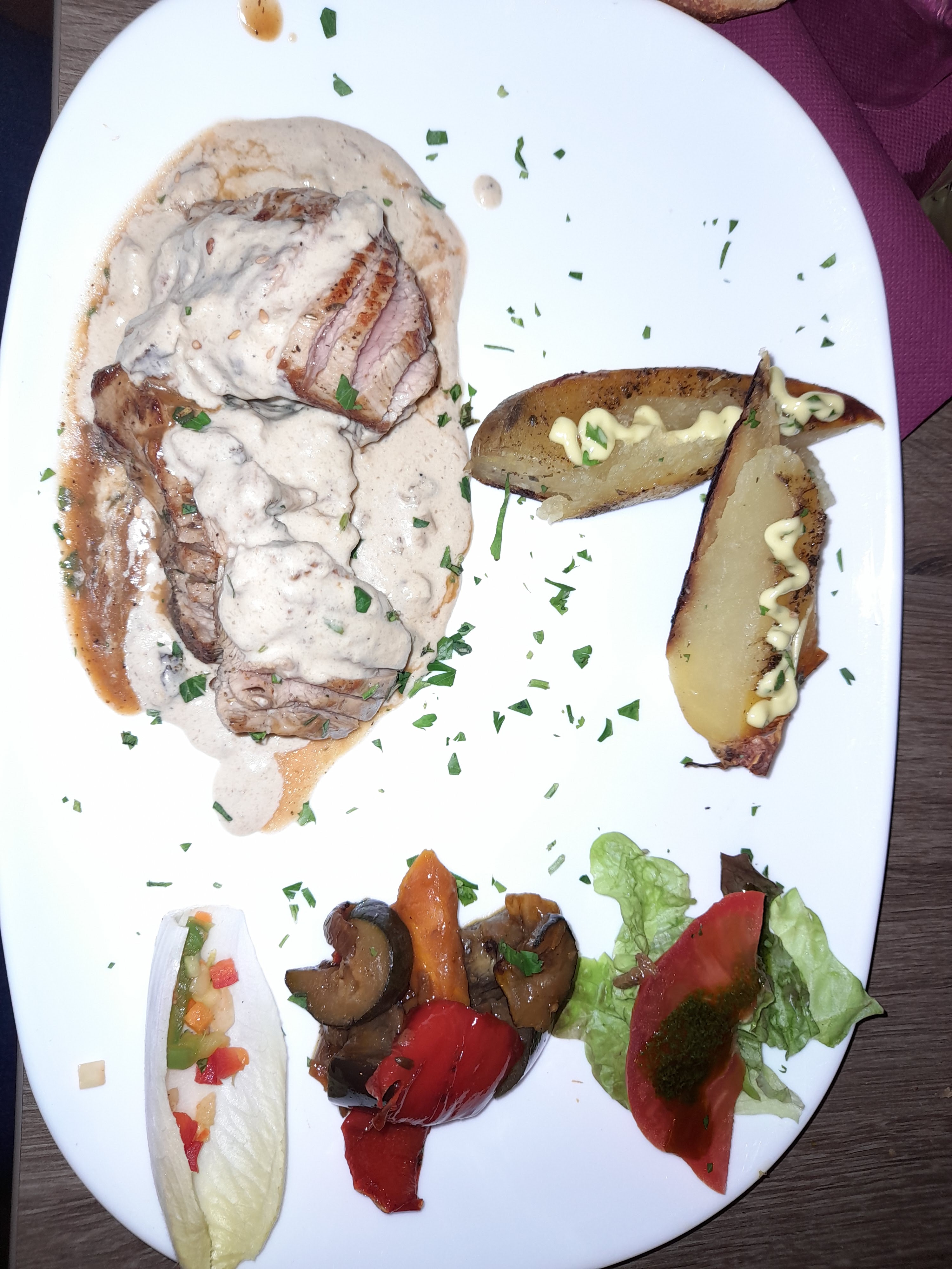 Honnêtement ? Je vous conseille ce restaurant à 100%. Accueil très chaleureux, souriant et très professionnel. Et ne parlons pas de la cuisine (parlons-en) repas très copieux et de bonne qualité. Super !