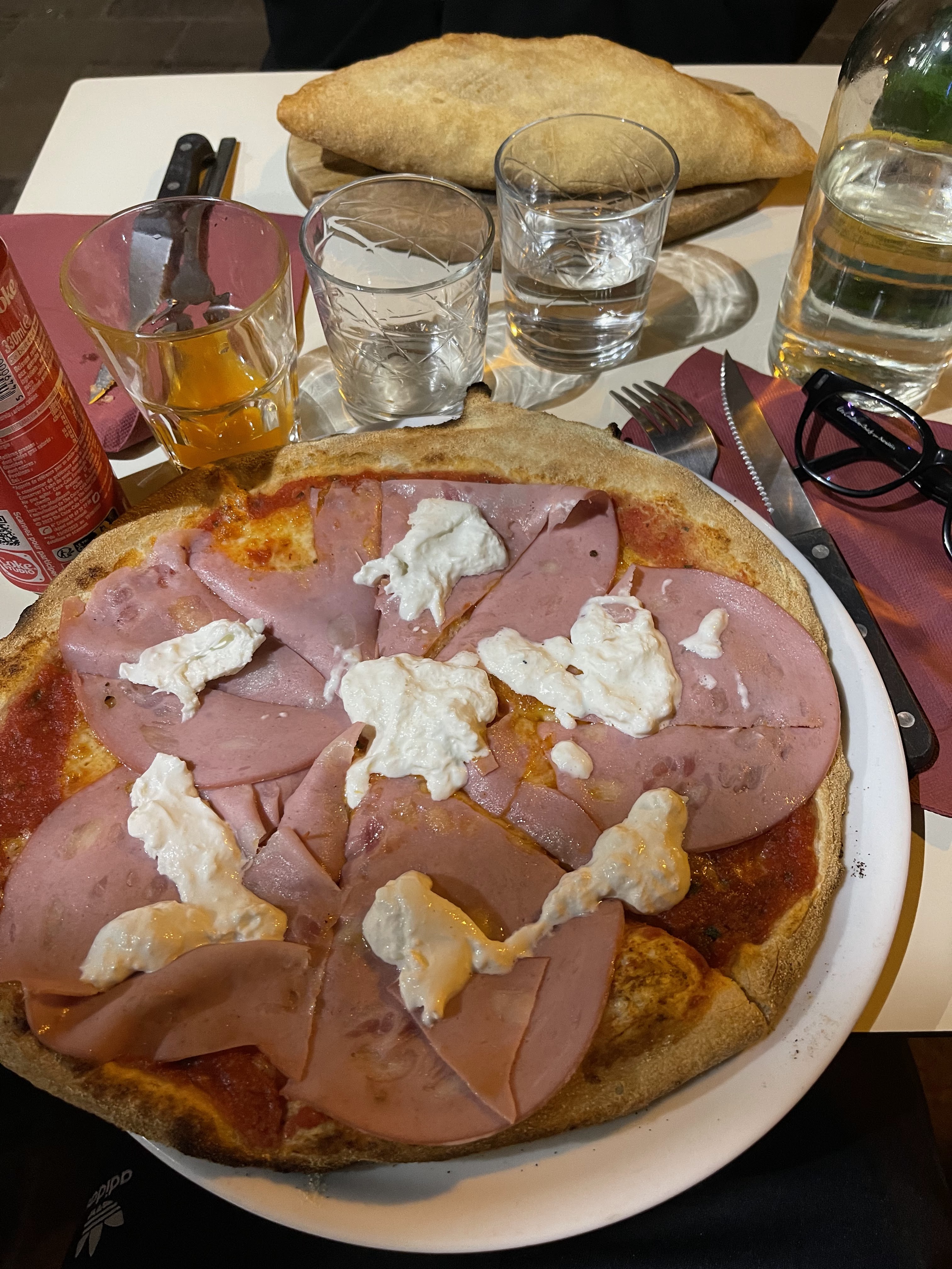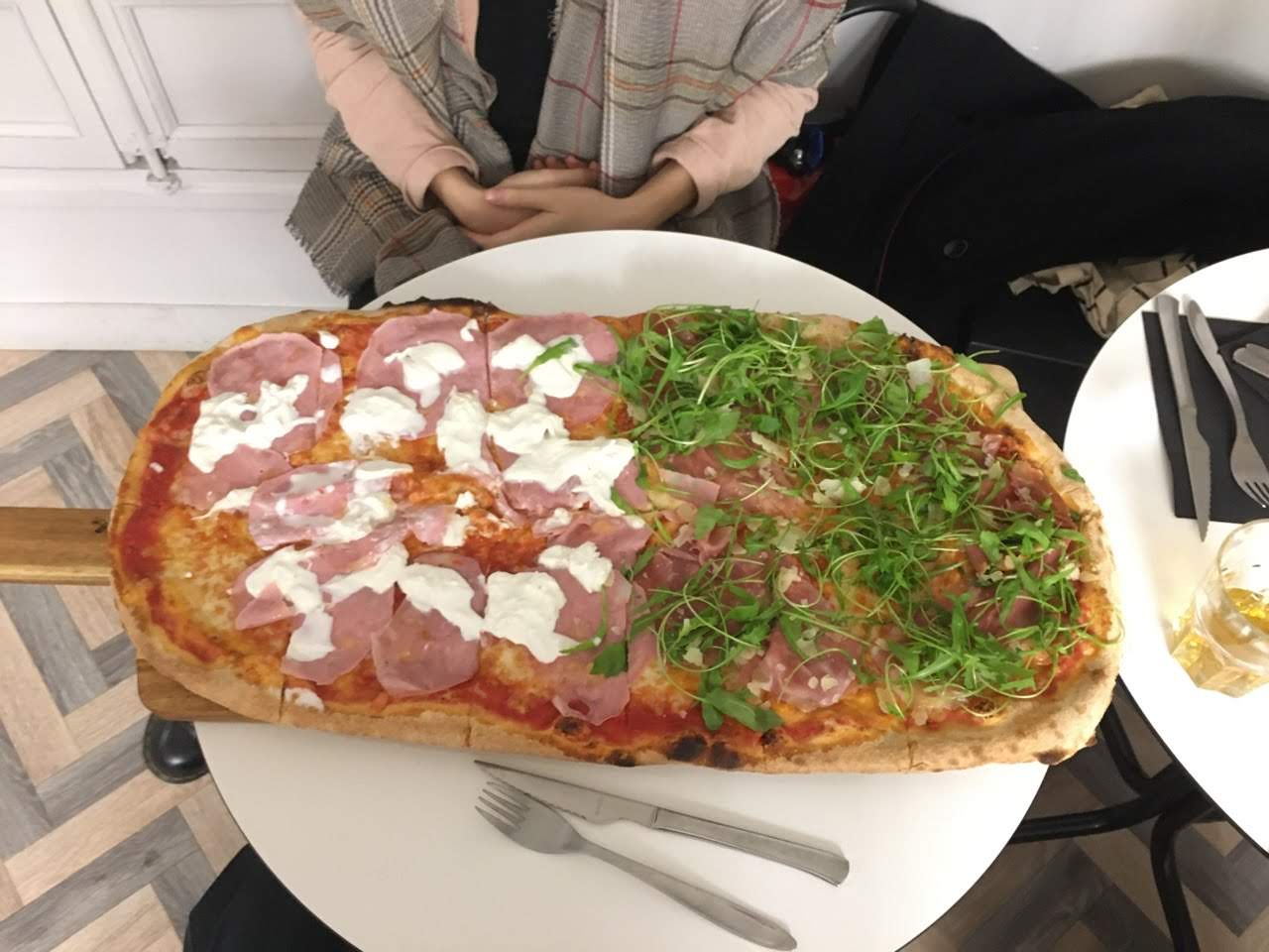 Pizza horriblement sèche en raison d'une base tomate quasi absente. Le pire demeure la mozzarella qu'on s'attend à trouver en belle place comme mentionné sur la carte. La serveuse nous explique que cette recette n'en contient pas. En insistant face à la carte, elle nous dira qu'elle est dans la sauce tomate. Au moment de payer, devant ma demande réitérée d'explications, elle me dit que c'est une pizza romaine dont je n'ai peut-être pas l'habitude et que la mozzarella est râpée. Trois scénarios donc, pour expliquer cette absence de mozzarella. Le chef a débauché, la note est salée pour une semelle de blé avec du jambon dessus. Inadmissible et, au regard des expériences similaires relatées en avis, cela ne constitue -t-il pas un modus operandi frauduleux ?