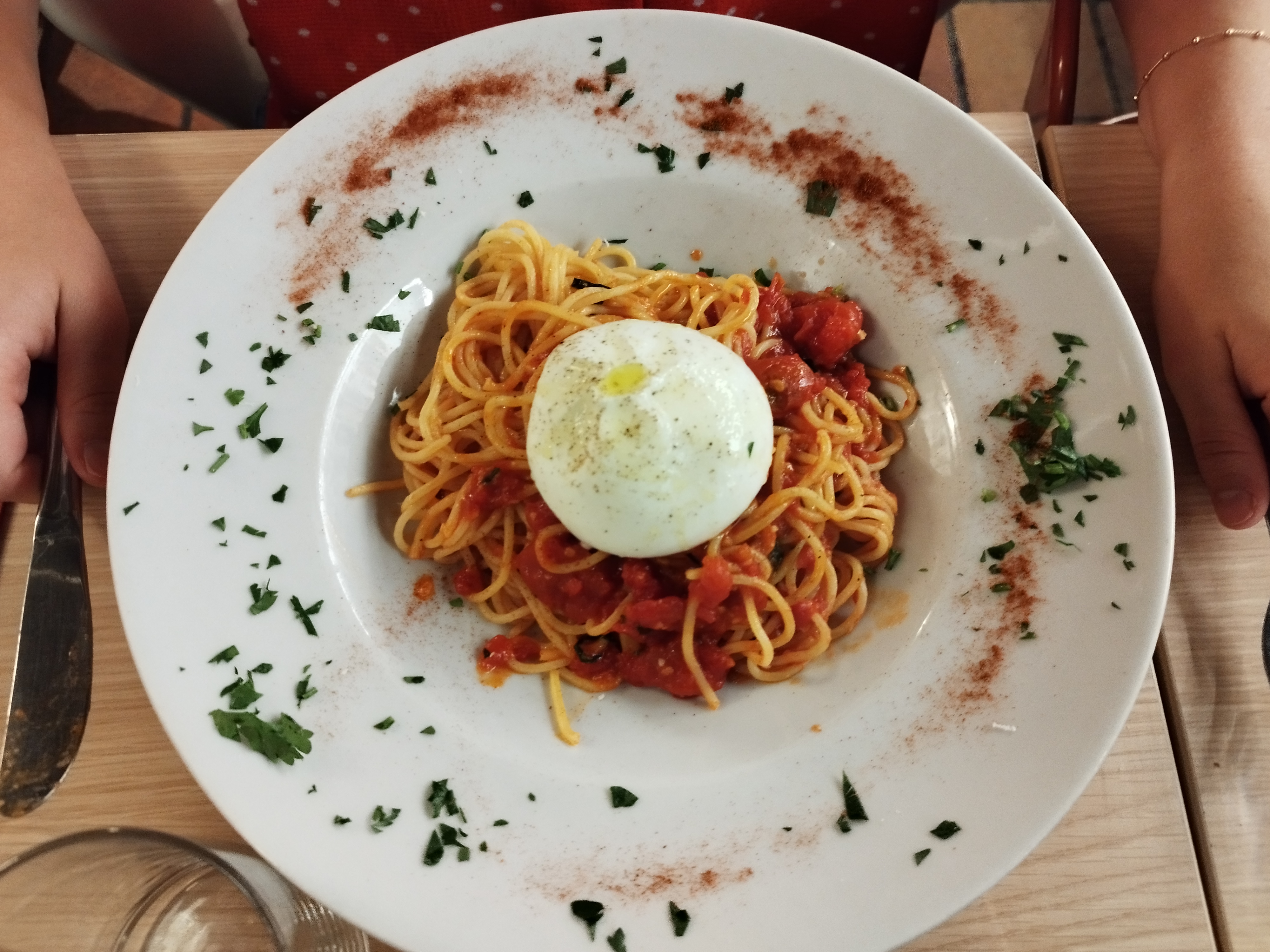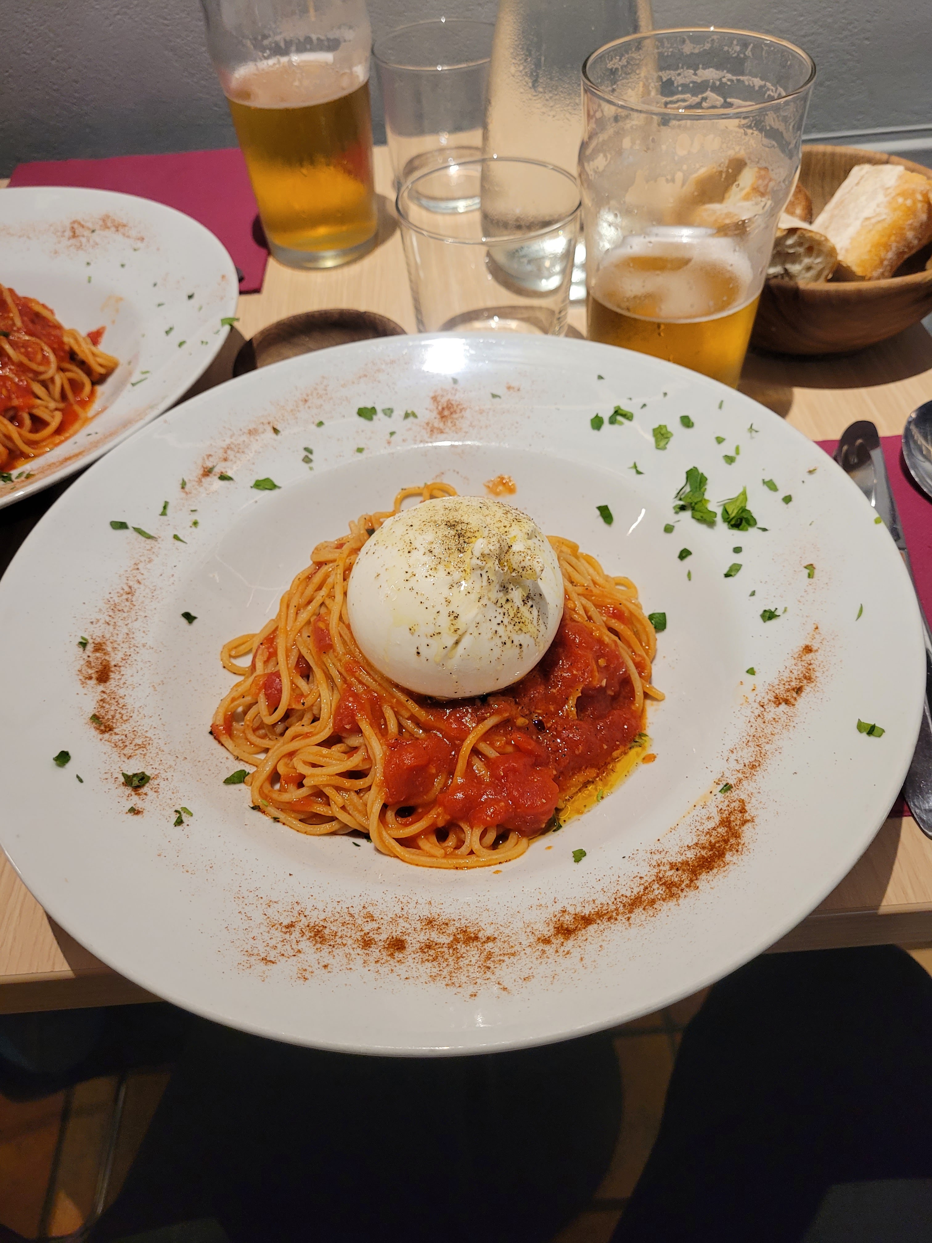 Bon resto avec des produits de qualité ! Les pates à la sauce tomate, huile de truffe et à la burrata. La burrata était très bonne ! Par contre, les desserts n'étaient pas très bon. On a testé la panna cotta, le parfait et le tiramisu.
