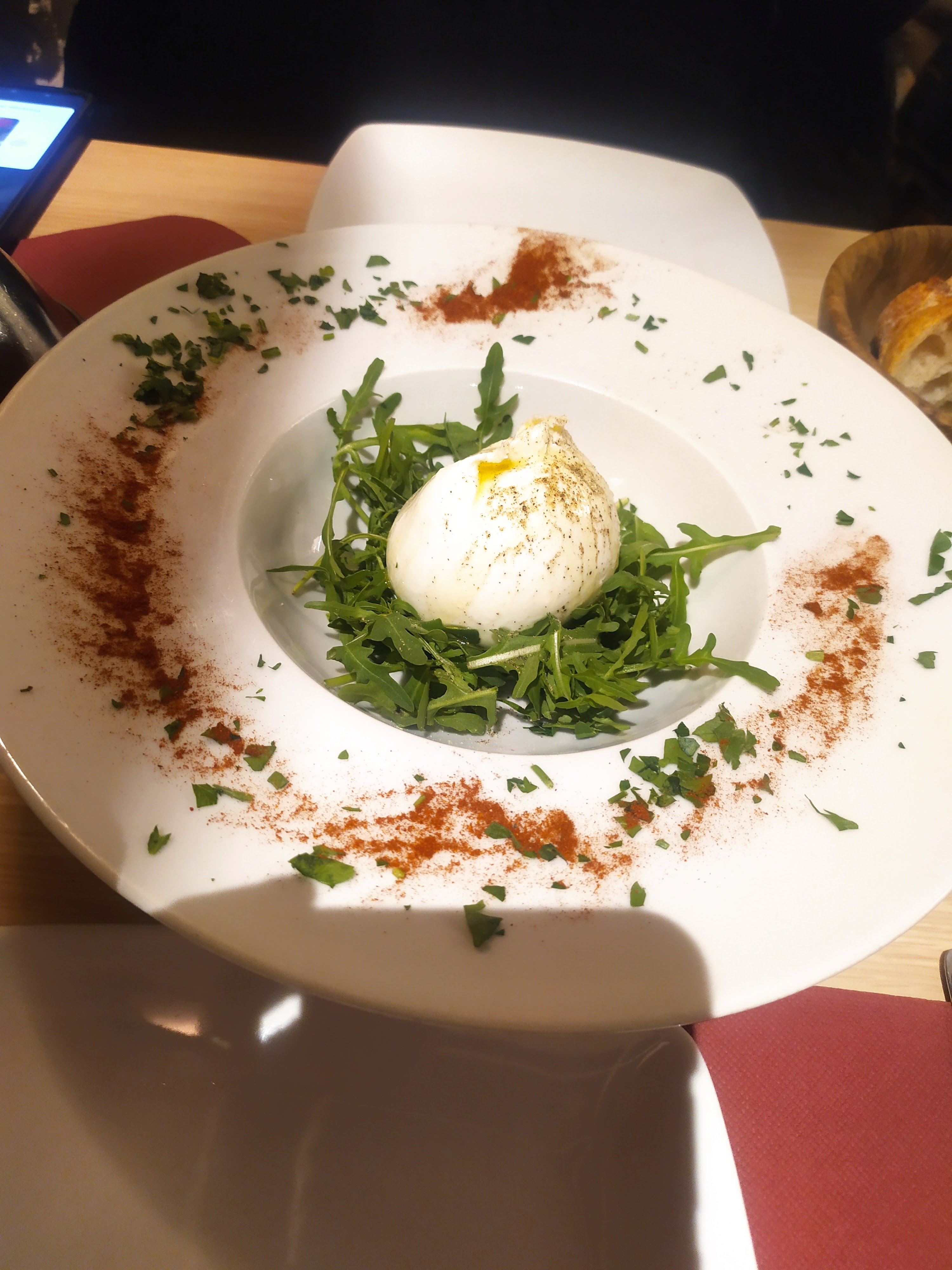 Accueil chaleureux . Restaurant très petit dc circulation difficile. Promiscuité avec les tables voisines et assez bruyant. Très déçue au niveau des plats. Comme d autres commentaires : aucun goût au niveau des produits. Tout tient dans la vaisselle et le dressage mais rien au niveau gustatif pour des prix assez élevés. Je ne comprends pas comment on peut appeler cela de la cuisine italienne avec zéro produits frais de qualité. Dommage.