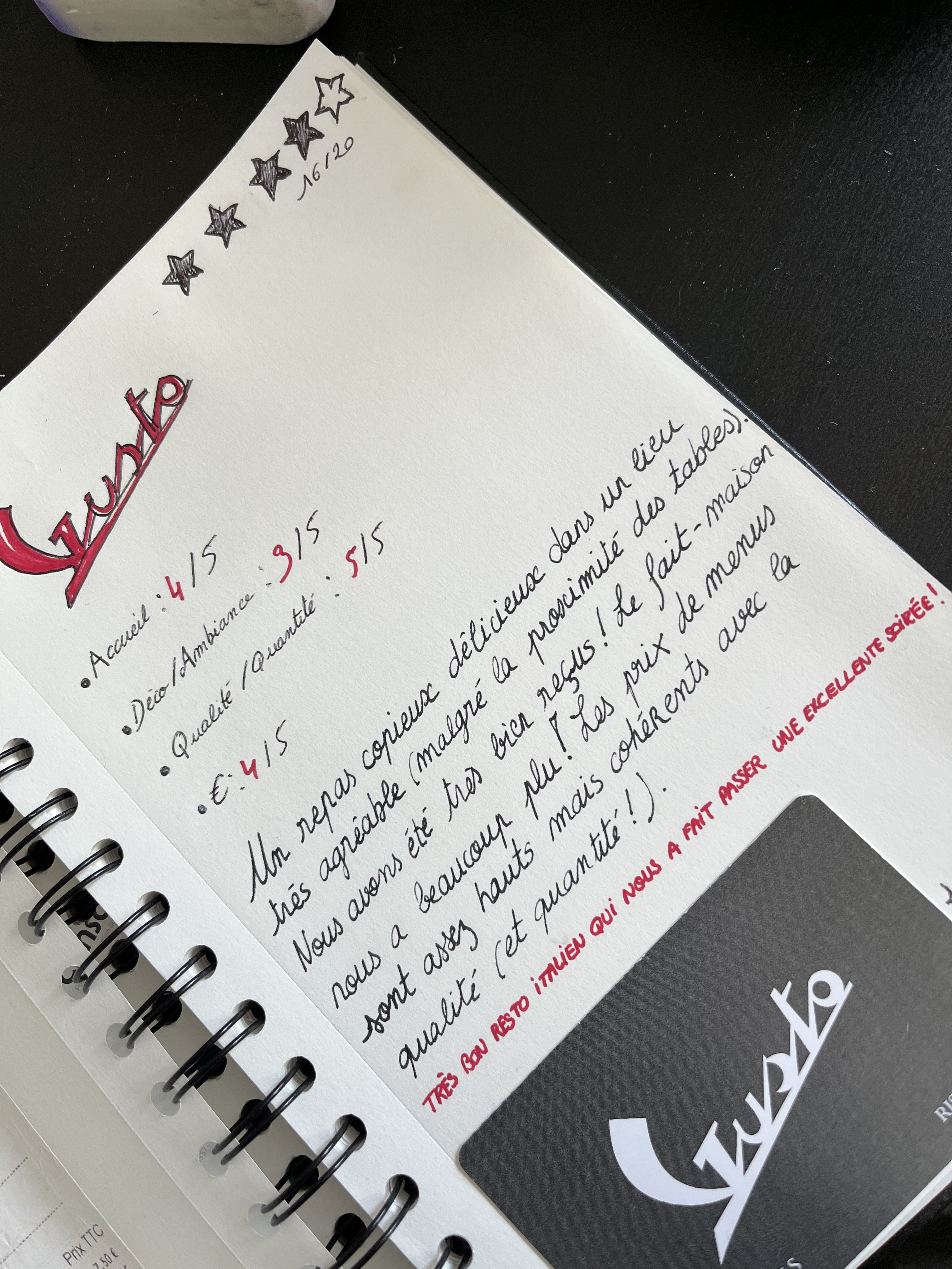 Très bonne expérience à Gusto. Les plats étaient délicieux, fins et bien servis ! Pour le service, très agréable et surtout pro (les verres ou bouteilles vides ne restent pas à encombrer la table très longtemps, pratique qui se perd en général je trouve) Pour faire simple je recommande 1000 fois!