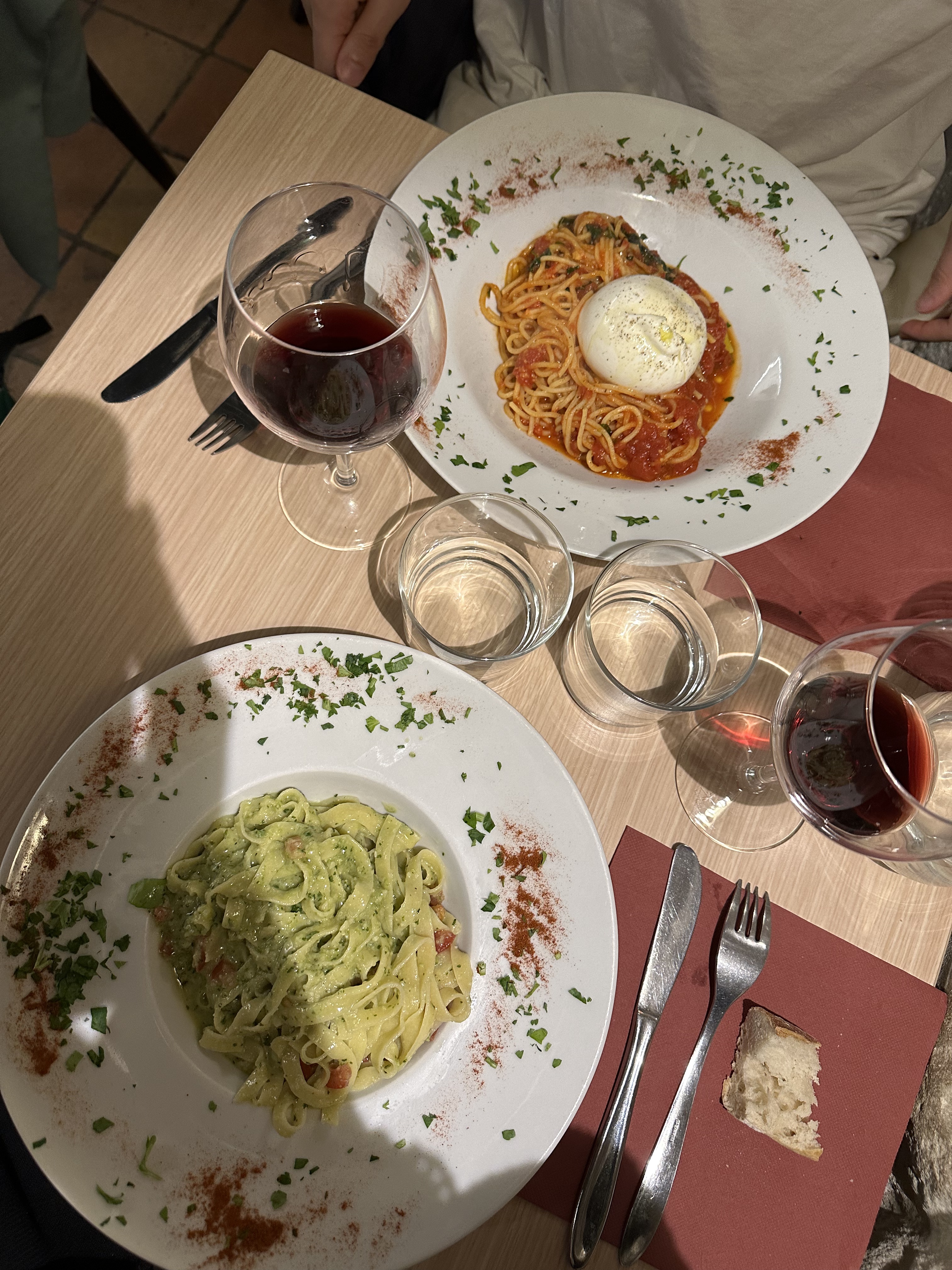 Tagliatelle al tartufo, tagliatelle al pesto trapenese, tortiglioni all'arrabbiata et pâtes farcies au jambon de parme et crème de parmesan... Tout était excellent !!! Seul petit bémol, le jeune serveur semblait peu motivé et dépassé. Mais la quailté de nos pâtes a largement compensé !