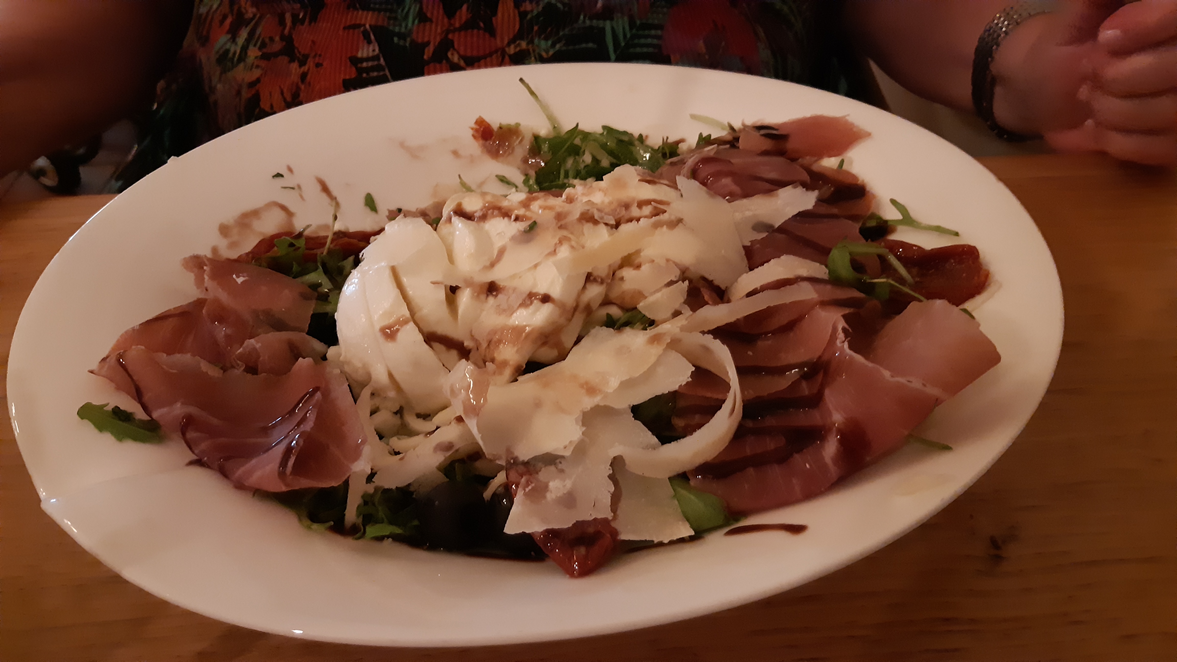 Savoureux (et grand) plateau de viande et de fromage. Les pâtes carbonara étaient un peu aqueuses