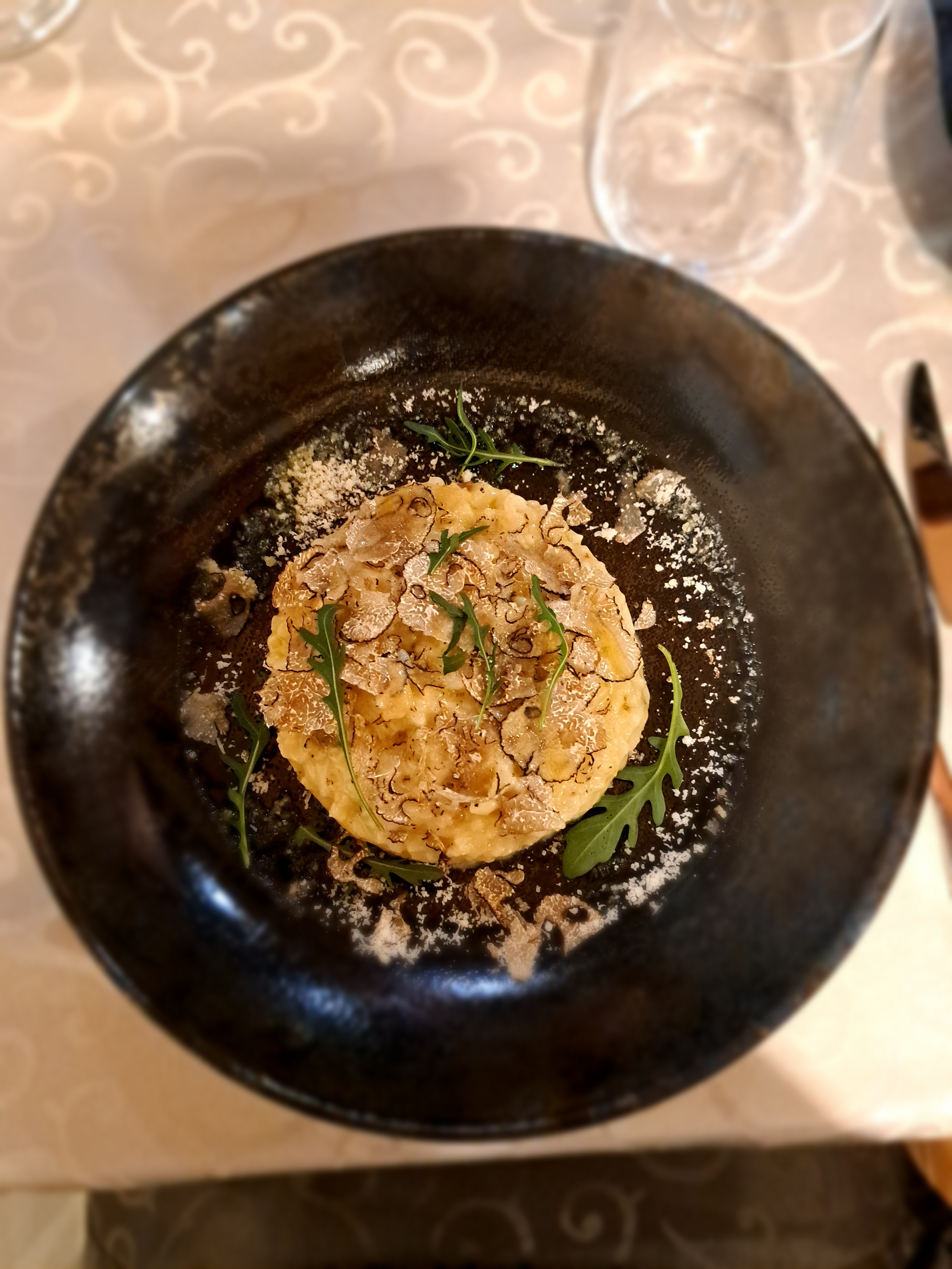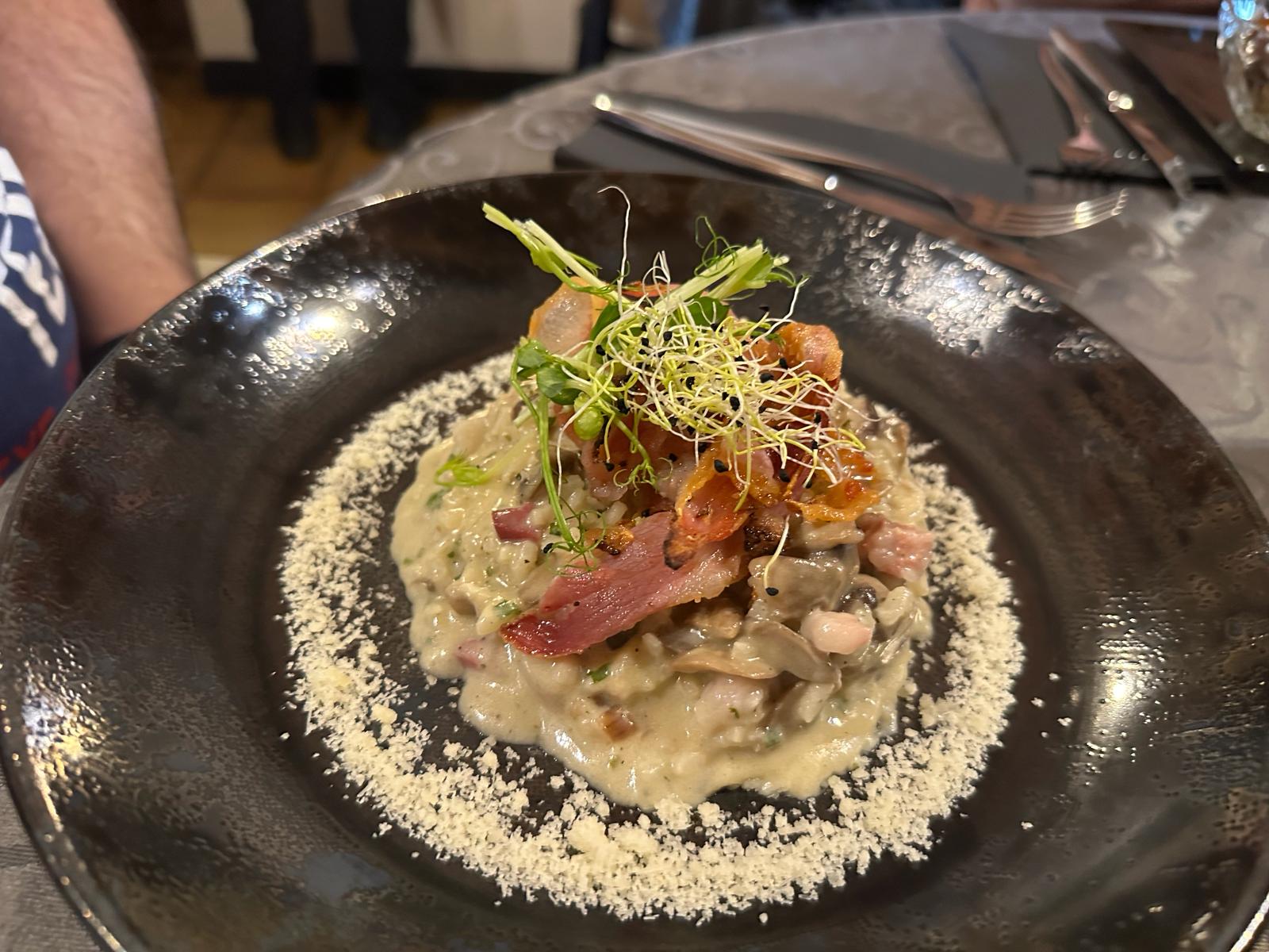 Belle découverte. J avais réservé pour 5 personnes. Pour des amis venus d Espagne. Tout le monde s est régalé. Très bien accueilli, des plats excellents me rappelant mon papa italien de Bergamo . Les pasta al dente dans la meule de parmesan avec la truffe noire c est juste un délice ! Le risotto fondant plein de saveurs . Le bœuf Angus avec les carottes rôtis succulent. Seul petit bémol il serait un + d avoir des anti pasti avec l apéritif . Nous y retournons pour la St Valentin tellement on a aimé.