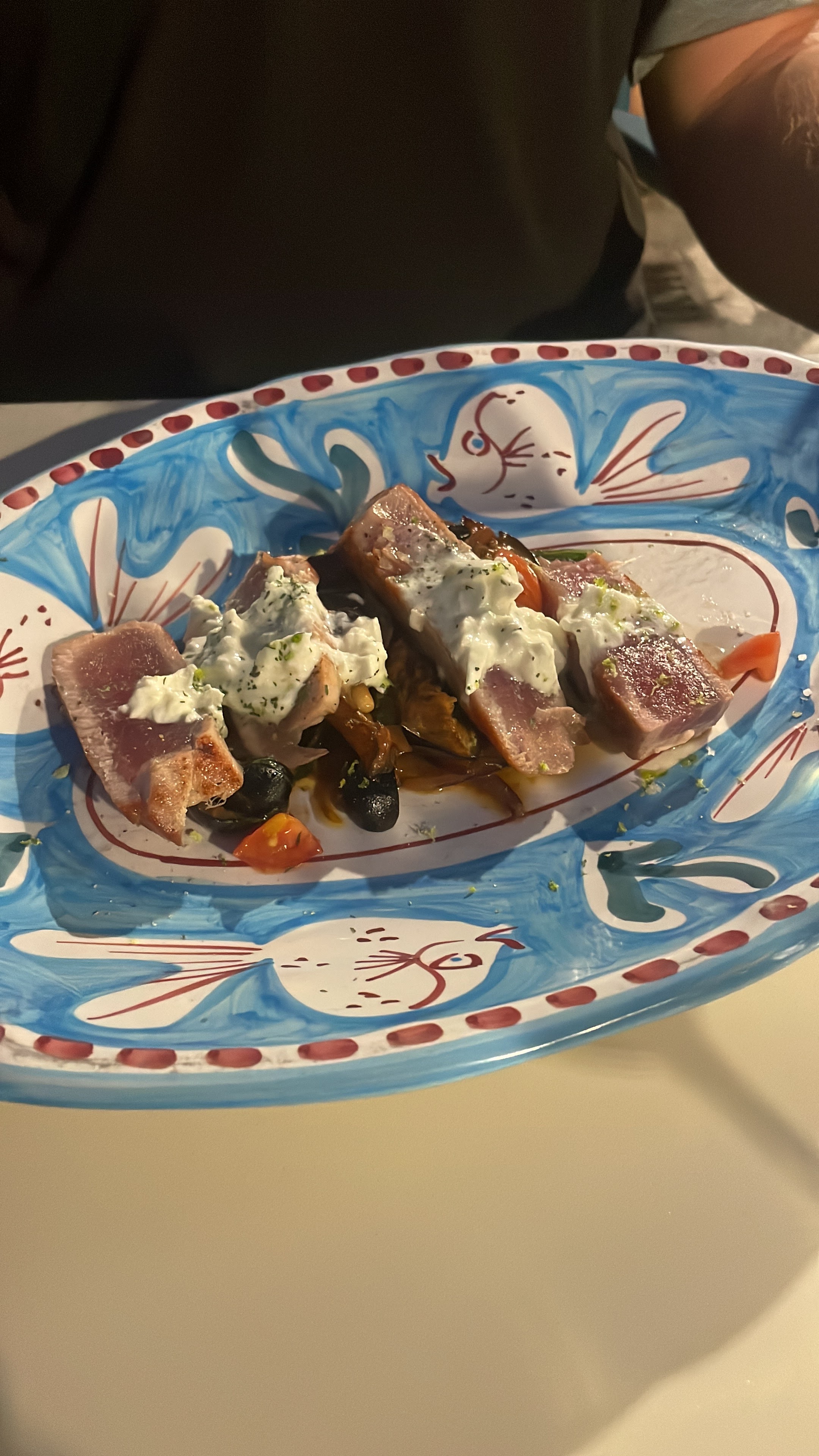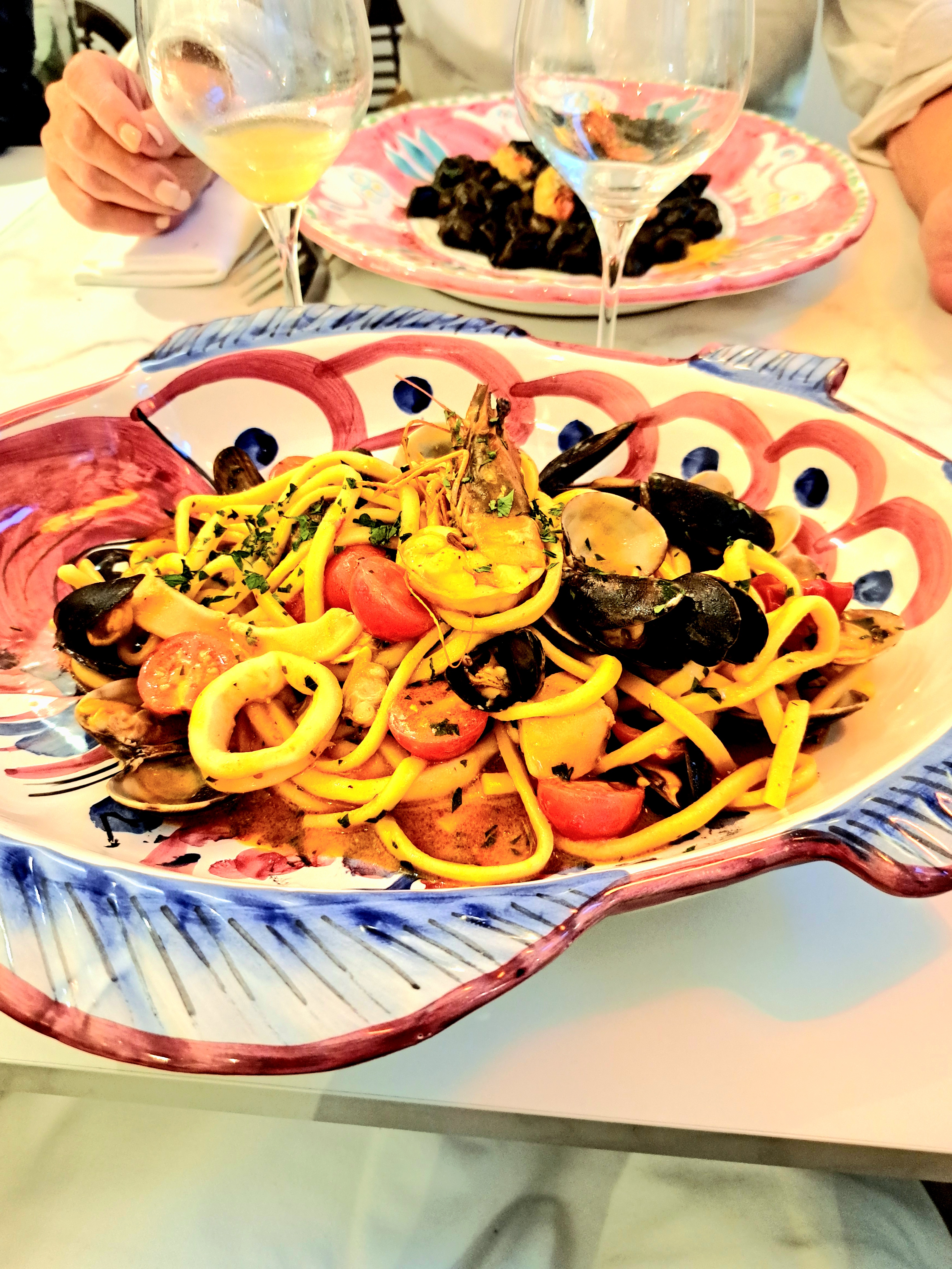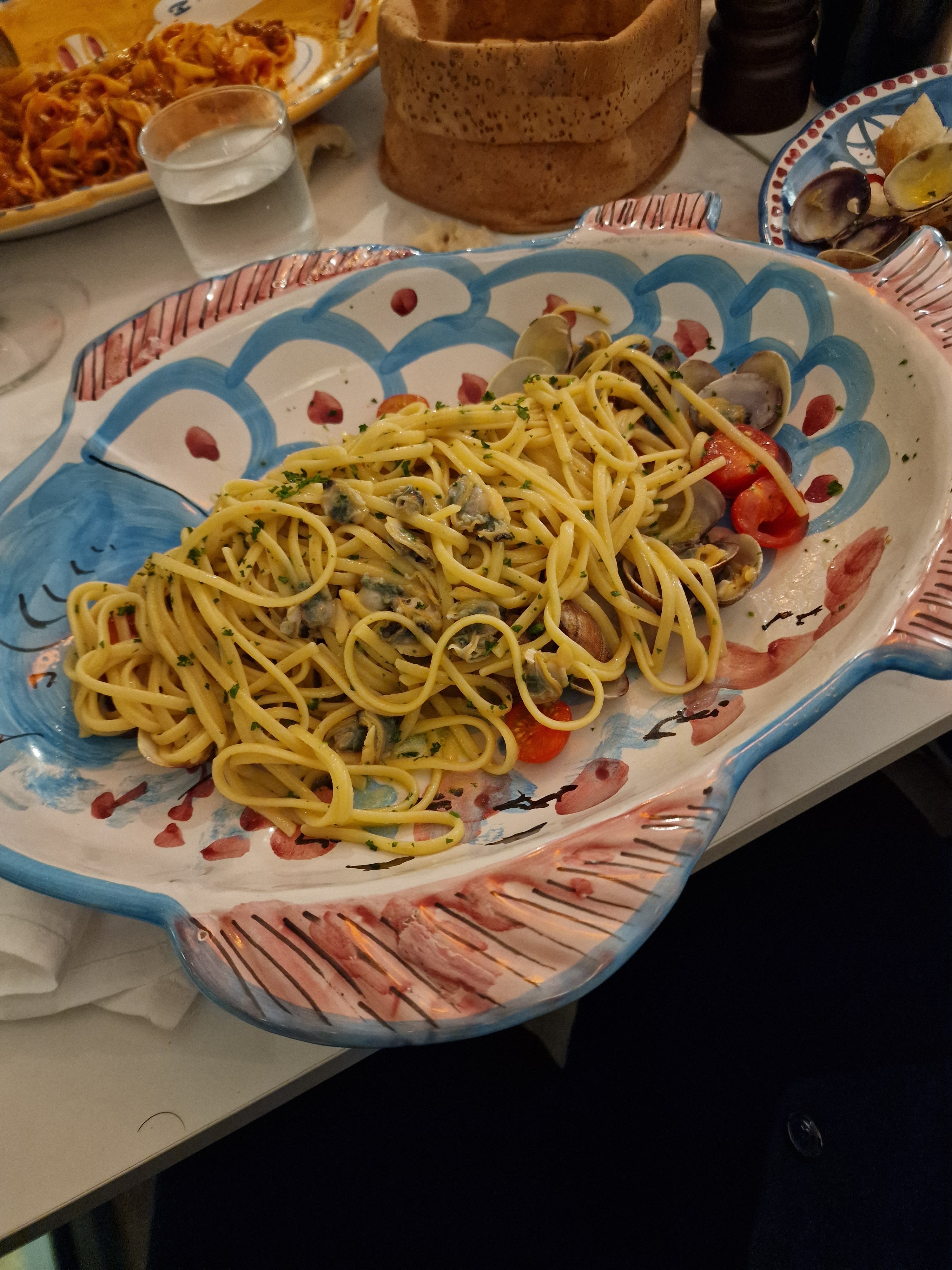 Repas servi dans des belles assiettes de vietri vides! On a pris le plat du jour. Quelques pâtes dans une grande assiette du coup refroidies vite.