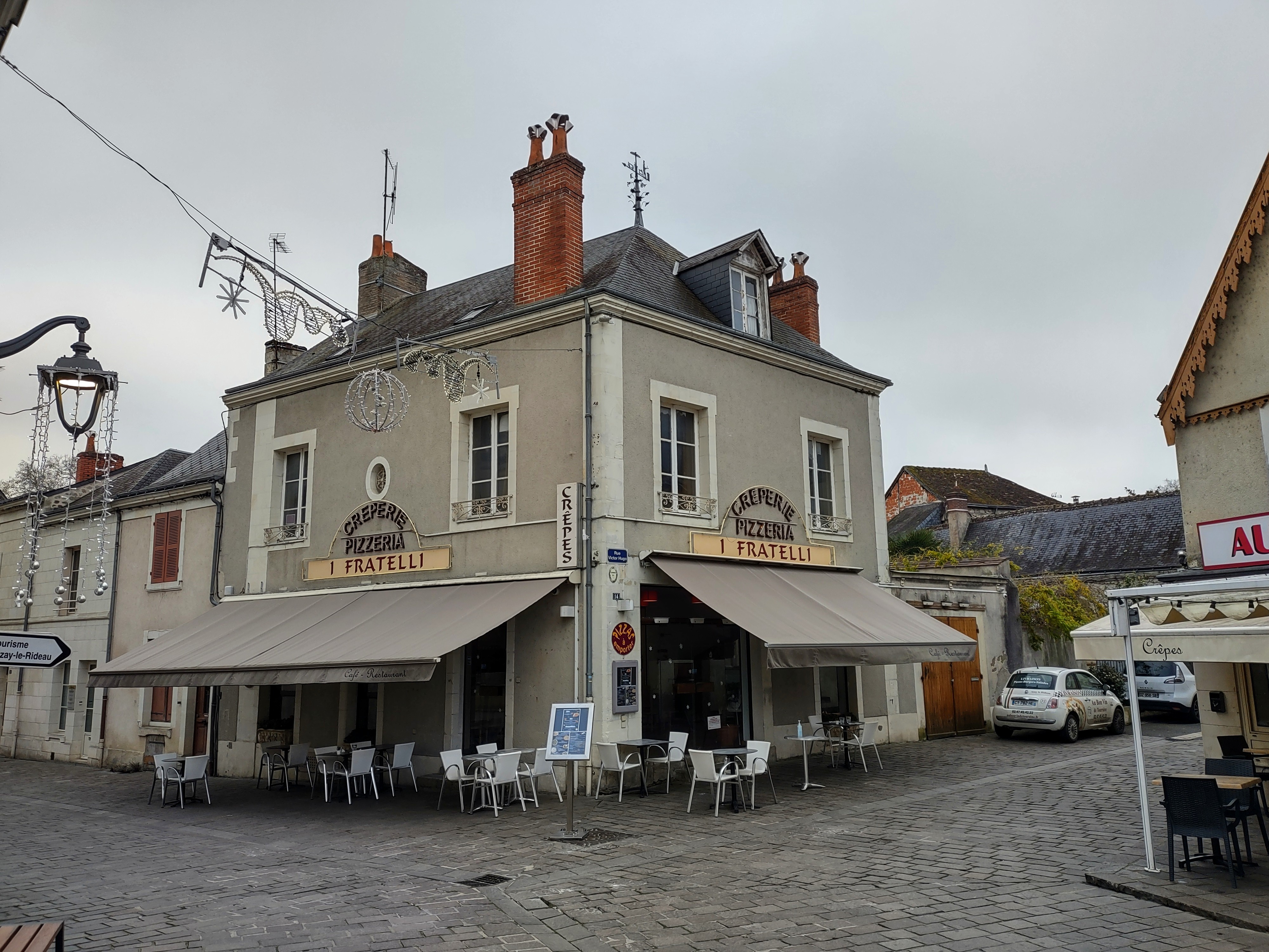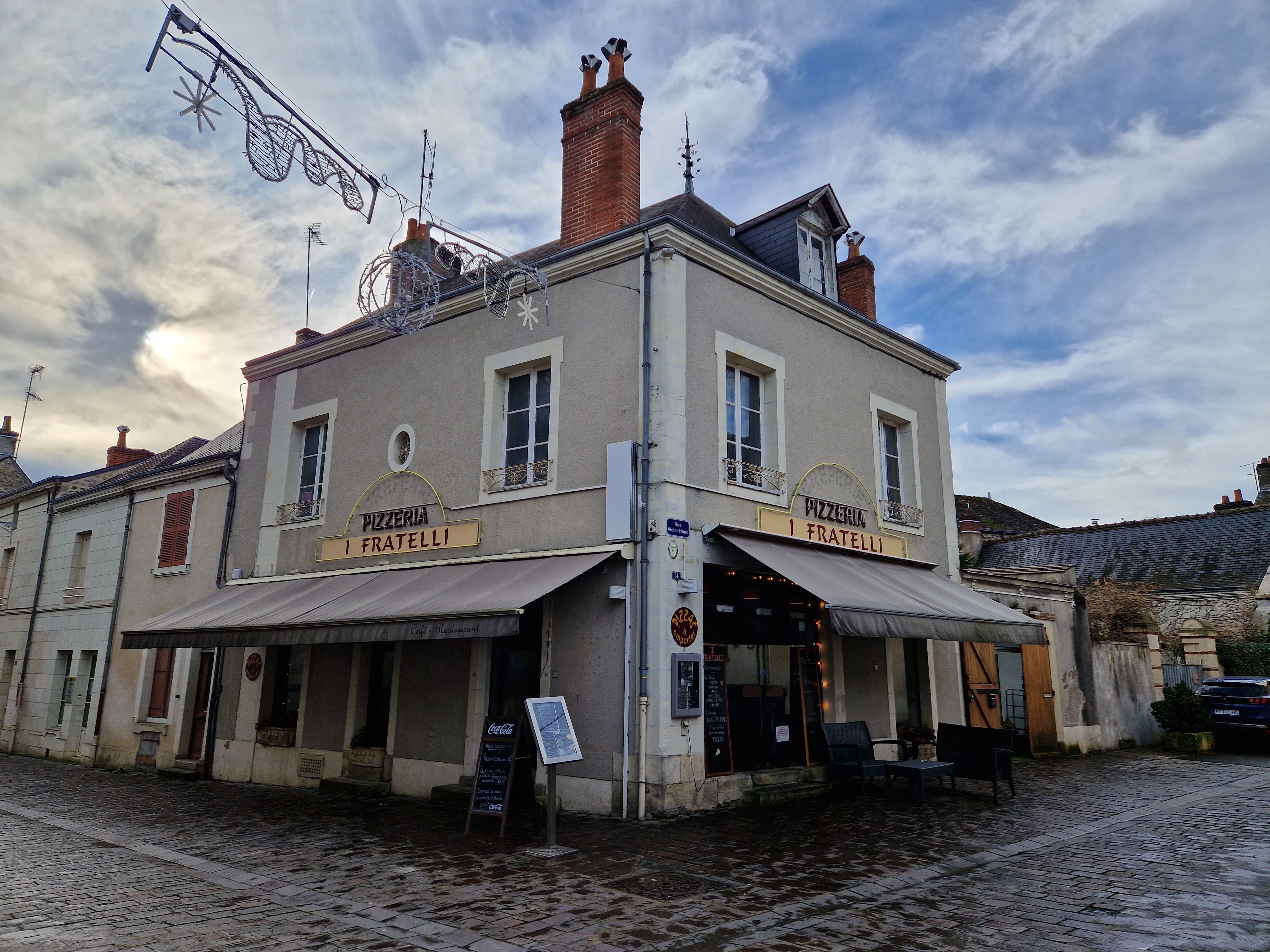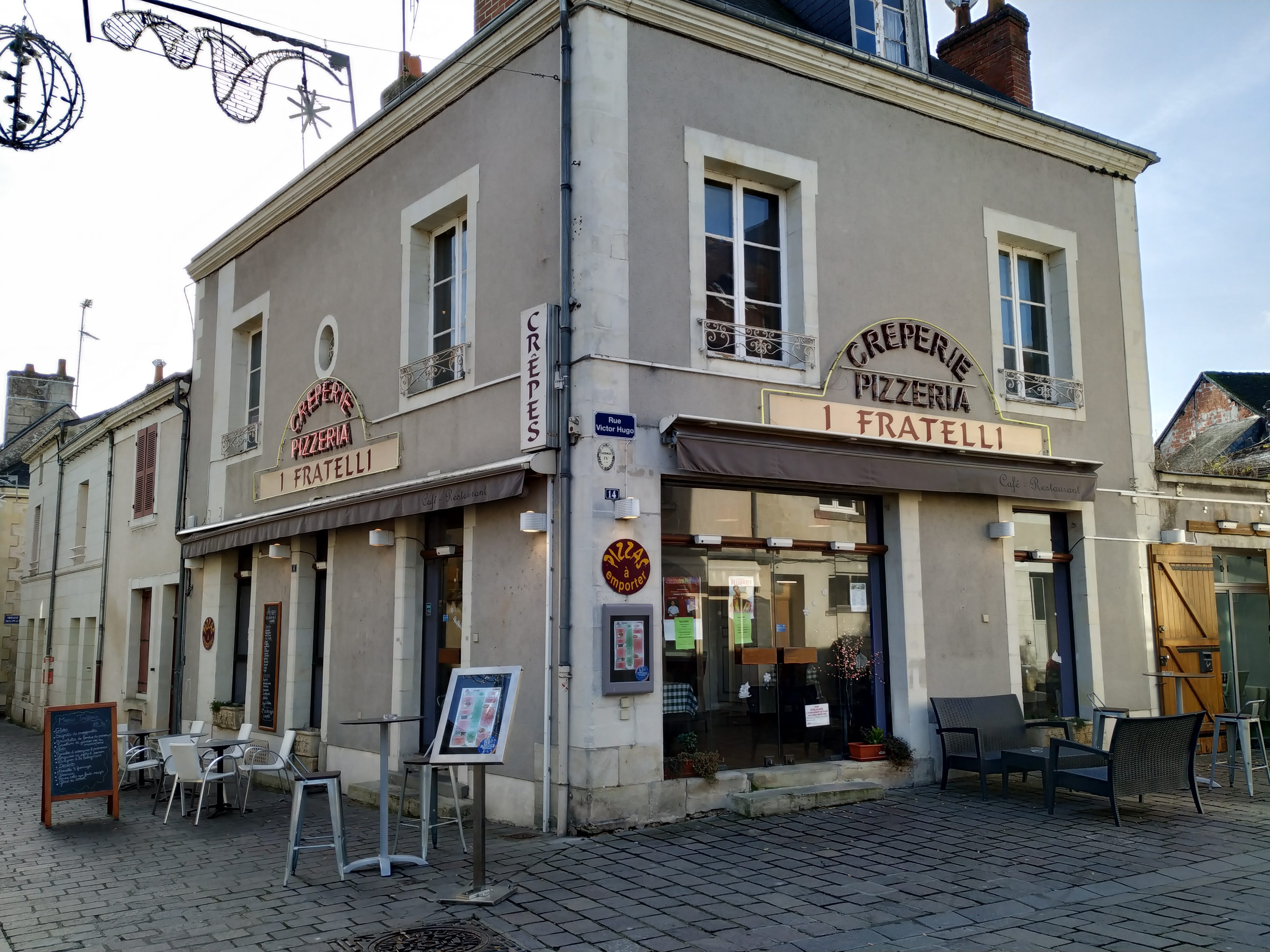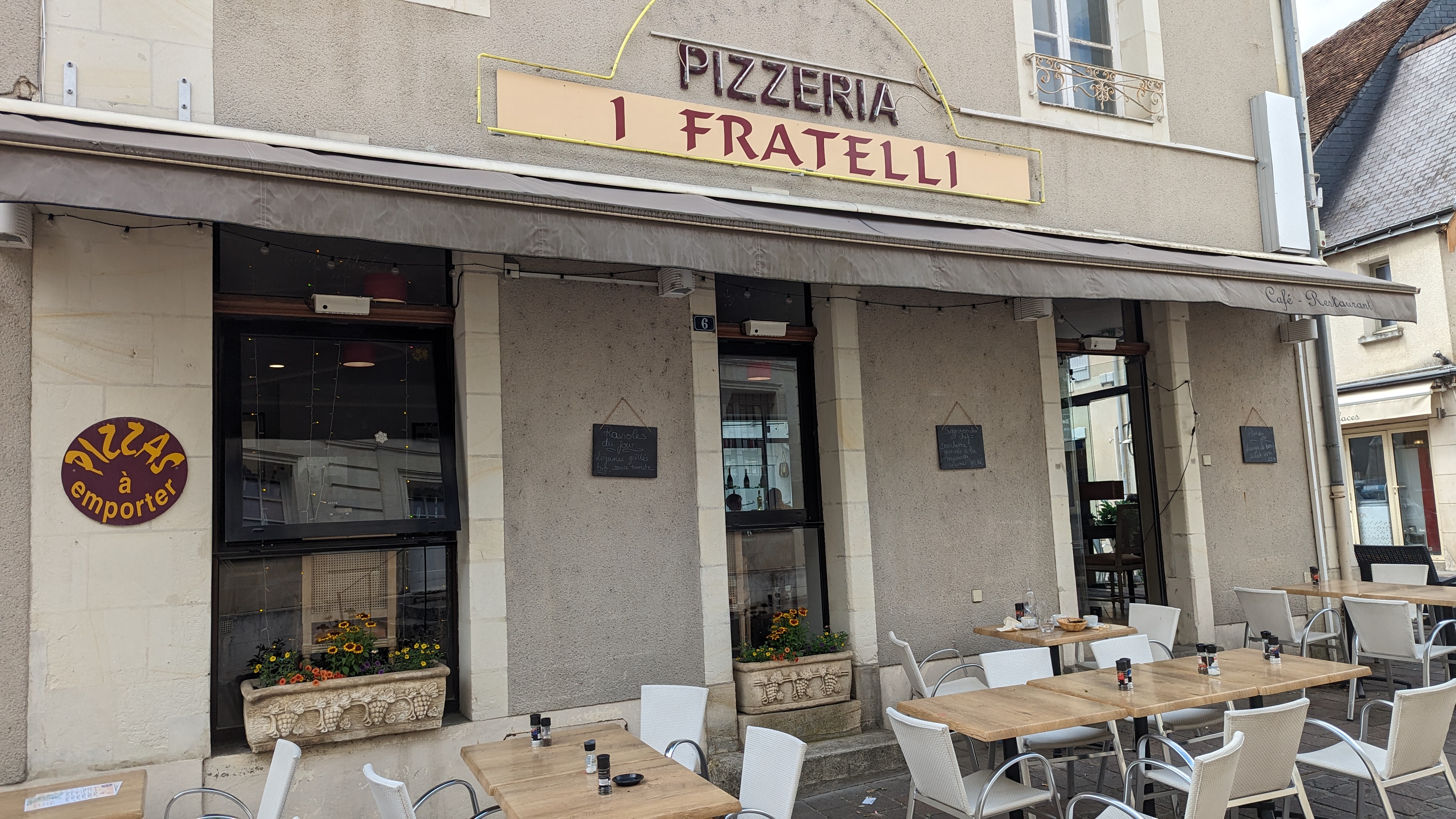 Samedi soir de décembre, 19h. La crêperie voisine était complète, nous errons donc dans les rues d'Azay à la recherche d'un restaurant avec des places disponibles. Il fait froid, nous avons faim: malgré tous les avis négatifs, nous décidons quand même de nous arrêter chez I Fratelli... Le restaurant est désert, nous sommes les premiers (une dizaine d'autres clients s'installeront plus tard). Pizzas pour mon épouse et mon fils, galette pour moi. Mais si les pizzas sont arrivées vite (et pourtant un peu cramées sur les bords), la galette a failli ne jamais arriver, la serveuse ayant tout simplement oublié de la noter... La décoration était agréable, la serveuse sympathique, mais cet oubli flagrant alors que nous étions seuls en salle laisse imaginer le pire lors du coup de feu, et doit expliquer une bonne partie des commentaires à 1 étoile. Vu la fréquentation possible sur ce spot touristique, il est clair que ce restaurant a besoin d'un coup de pouce façon cauchemar en cuisine pour devenir une référence d'Azay. Dommage.