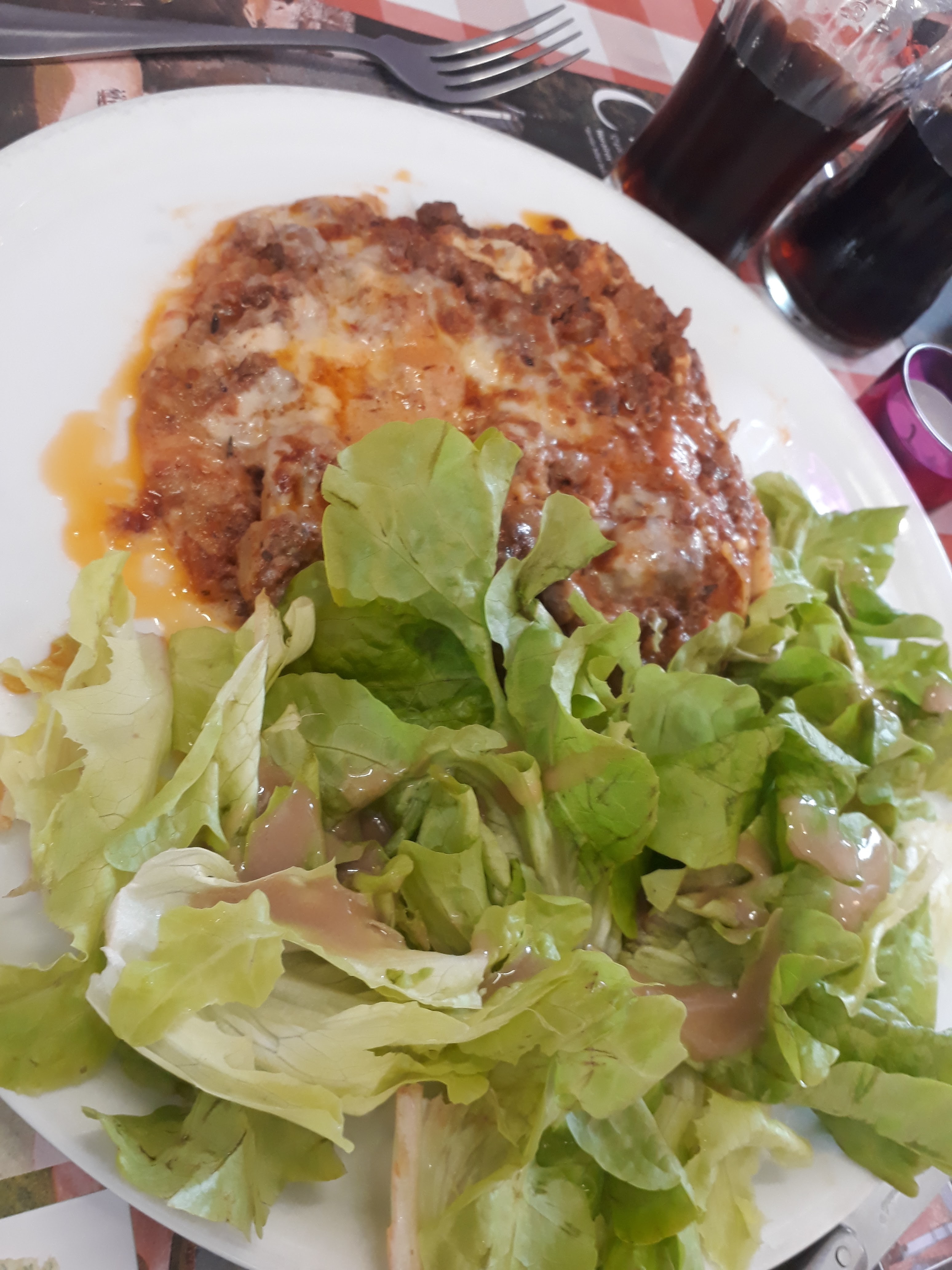 Salade en entrée + en plat + en dessert... pas tout à fait ce qu'on a commandé (enfin si mais avec de la salade dans la moitié du plat). Lasagne huileuse, en bouilli Pate huileuse et bien trop cuite Tiramisu enfin... que de la crème oui! Comme tous on a regardé les avis à l'apéritif .. avec un ricard à 4 euros 😯😯