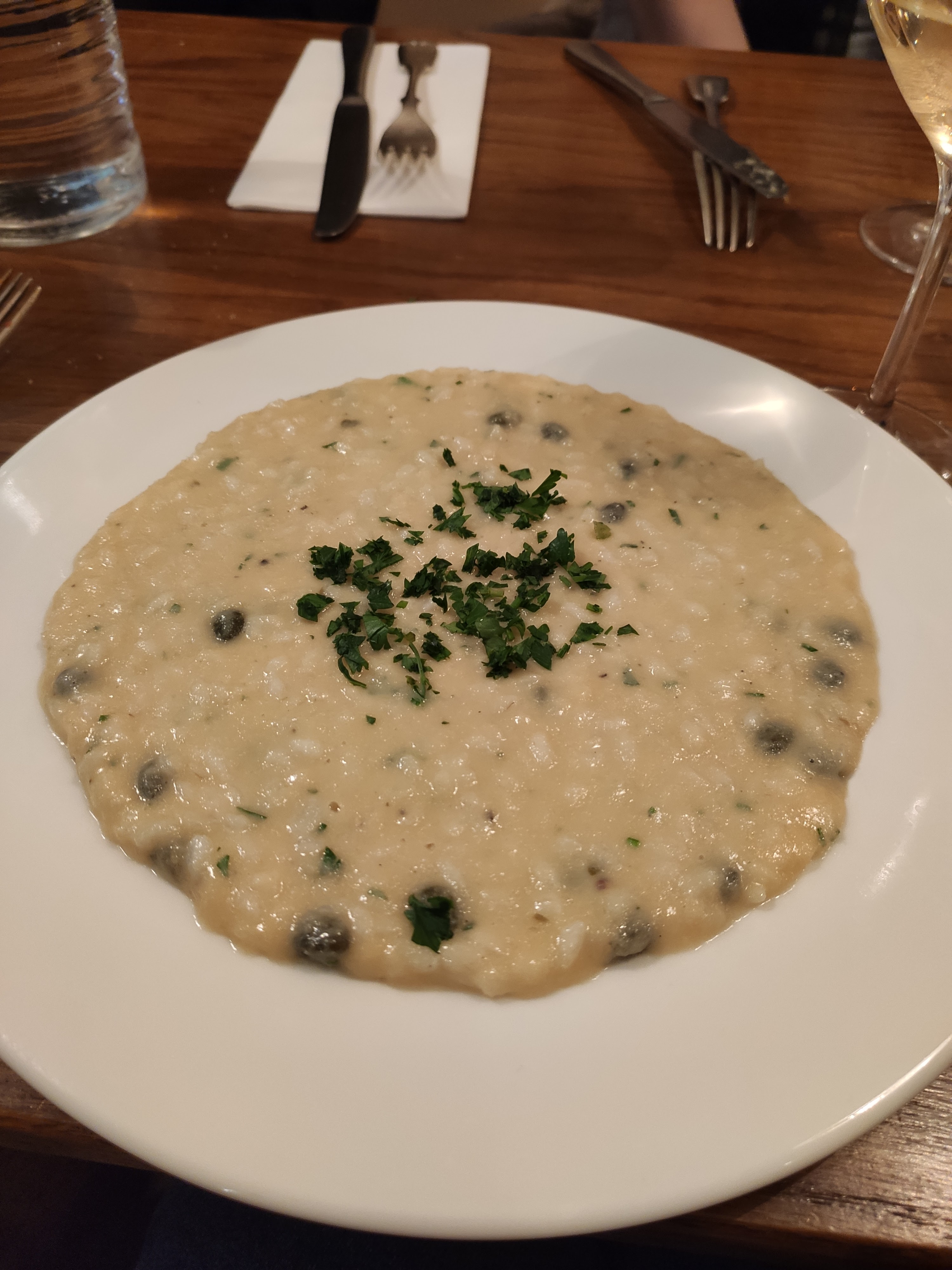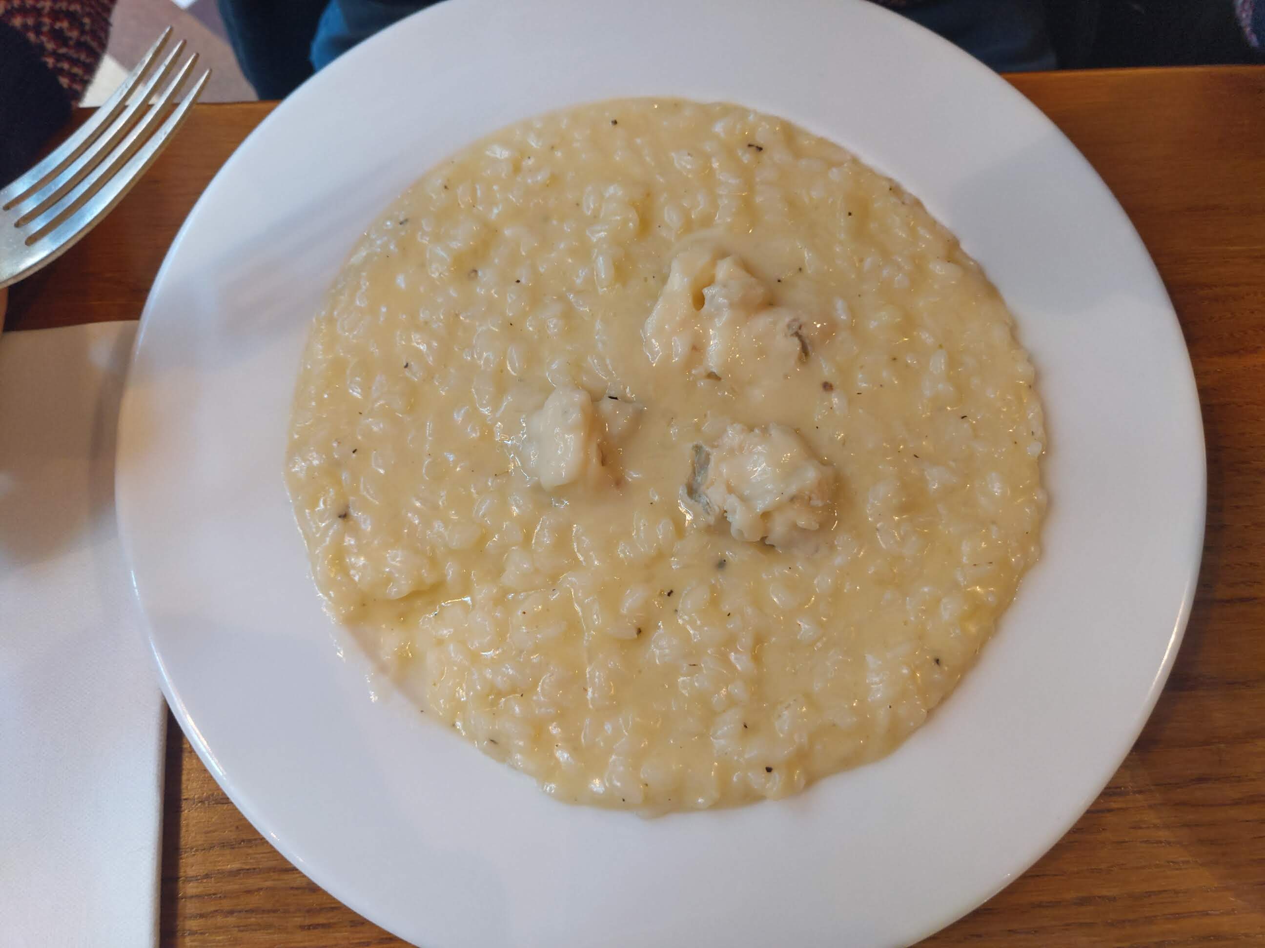 Un risotto excellent, comme j'en ai rarement mangé ! Pour un budget plat+dessert+vin+café de 27€, je ne peux que recommander ce petit restaurant à l'ambiance intime mais chaleureuse.