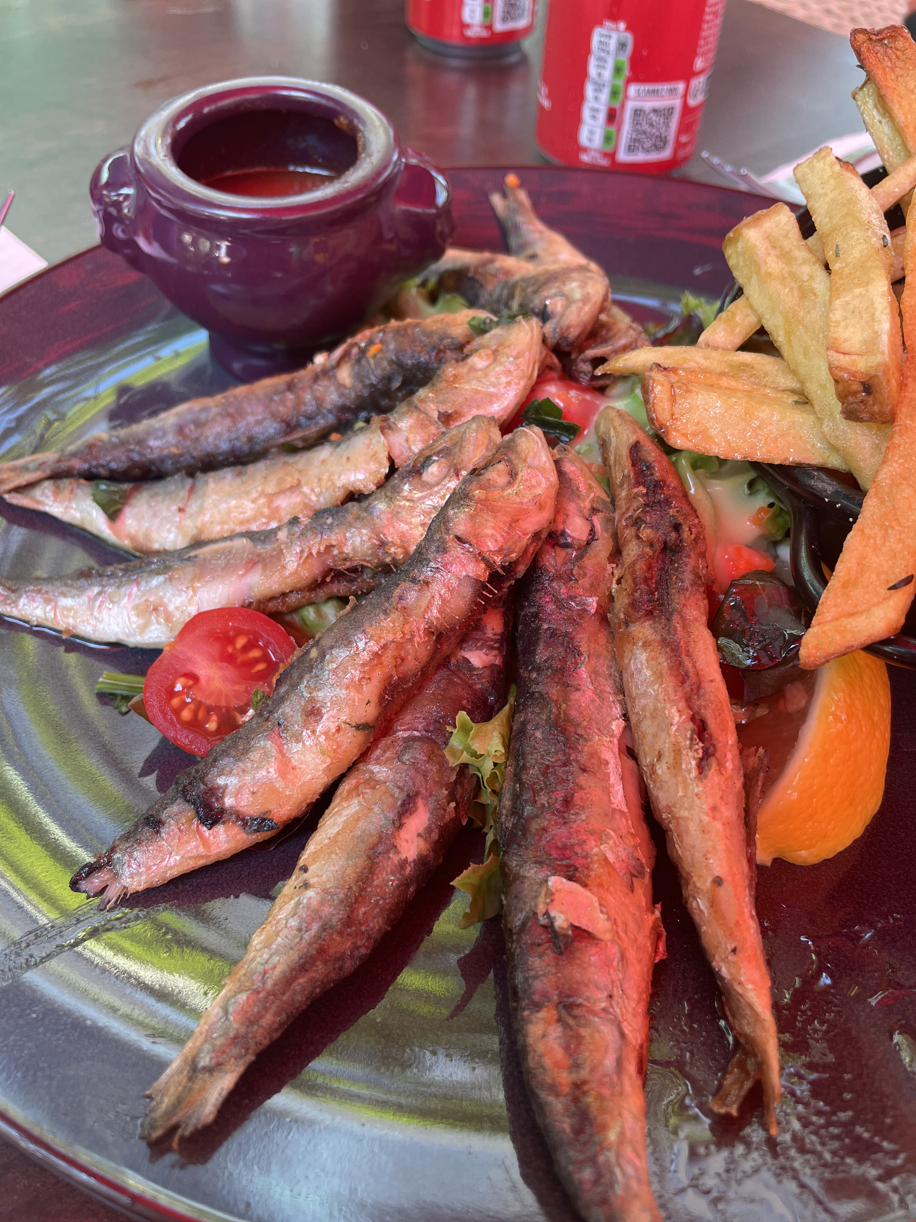 Acceuil parfait cadre sympa mais la nourriture et à revoir et surtout le mélange de friture je ne comprends pas le principe de faire frire une gambas avec sa carapace mais aussi celui de ne pas enlever les arêtes des gros poissons (les lever) avant de les frire