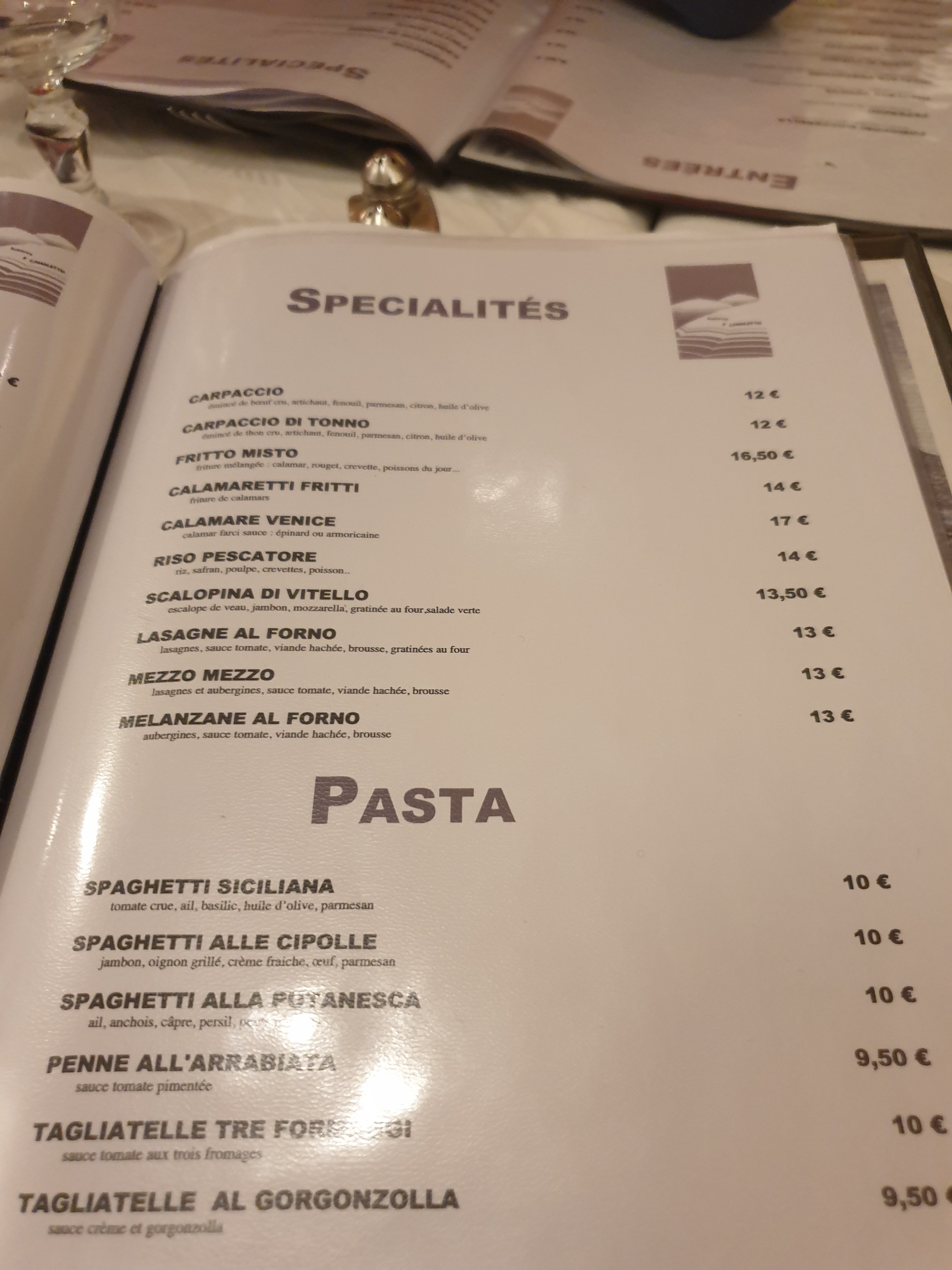 Déçu. Riz pescatore : beaucoup de riz et quelques morceaux de produits de la mer. Scaloppina Di Vitello baignait dans un jus très liquide . Service lent et pas commerçants . Attention à la facture en écarts avec les prix annoncés et pas à votre avantage !!!. La patronne a refait la facture avec encore des erreurs ! Et ne nous l'a pas laissé au cas où !!!