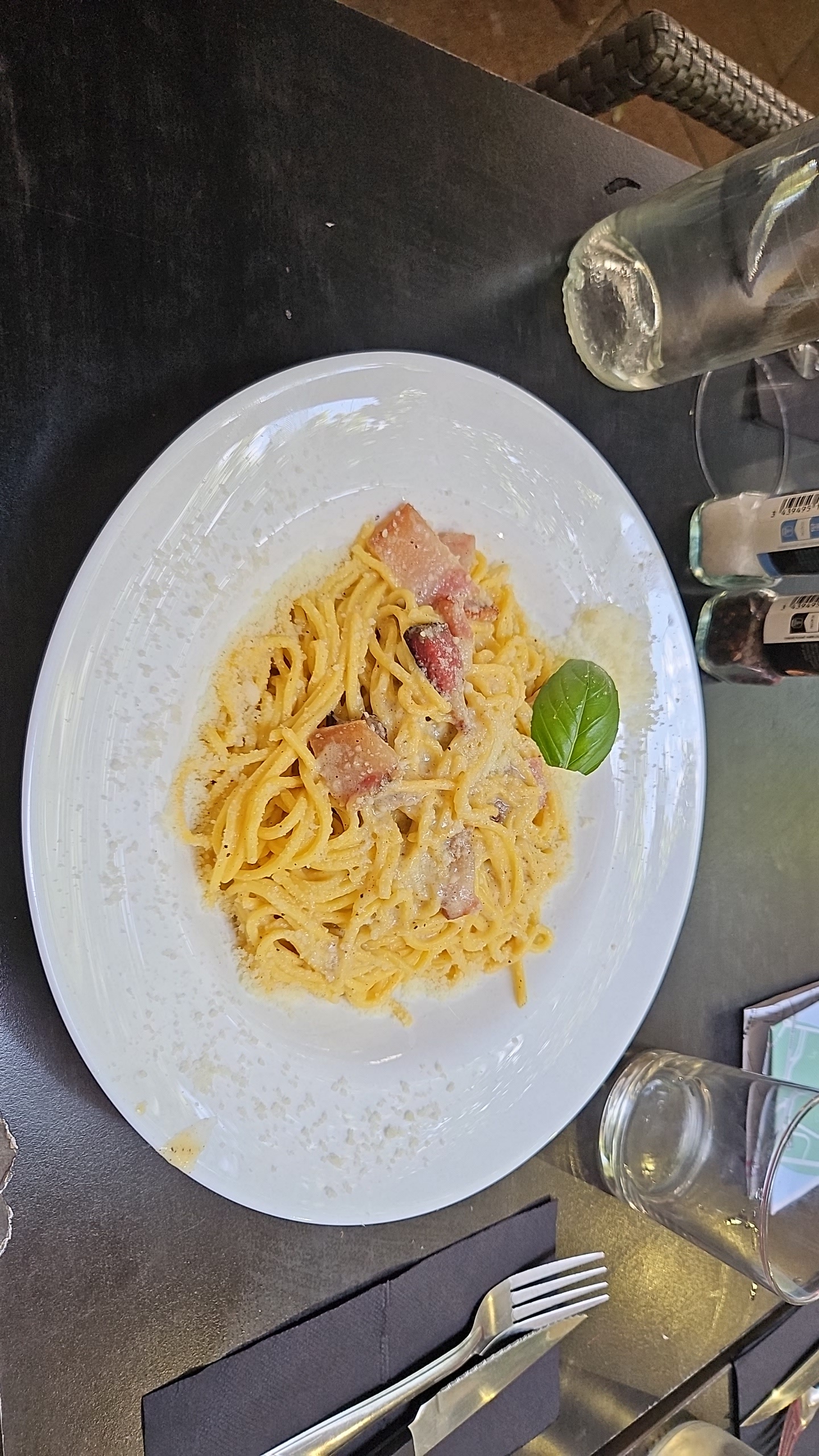 Restaurant très médiocre, faite demi-tour !! Lasagne brûlée … sûrement rererechauffée ! Renvoyée en cuisine mais pas mieux Et des pâtes carbo ou le pot de poivre a du tomber dedans … immangeable !