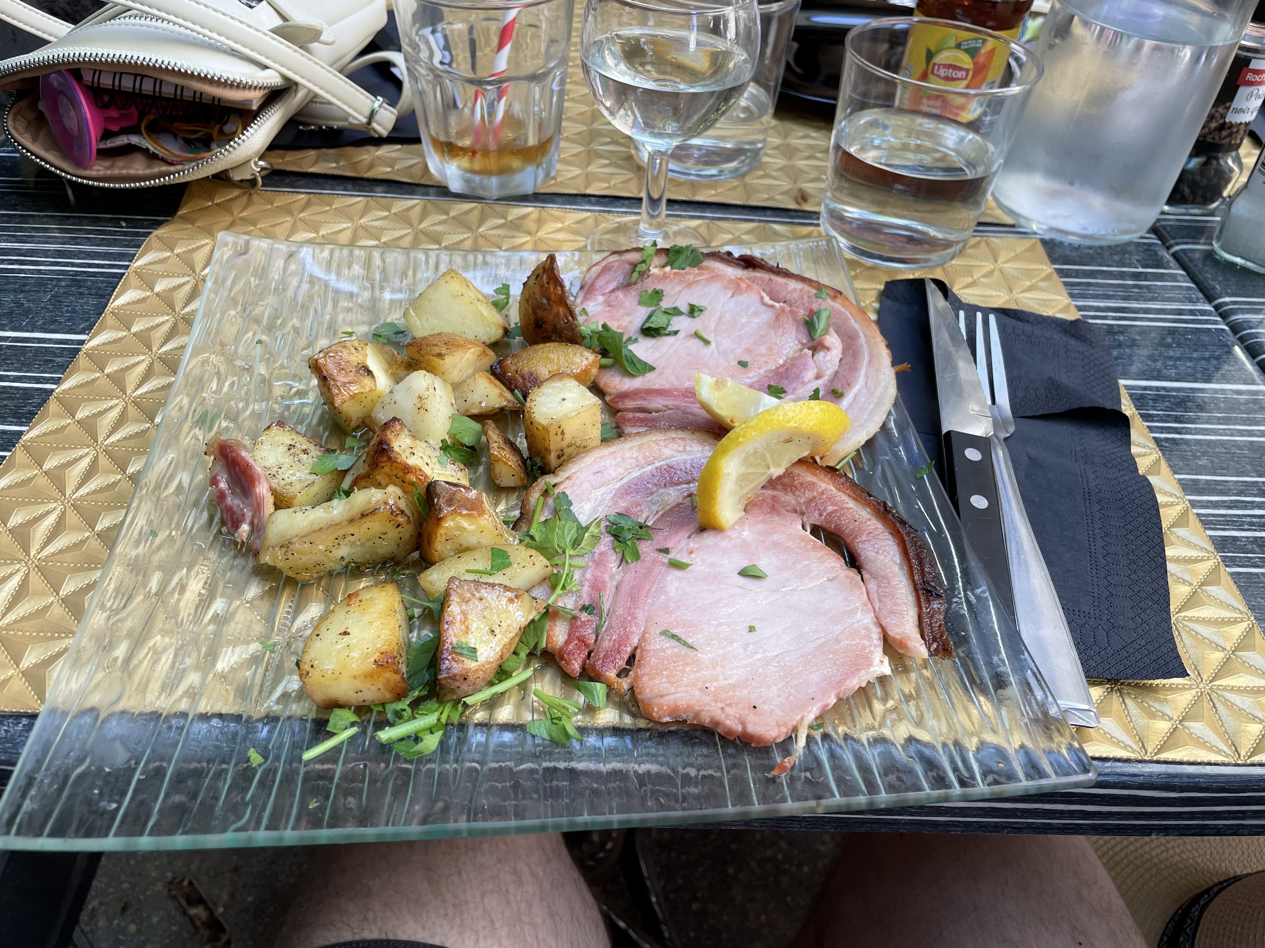 Pas d'eau, pas de pain, pas de sel ni de poivre. Pas beaucoup de nourriture savoureuse. Sur la facture la bouteille de 19,50 euros était facturée 28 euros. Pure arnaque et piège à touristes !
