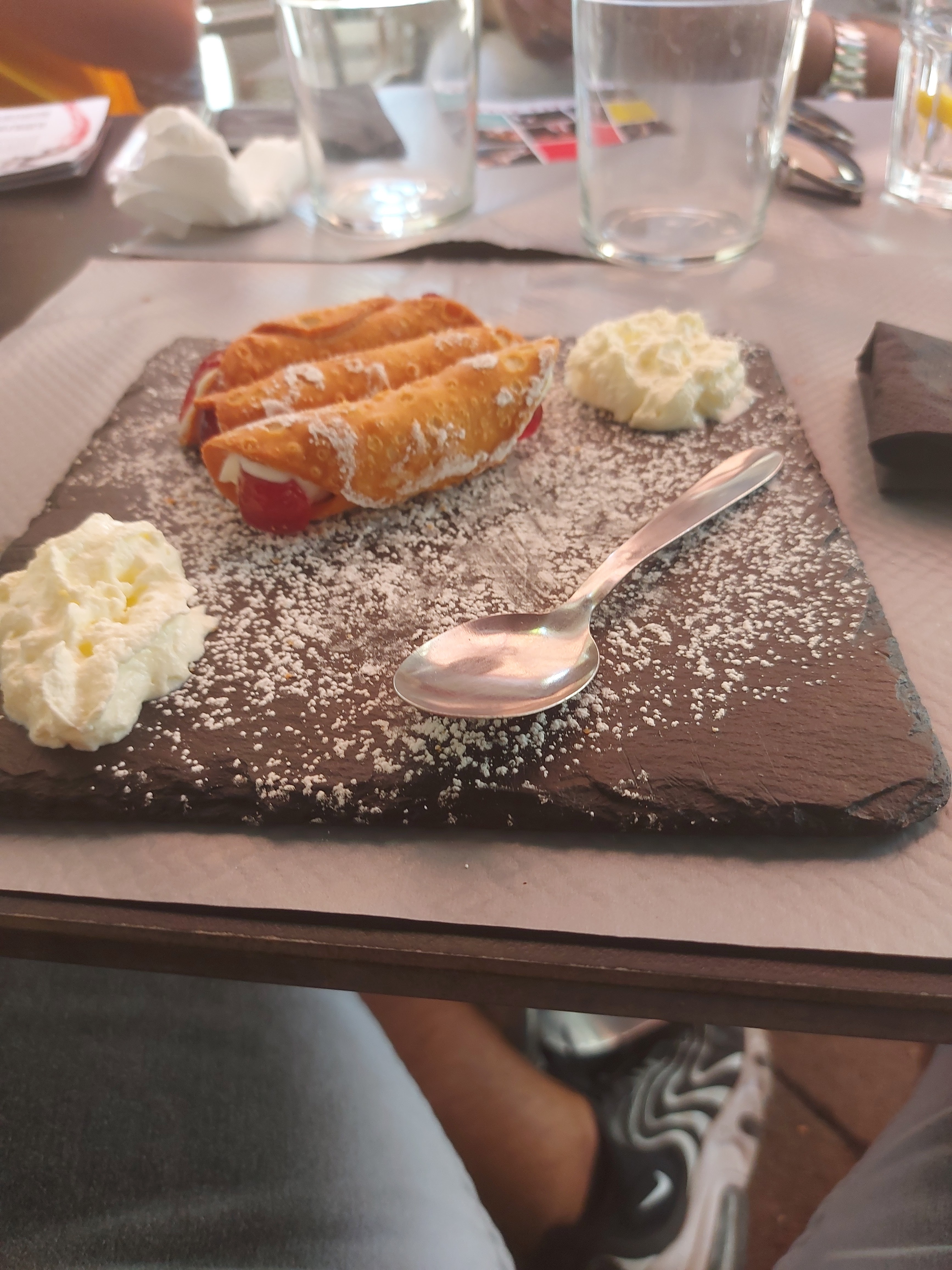 Serveuse sympathique, elle a fait le geste de nous parler dans notre langue et la remercie. Les plats de pâtes sont parfaits. En plein déjeuner en terrasse, le soleil a commencé à nous frapper et nous leur avons demandé d'ouvrir le parasol, comme ils le faisaient aux autres tables. Ils nous ont ouvertement ignorés. C'est pourquoi seulement les deux étoiles. Nous donnons 5 à la fille.
