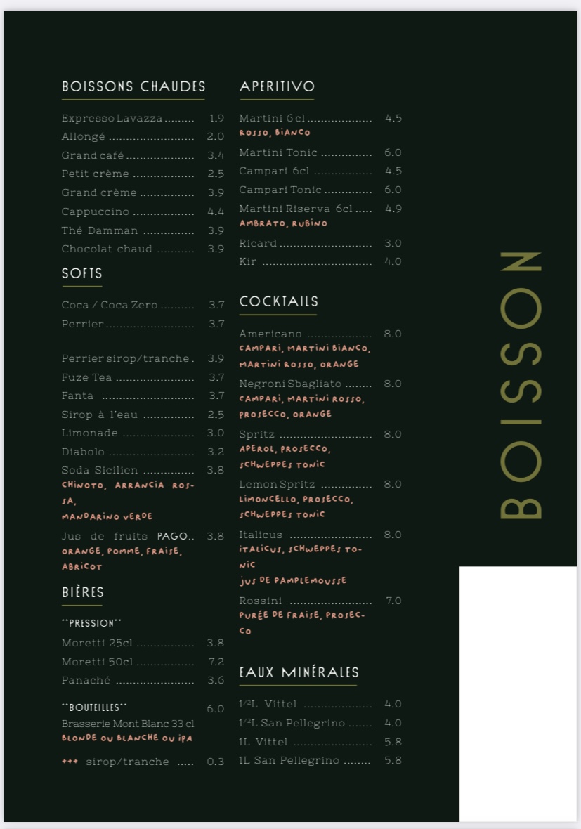 Agréablement surprise, je pensais allé dans un petit restaurant italien mais les plats étaient vraiment excellent et assez originaux. Très bonne expérience, je recommande !