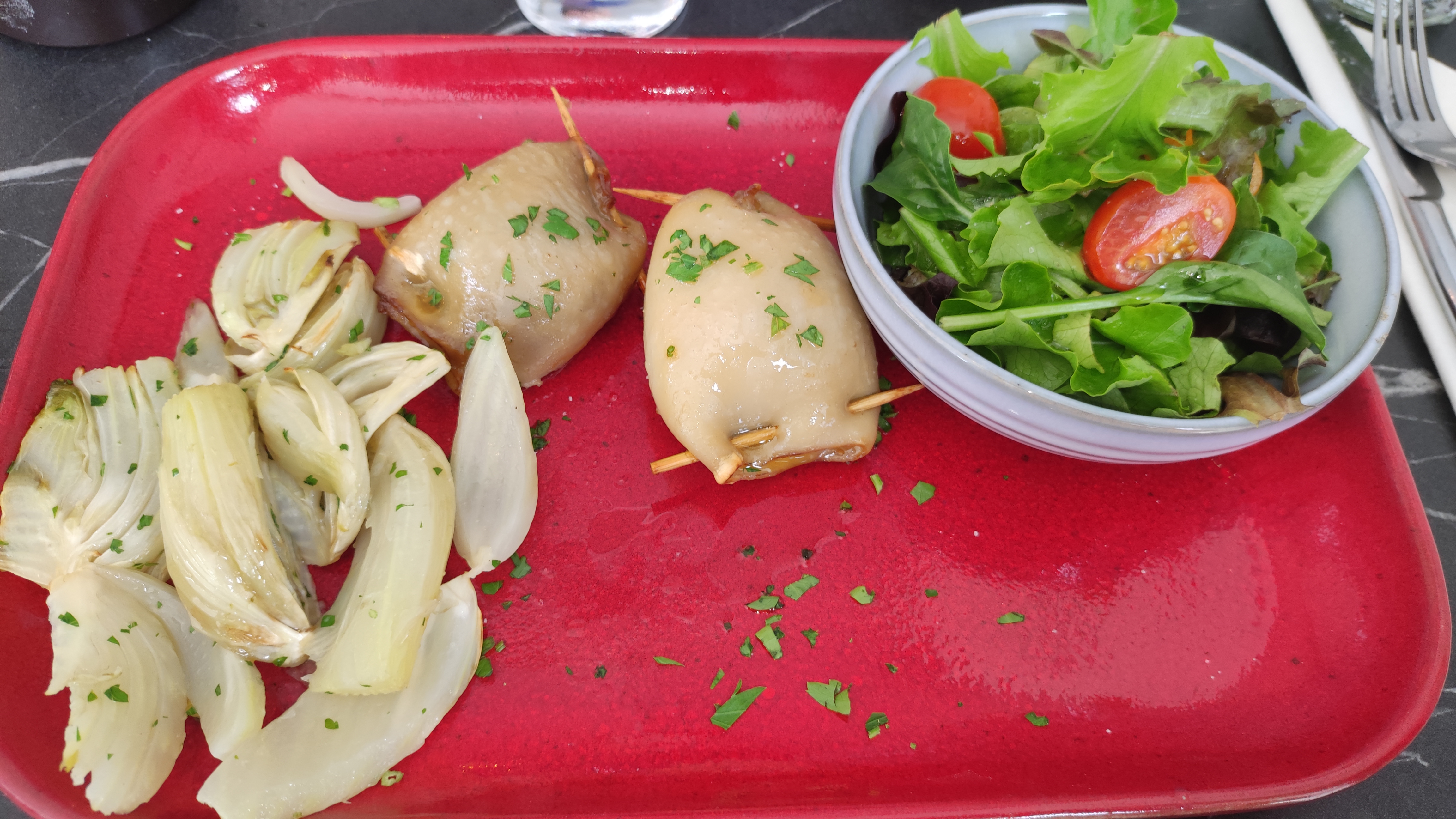 Repas de groupe pour 20 personnes . Un rate à la réservation qui n’avait pas été noté. Menu à 25€. Très bonne charcuterie et excellent dessert pour les plats la majorité des convives ont été très déçus . Encornets insipides. Quand aux pièces de bœuf demandées saignantes elles sont arrivées beaucoup trop cuites donc retour en cuisine. Au retour les légumes accompagnant la pièce de bœuf avaient disparu remplacés par 2 tranches de tomates crues et de la salade verte …. Sans commentaire Quand aux cafés inclus dans le menu non servis à 15 h quand je suis partie car je ne pouvais pas attendre