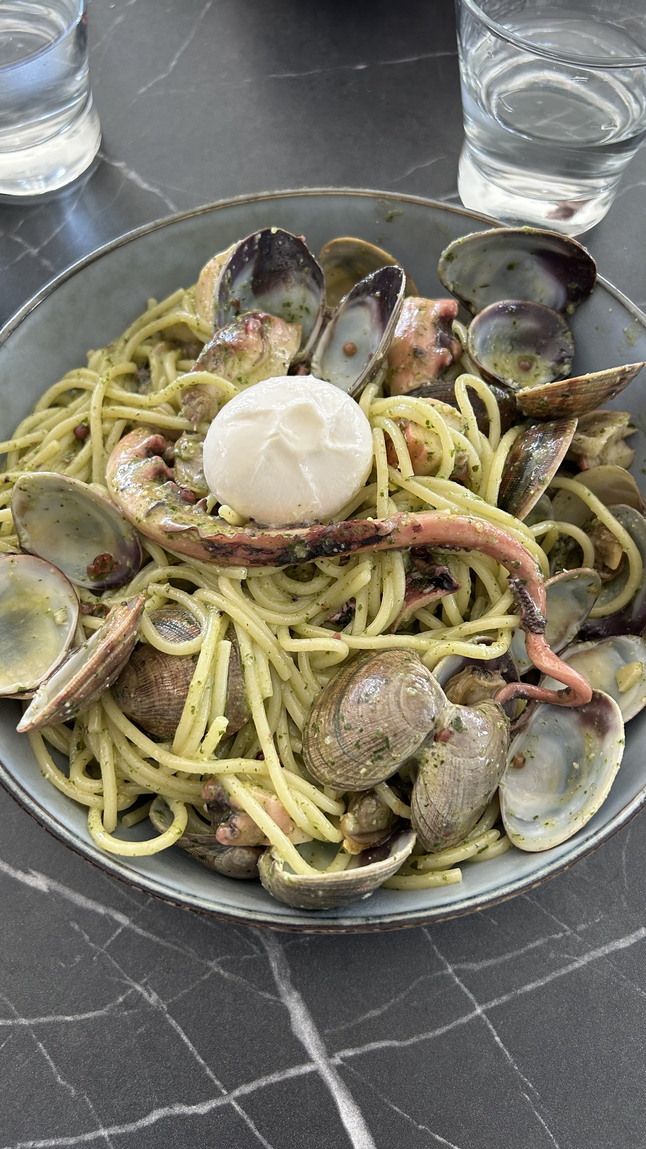 Très bon restaurant. Produits de qualité. Et très copieux. Un bonne ambiance sympathique. Les serveurs et serveuses sont au Top. La climatisation est un peu forte du coup nous avons eu le limoncello offert.