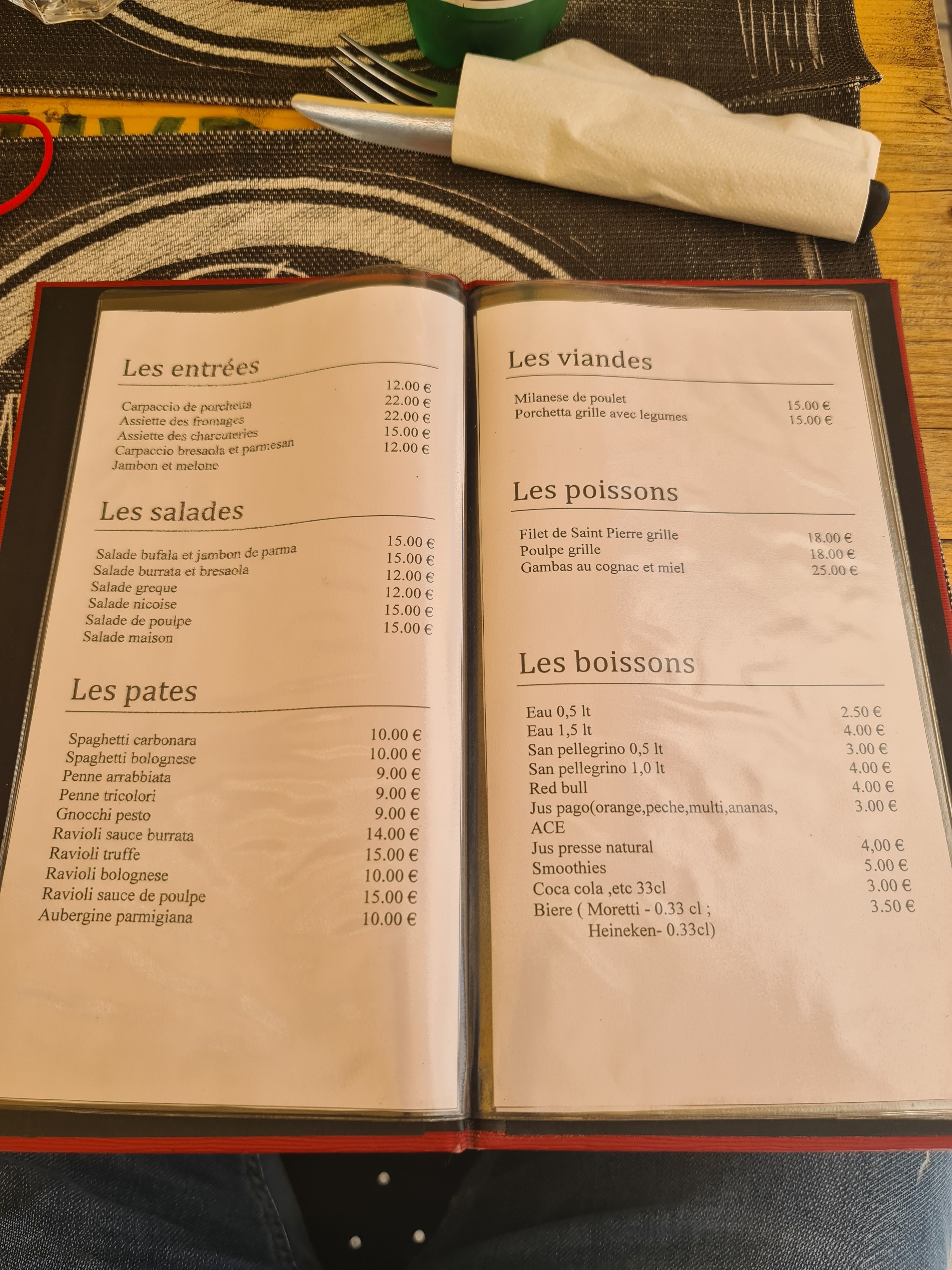 Repas délicieux, nous avons mangé des raviolis aux poulpes excellente. Le gérant est très sympathique, très accueillant.rapport qualité prix au top.merci pour ce moment très convivial. Nous reviendrons à notre retour à monaco