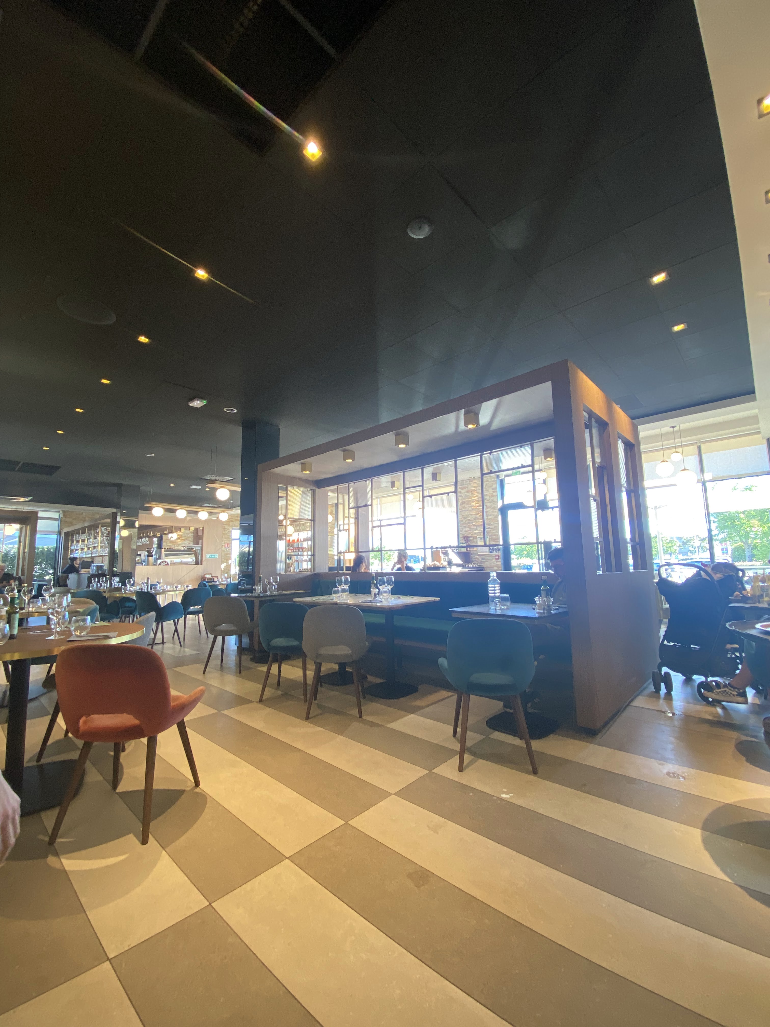 Décor intérieur : magnifique du sol au plafond Confort sièges : avec petit ou gros rembourage d'assise Décor extérieur : parking ou terrasse avec haie Plat : lasagne bolognaise recommandée et risotto aux Saint-Jacques (sans poireau pour moi) très bon. Pain : très bon. Eau : petite carafe pour 2, eau à température ambiante Dessert : très copieux car beaucoup de chantilly. Chantilly excellente. Craquelin vraiment top mais trop gros à manger seul. Dame blanche un peu décevante car trop de chantilly par rapport à la glace et peu de chocolat par rapport à la quantité. Service : super agréable et très rapide Ambiance : bonne absorption du bruit. Beaucoup de monde et on s'entend très bien Parking : partagé avec tous les commerces et resto Prix : Un peu cher mais la qualité est top Les + : les serveurs sont top, les plats sont top, le choix est top Les - : pepsi plutôt que coca, la casserolette de lasagnes est sur un plat rectangle et quand on mange, cela bouge et fait du bruit