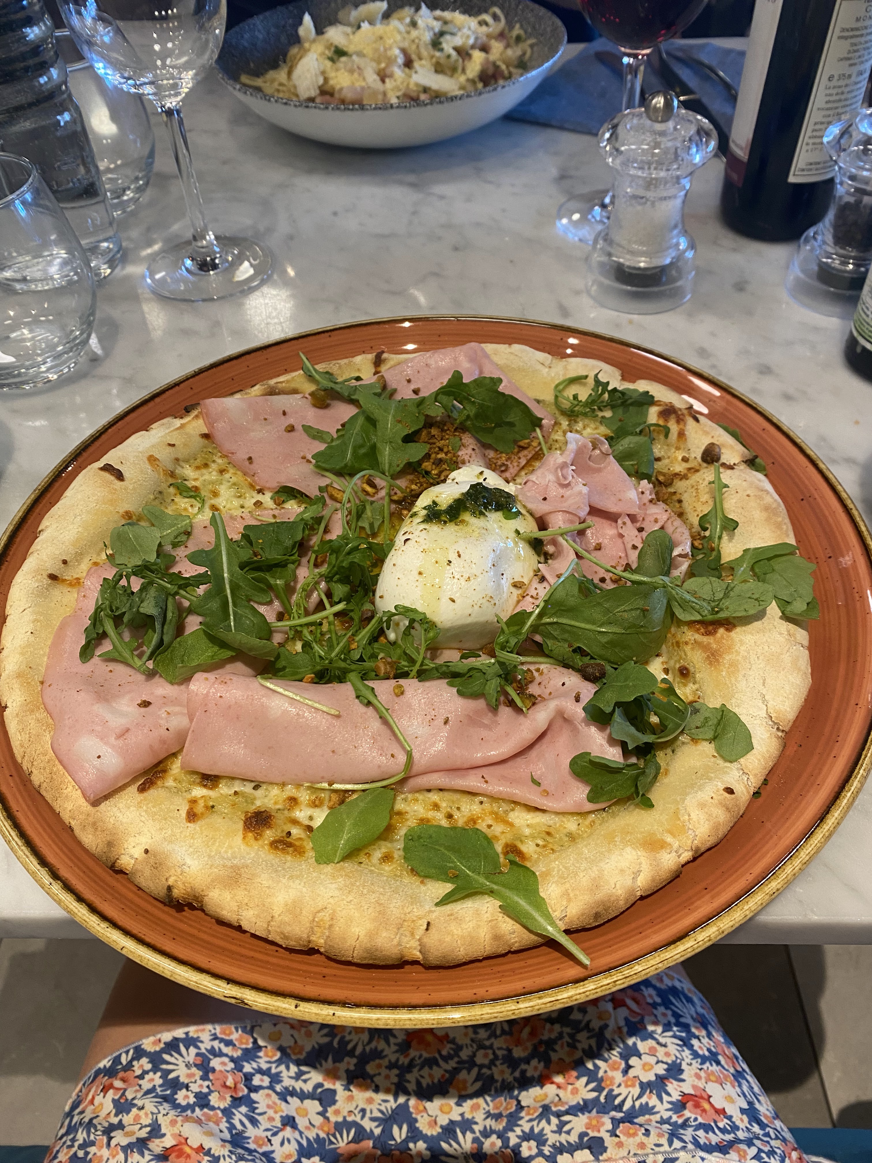 1ère fois dans ce restaurant italien hier soir. Le cadre est moderne et agréable. Le restaurant est vaste, il y a beaucoup de tables, mais on n'est pas les uns sur les autres, on peut parler sans s'entendre d'une table à l'autre. Nous avons commandé un antipasti partagé à 2, des pizzas et un steak tartare avec ses délicieuses patates, accompagnés d'un lambrusco bien frais. Les pizzas sont très bonnes, les produits sont frais et de qualité. En dessert, panacotta tartes au citron, et profiteroles. Nous avons passé une excellente soirée, très bien mangé, pour une addition correcte, 127€ à quatre.