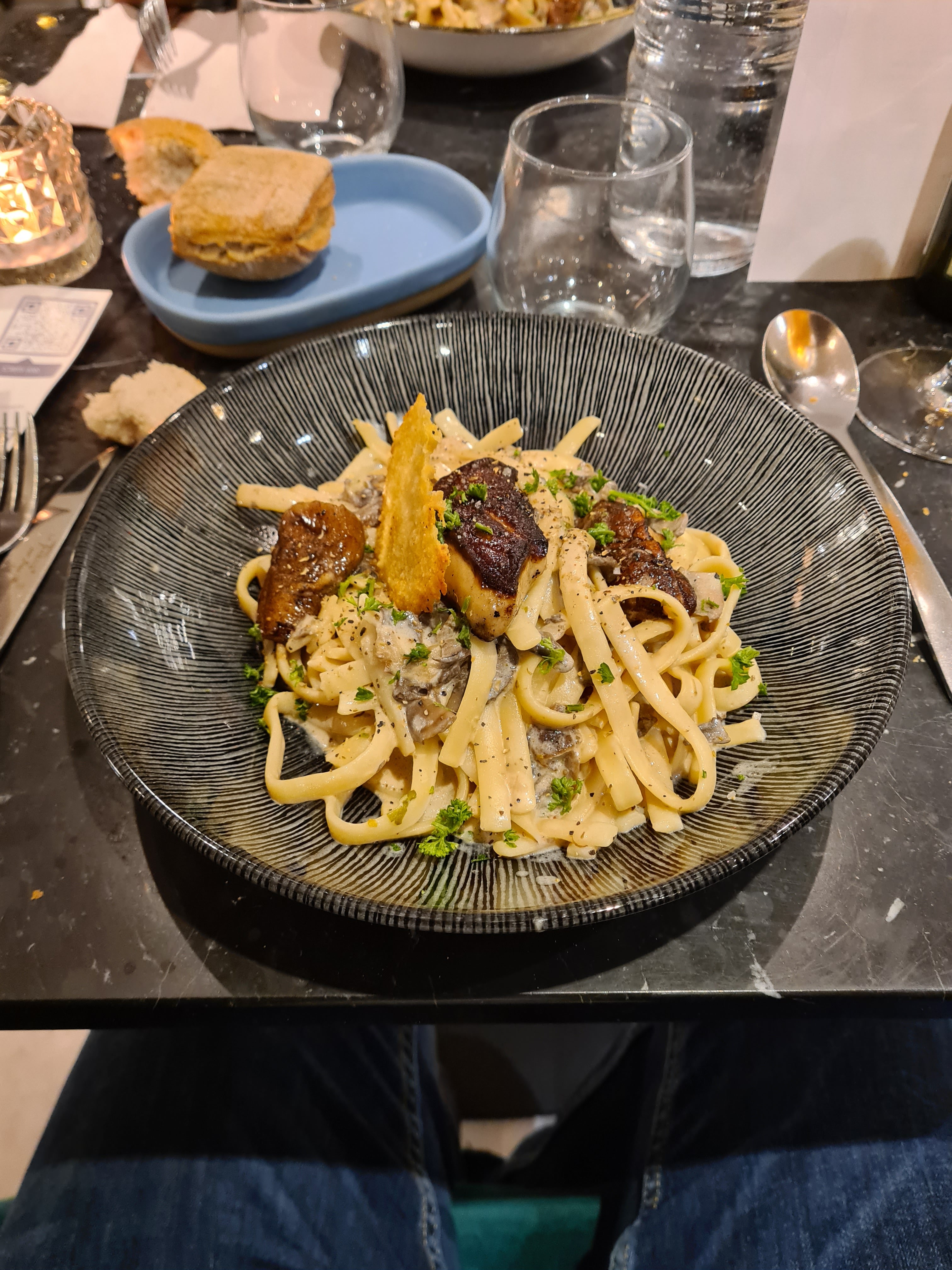 Je recommande vivement les tagliatelles aux champignons et foie gras : je me suis régalée ! Ambiance cosy et bon service. Très peu d'attente malgré le monde et le fait que nous n'avions pas réservé.