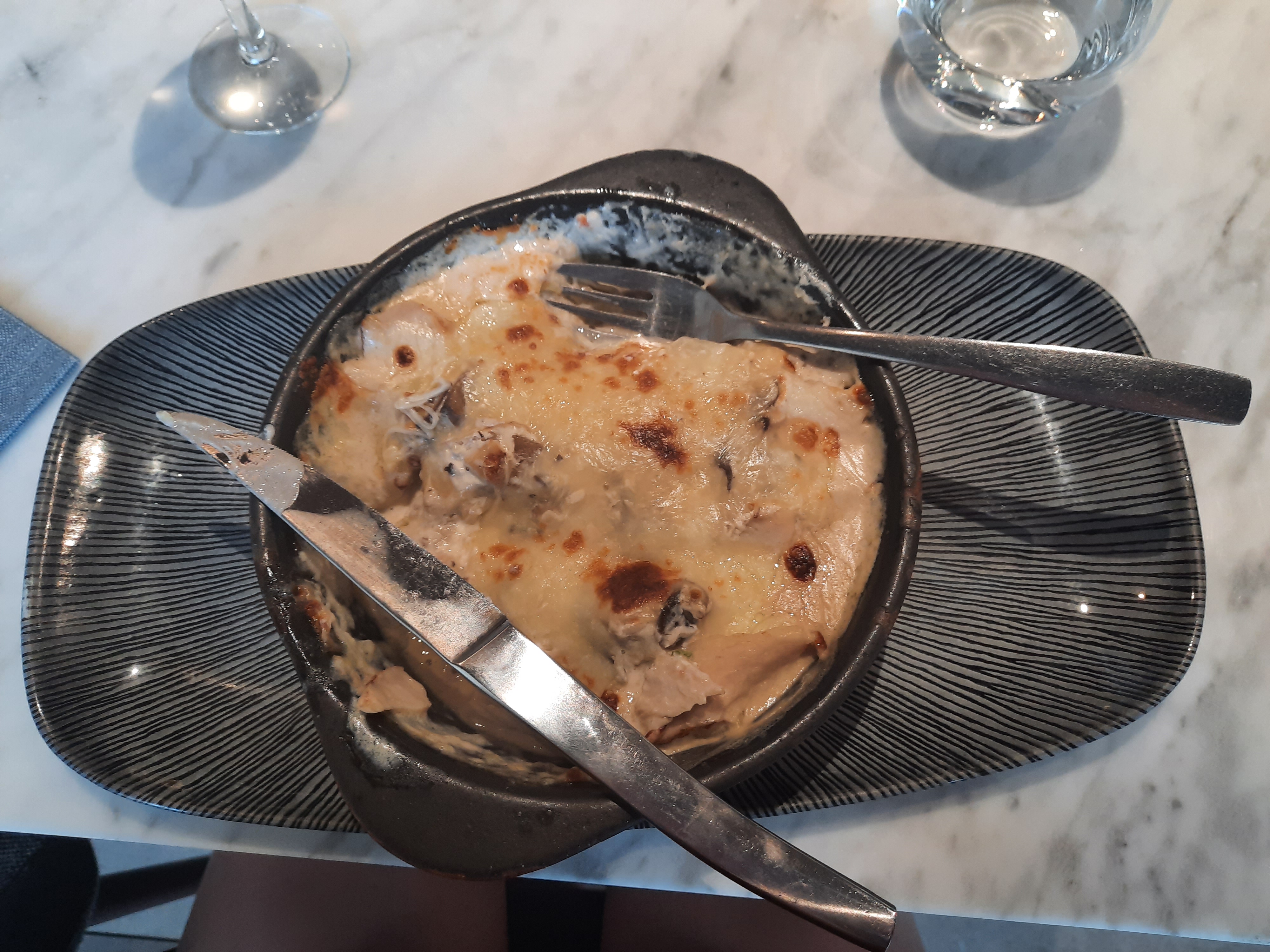 Le restaurant est beau, le personnel d'accueil est souriant. Mais notre serveur n'avais pas envie d'être là... pas de sourire, pas de parole et de l'incompréhension pendant toute la durée du service. Le plat de lasagne était top ! Mais servi encore brûlant et donc impossible à manger. Le dessert, voir photo, est dérisoire. 2 cuillères à café en terme de proportion... c'est inutile de proposer des dessert comme ça. Surtout après 20 minutes d'attente. Par contre la table a été débarrassée en 10 secondes... Dommage