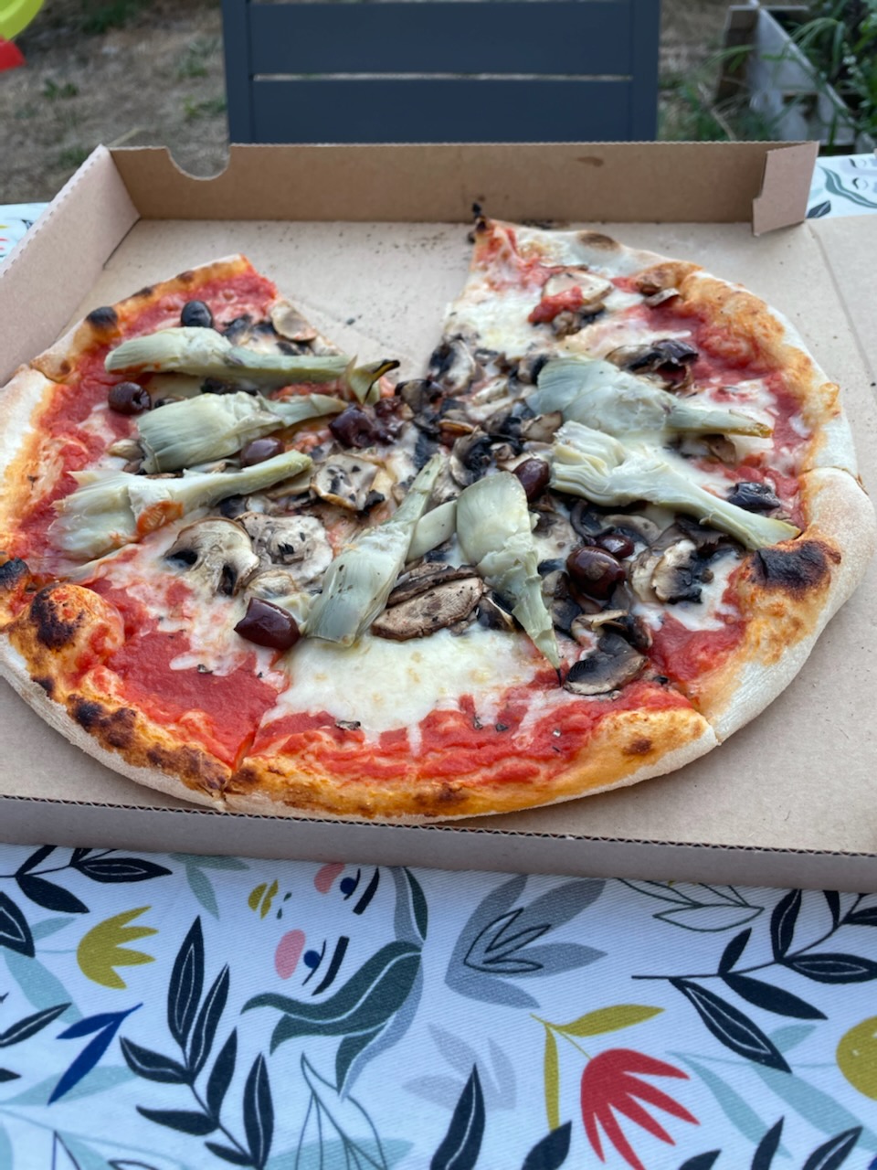 Dans un environnement où vous avez 3 pizzerias, celle -ci était à l'époque, notre choix (mobilier/personnel/nourriture). Ce soir là, elle a dégringolé dans notre estime. Dernière fois que nous y allons..la pizza dans sa composition et structure n'est pas digne, on aurait dit qu'elle avait déjà été mangé. Voir photo. J'en ai commandé une d'un autre restaurant via UBER, Y a pas de comparaison possible. Désolée de voir que la qualité a disparu au profit du chiffre.