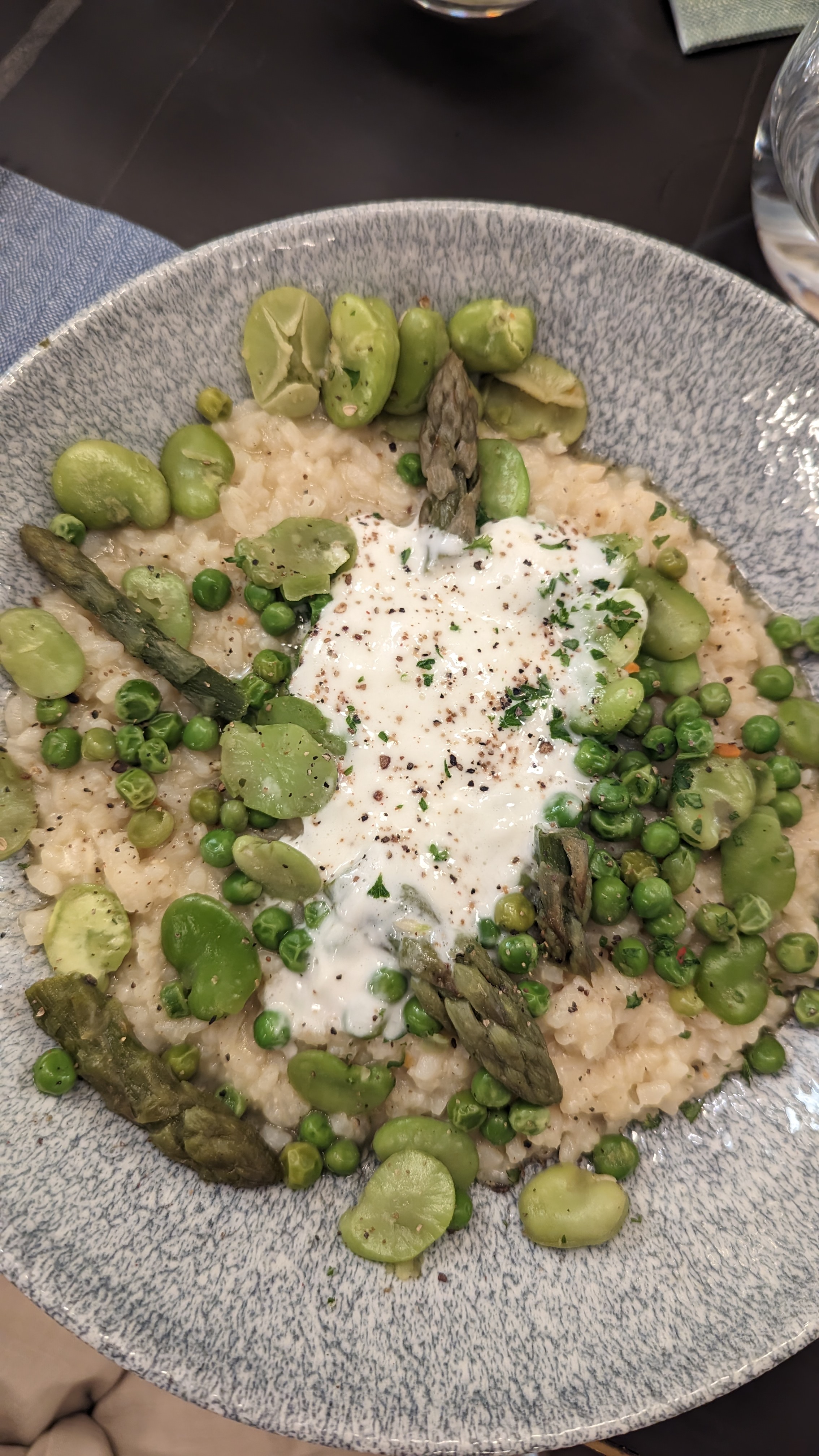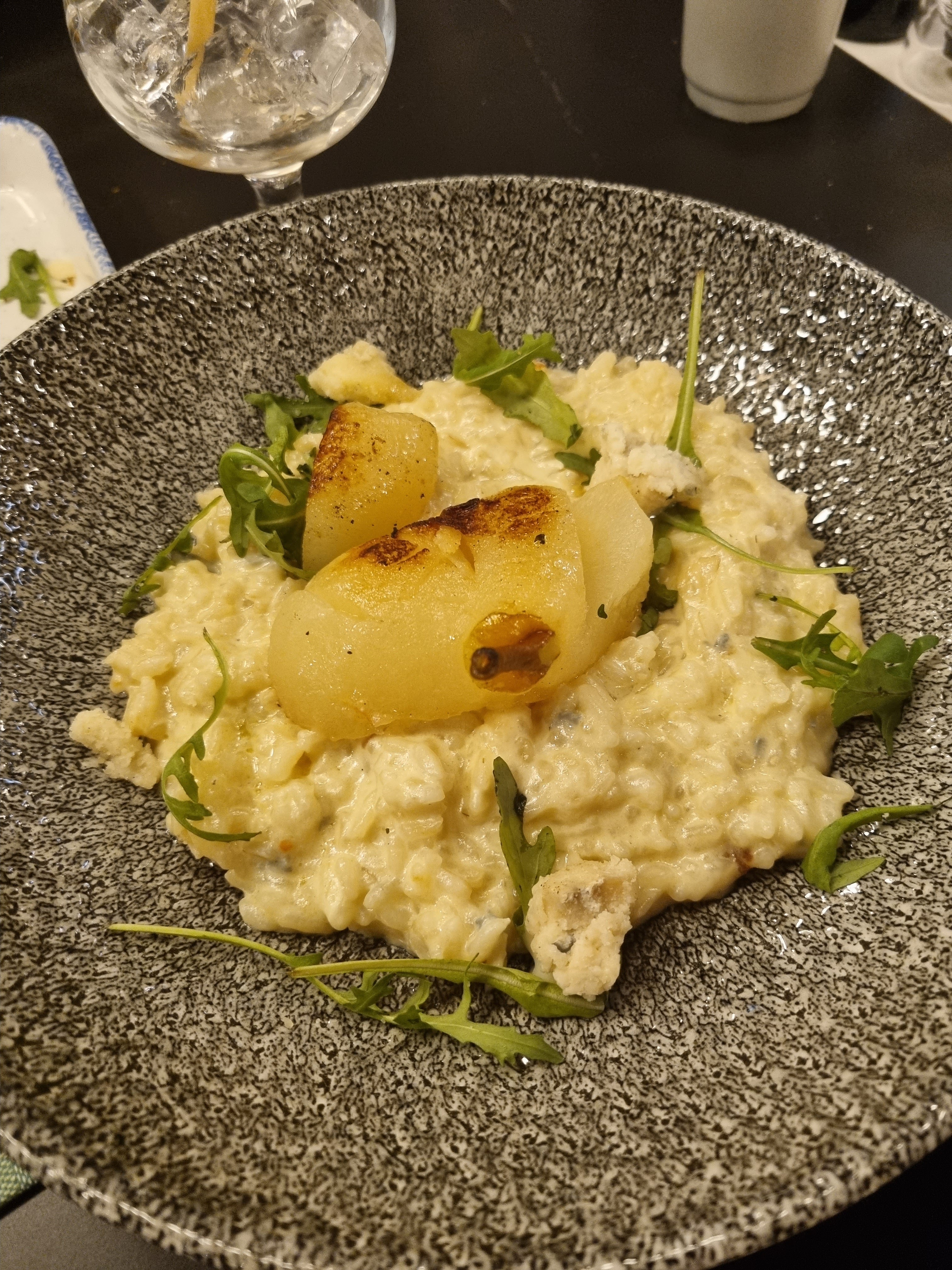 Première fois que j'y viens c'était vraiment délicieux ! Le risotto a la poire et gorgonzola 🥰 et le dessert mascarpone pomme et biscuits parfait !!! Un petit peu trop de glaçon dans le cocktails pour le prix ... Mais très bon . La déco est sympas et les tables sont assez espacées c'est agréable . J'y retournerai ☺️