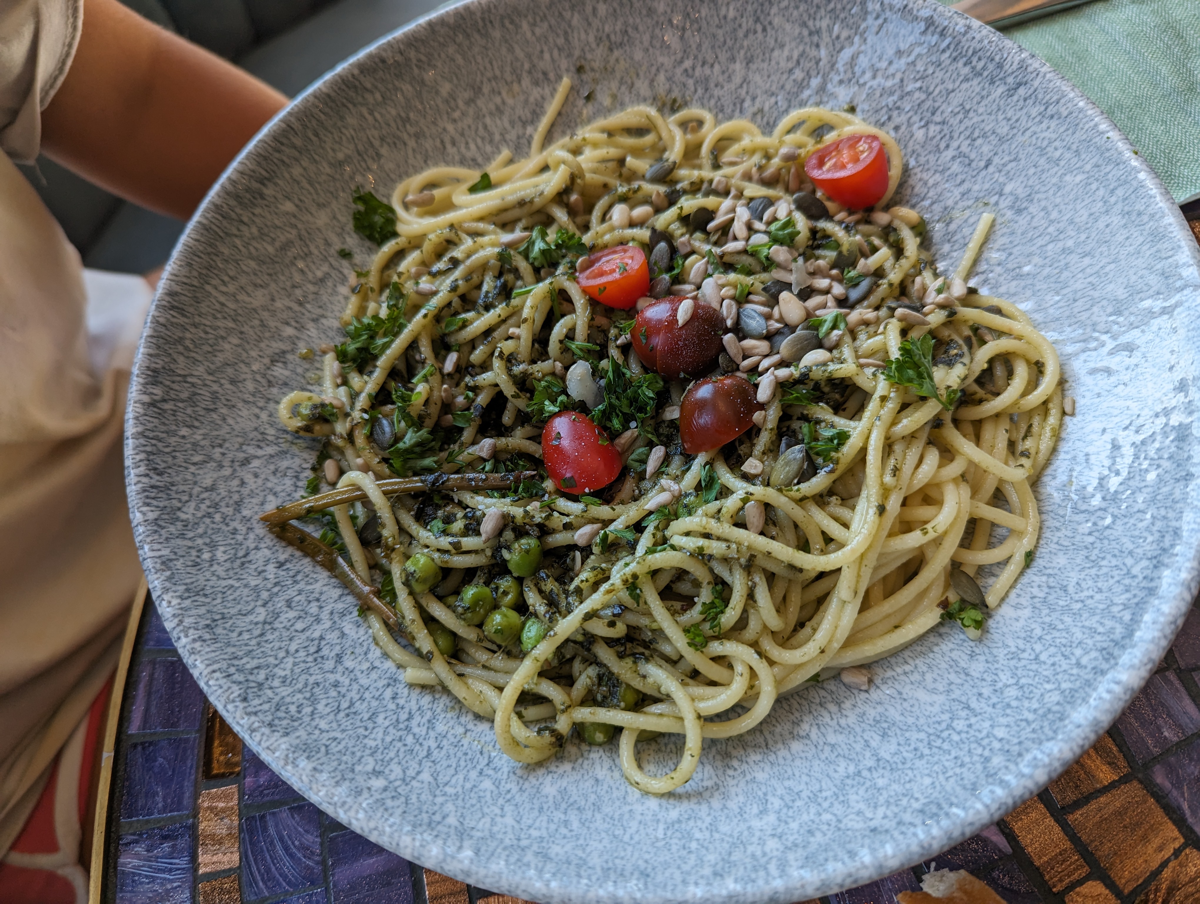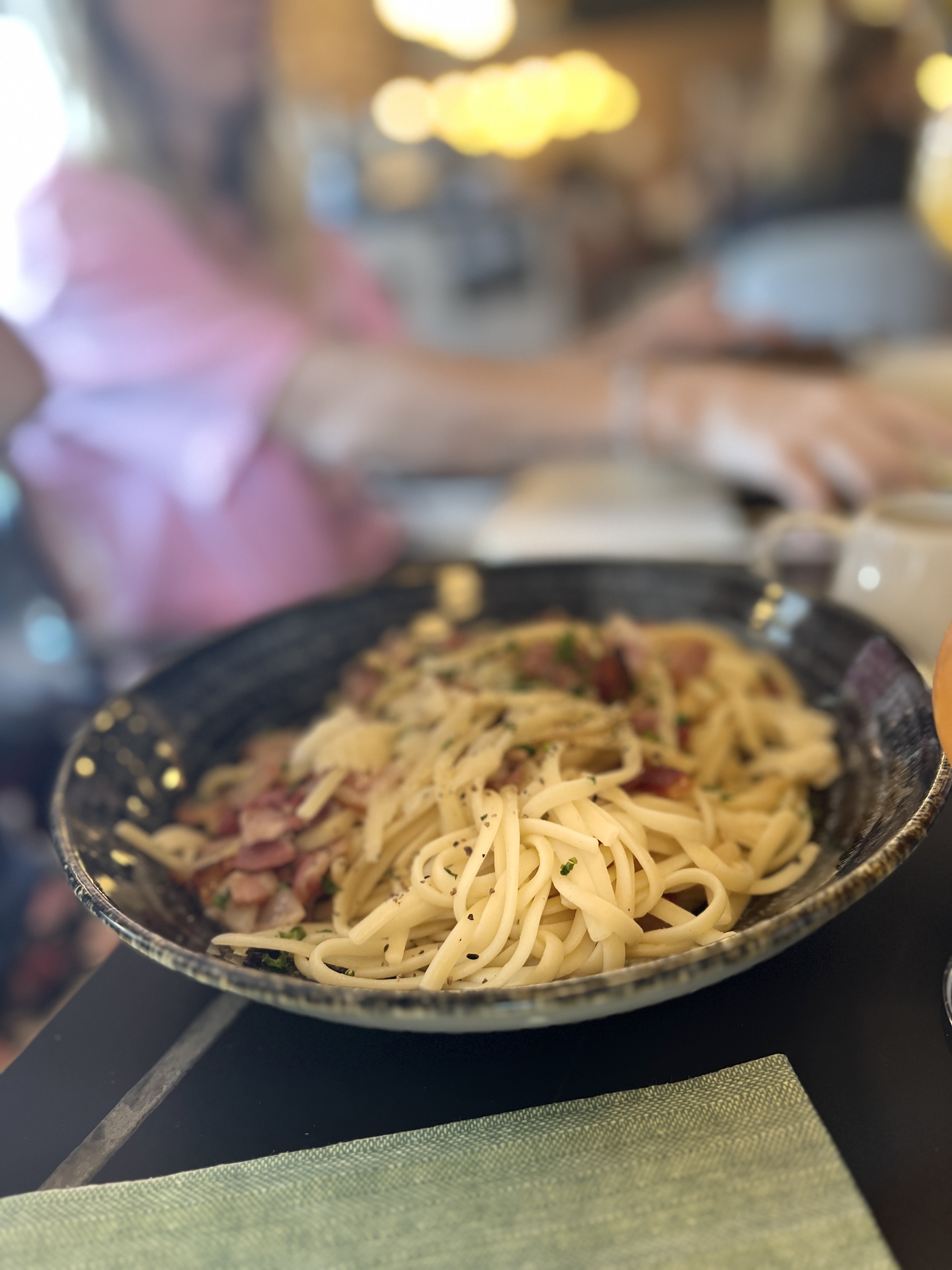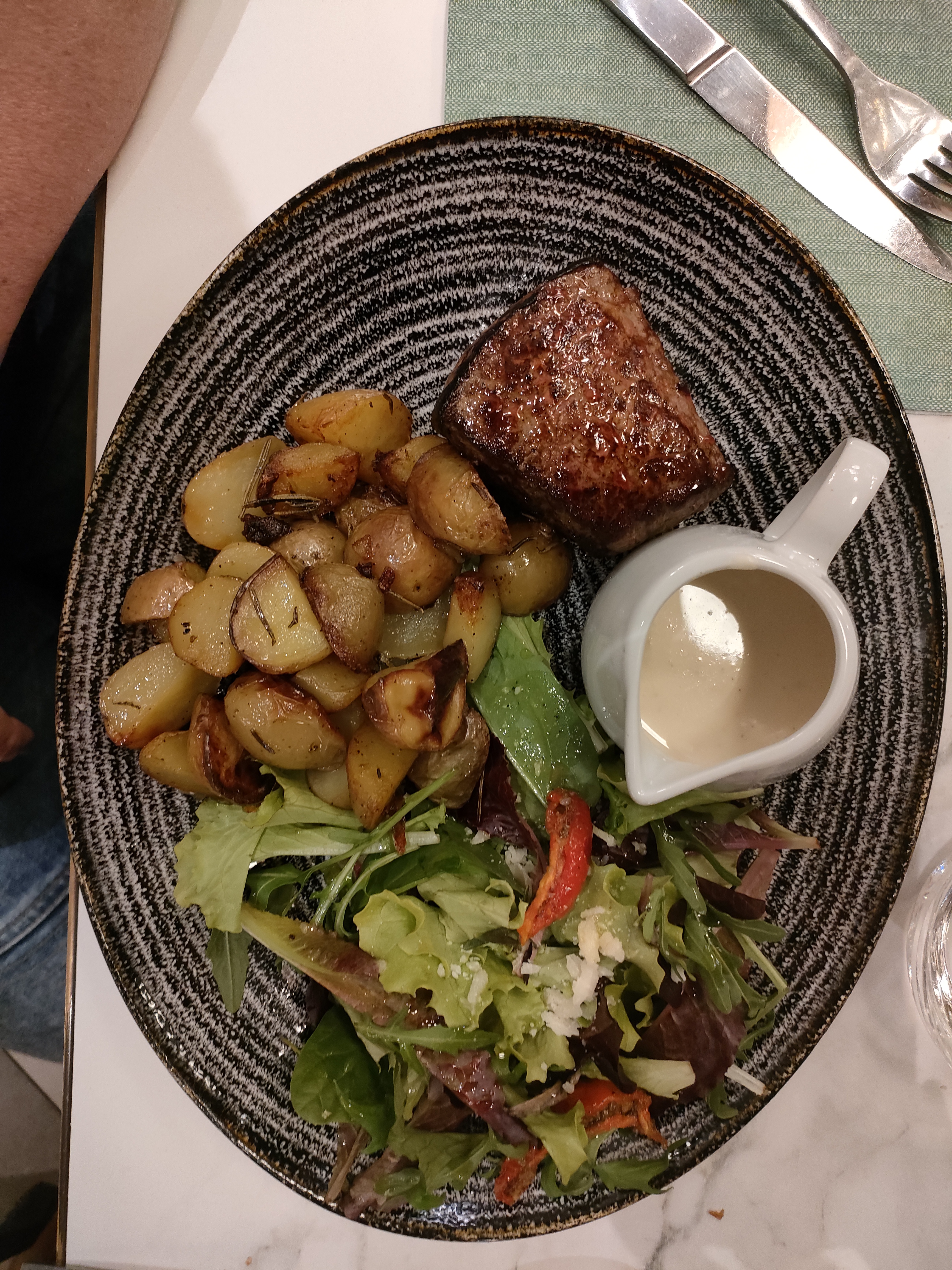 Décor sympa, plat et dessert très bons, spritz limoncello bon aussi. Par contre pas mal d'attente pour passer commande, il fallait à chaque fois appeler une serveuse au bout d'un moment.
