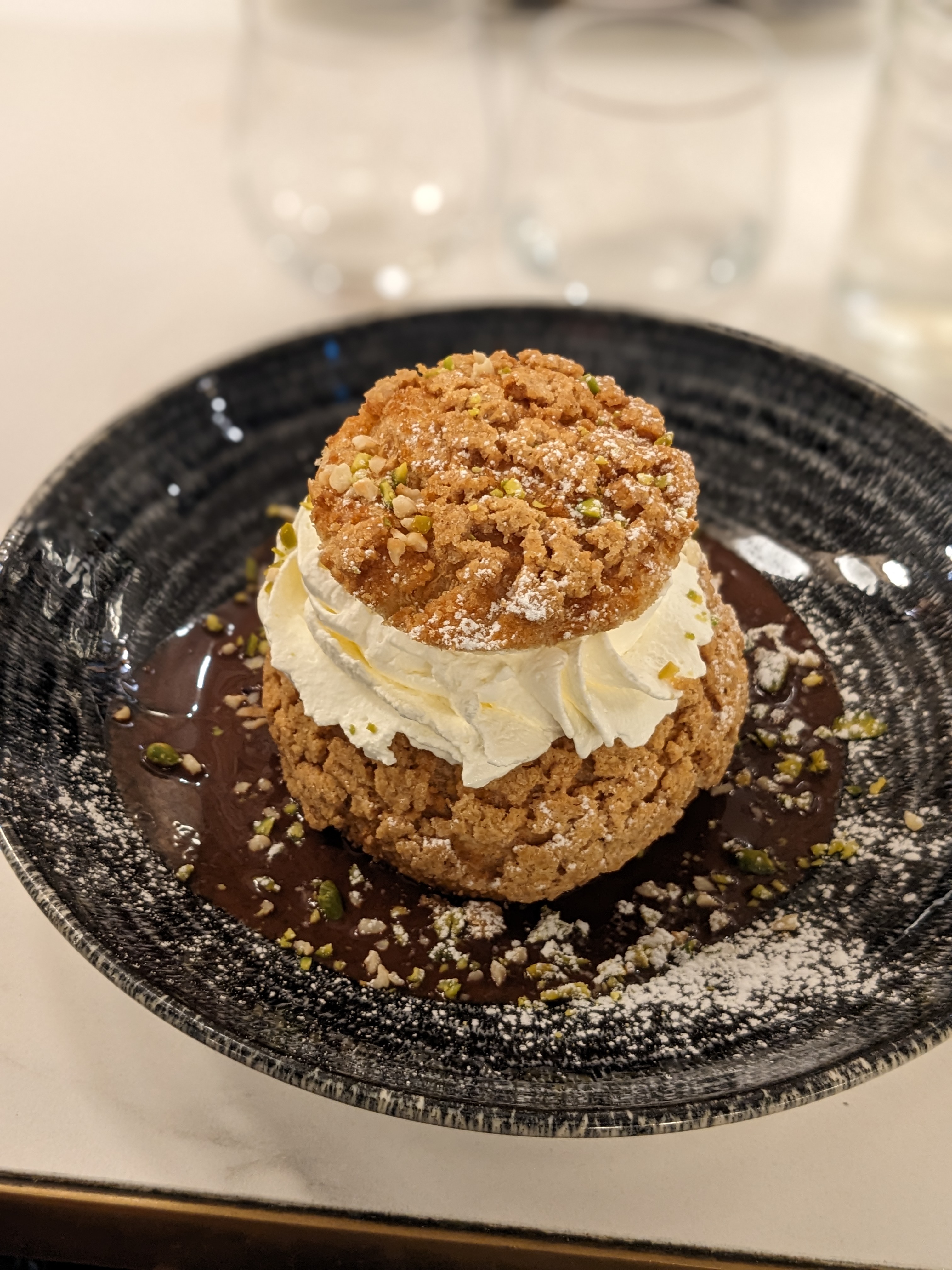 De bons plats italiens bien garnis et un service à l'écoute Nous étions un groupe de 10 personnes, on nous a placé sur un grand canapé agréable Le choux façon profiterole est juste énorme ! (Pour les vrais gourmands)