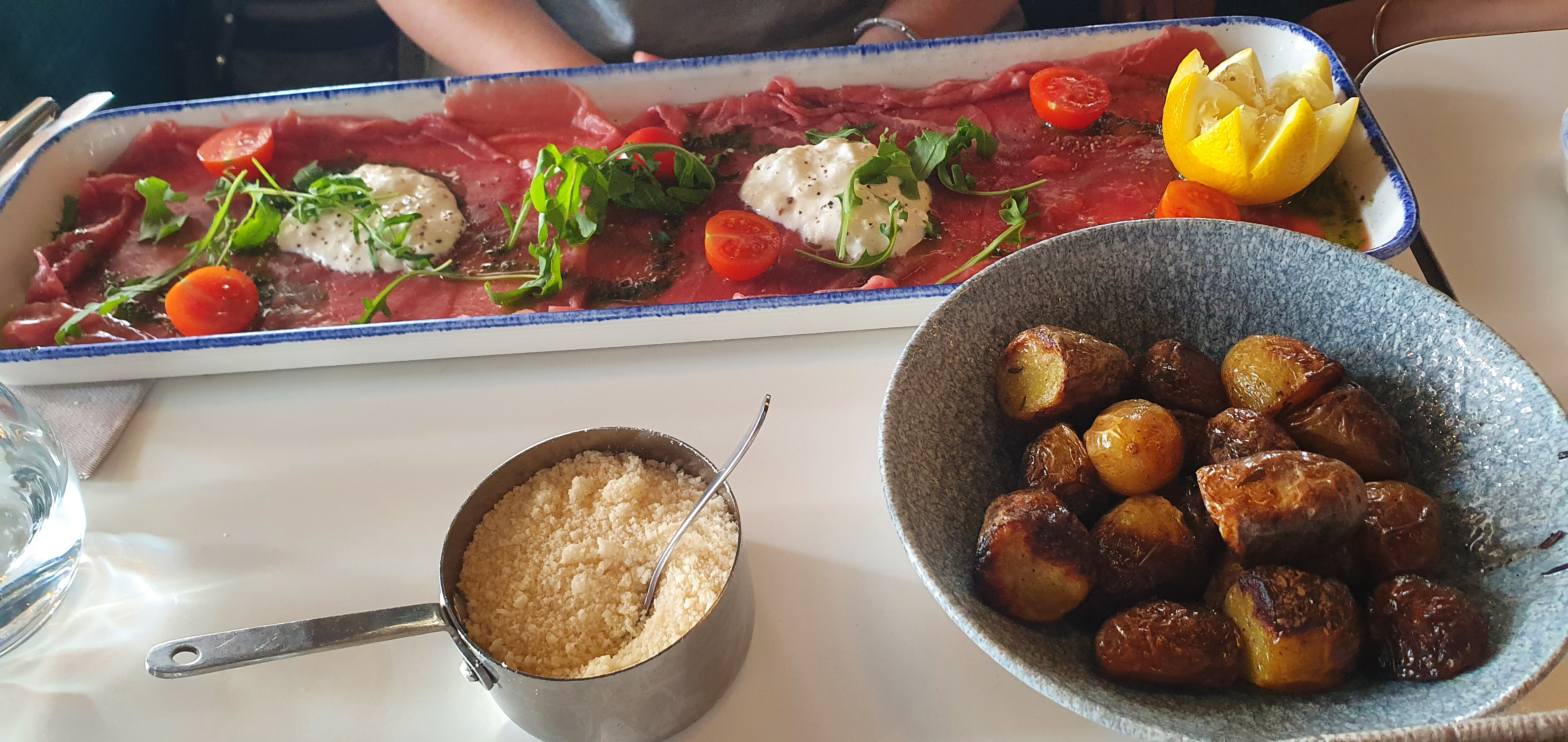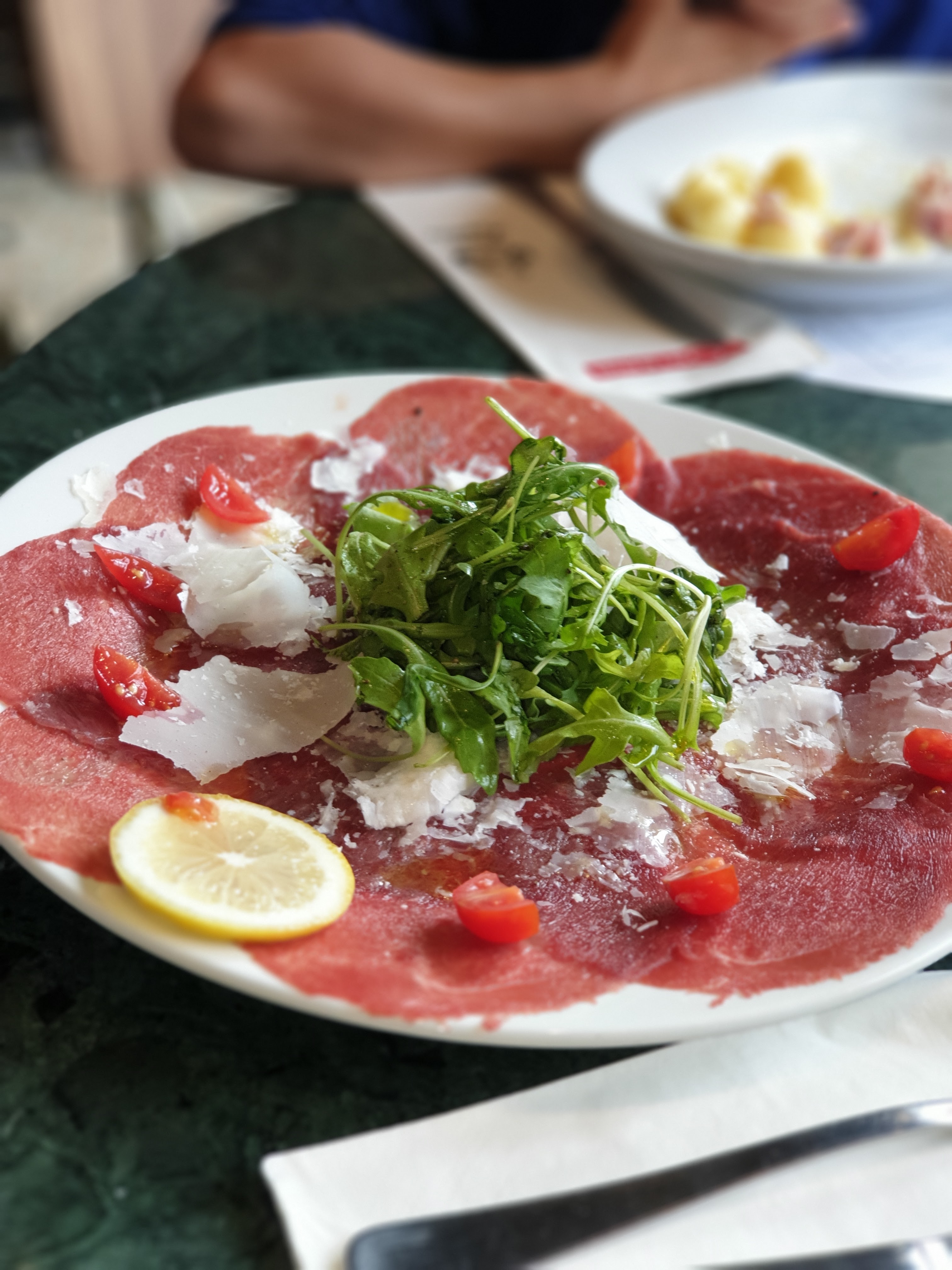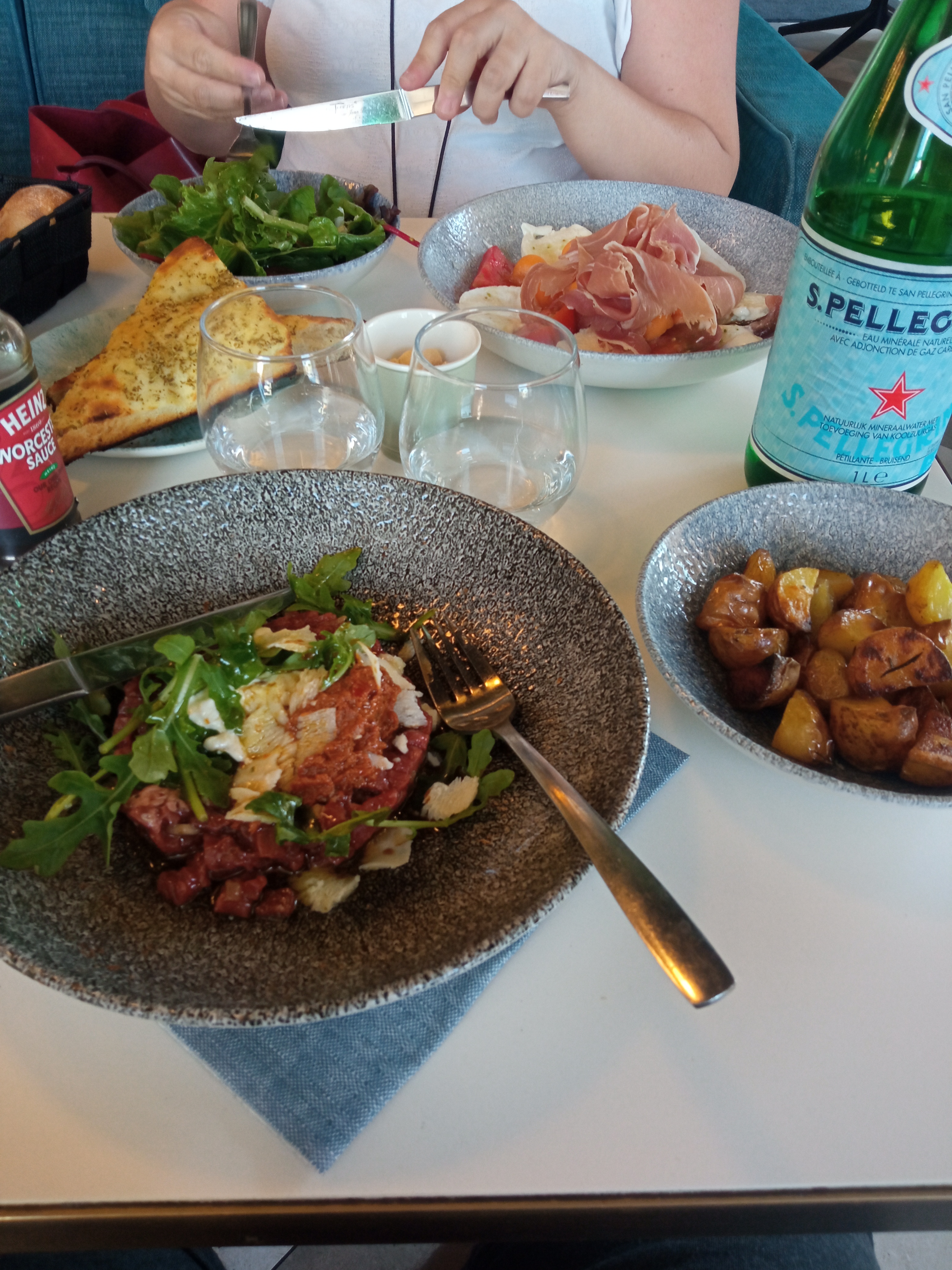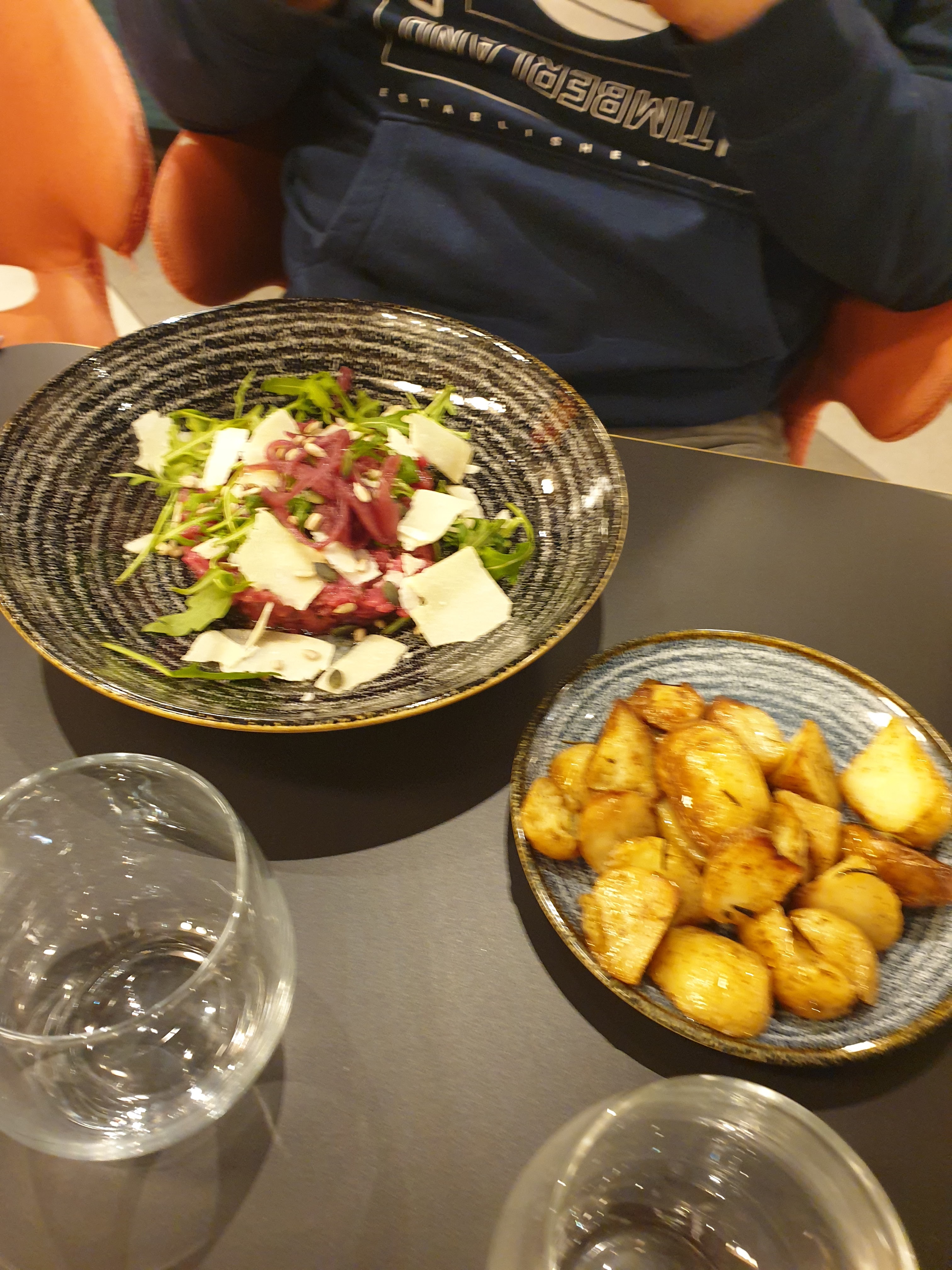 Cadre sympa. Bon service même si un peu long. Serveuse très gentille. Le carpaccio etait bon mais les pommes de terres beaucoup trop seches et il y avait beaucoup trop de sauce dans l'osso buco.