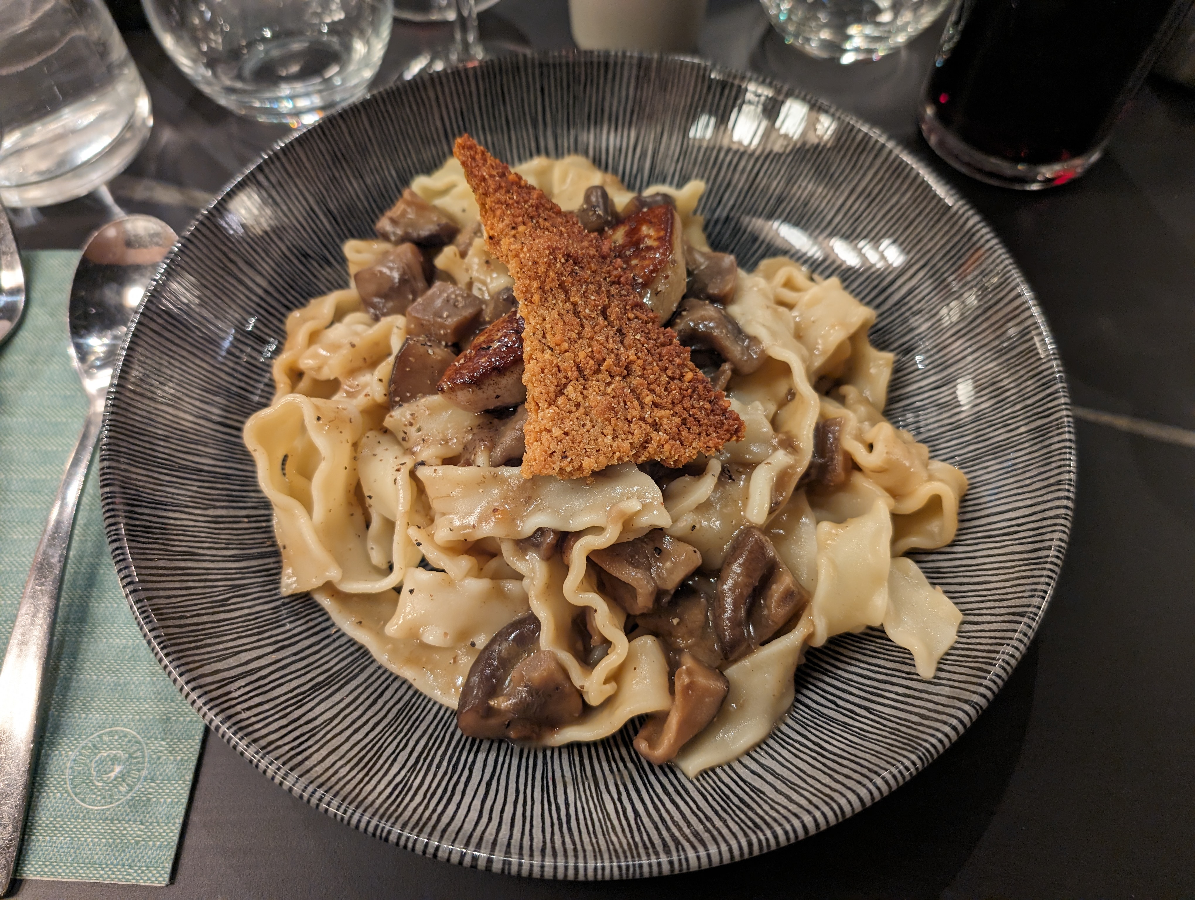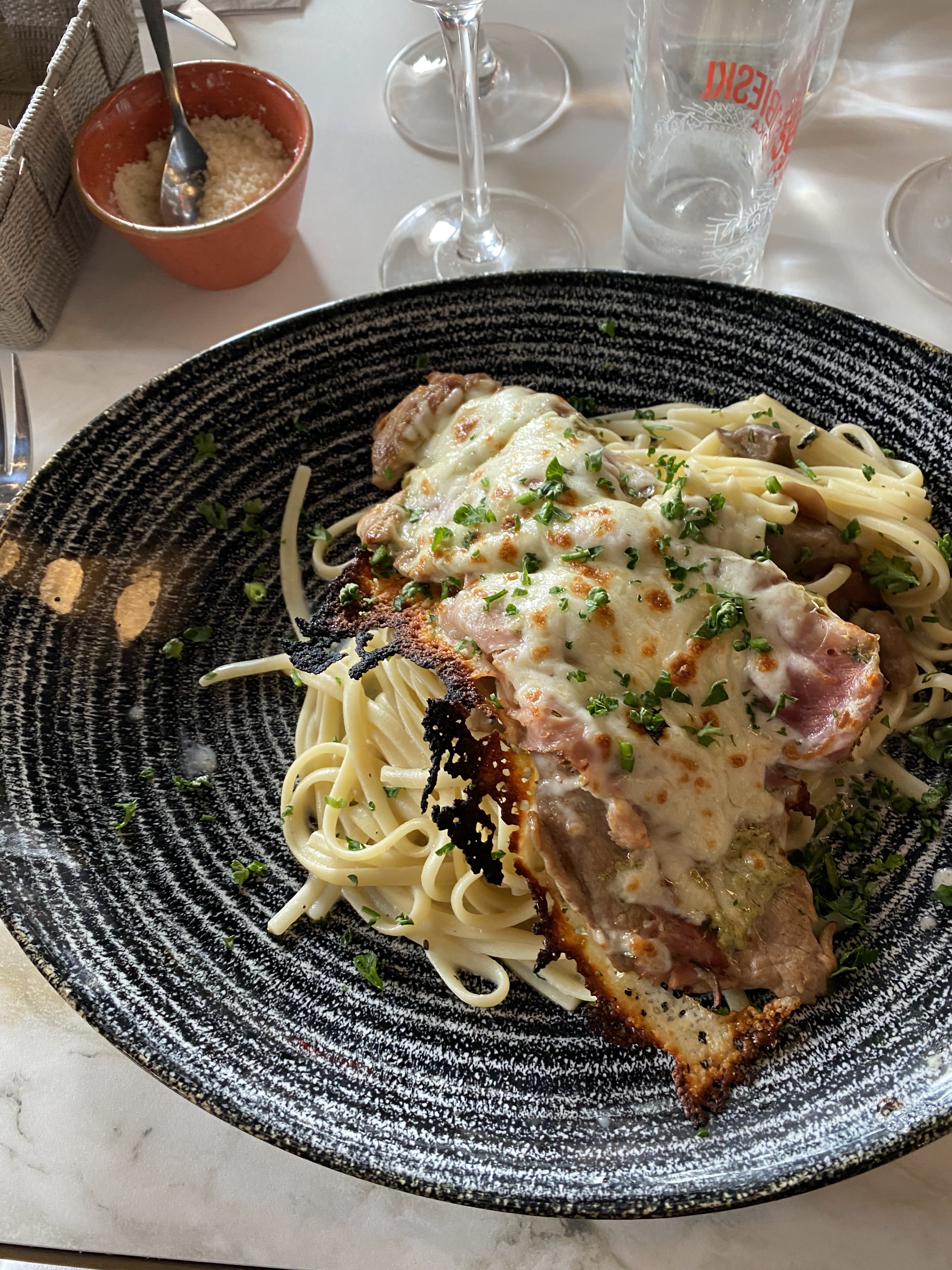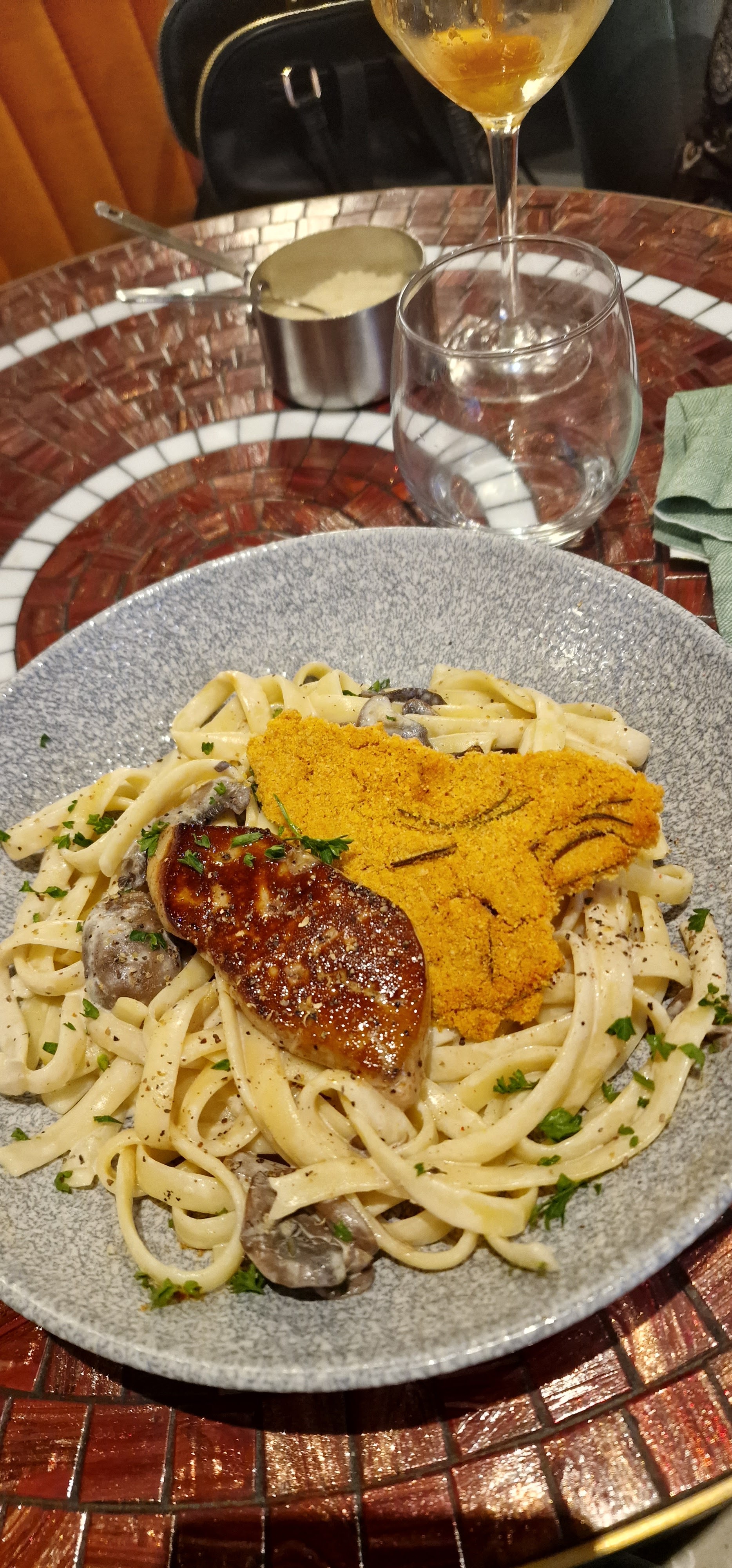 Restaurant italien un peu cher. Nous avons pris des pâtes Rossini et aux cèpes, le plat était un peu fade, heureusement qu'il y avait du parmesan à côté et ne présentait qu'une seule escalope de foie gras ça fait un peu pauvre pour un plat facturé à 22 €. C'est sympa mais un peu cher