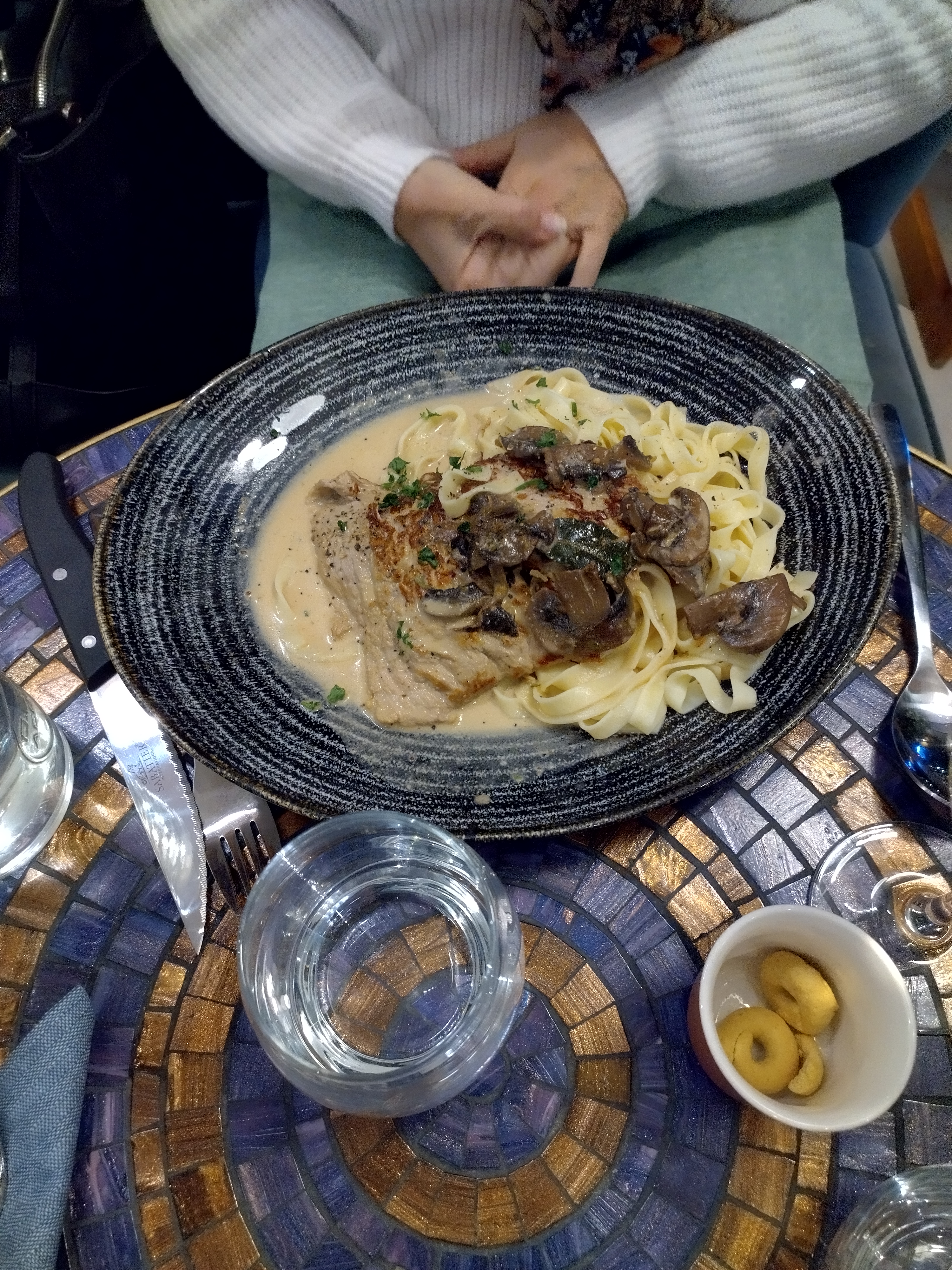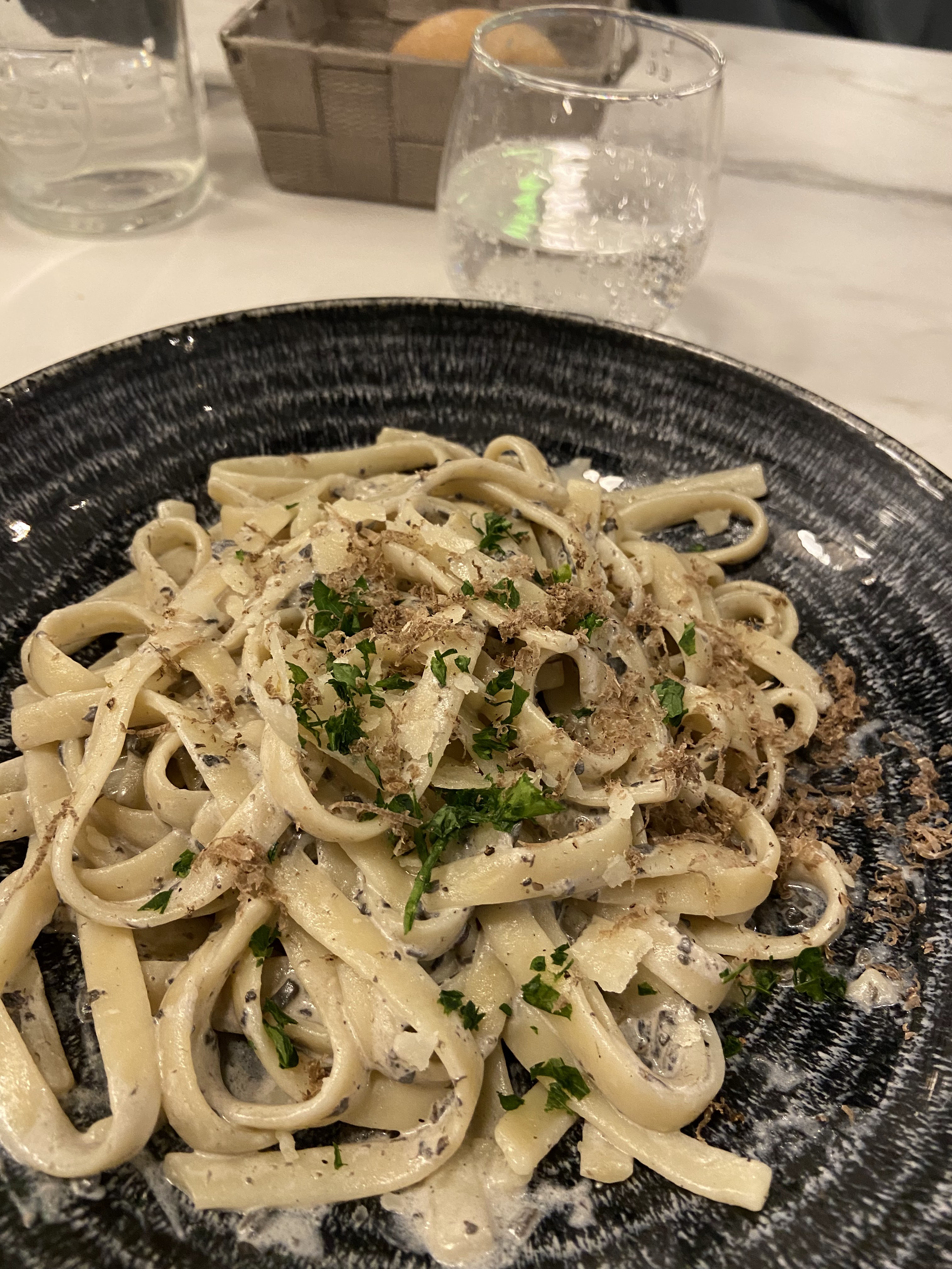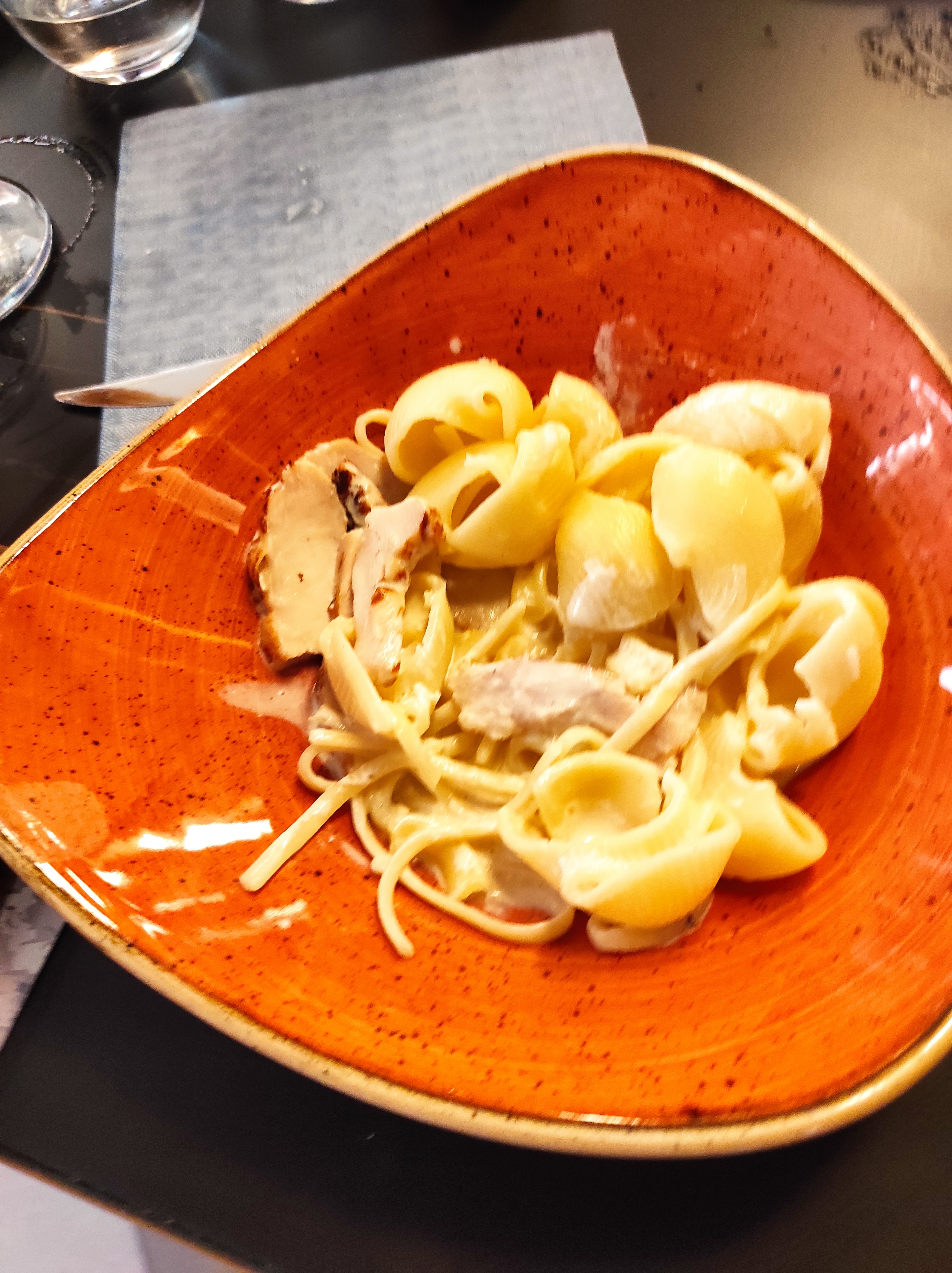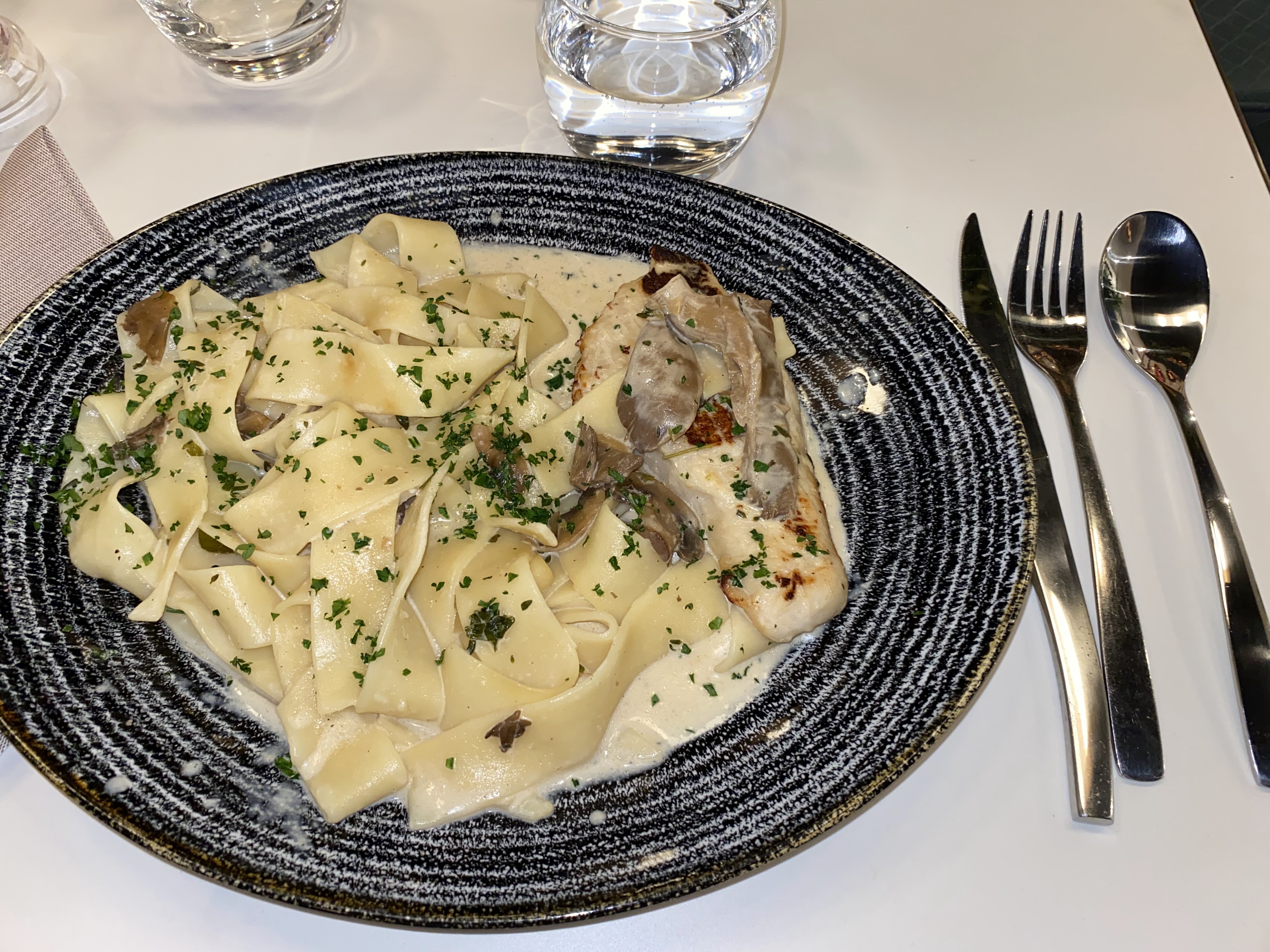 Restaurant italien un peu cher. Nous avons pris des pâtes Rossini et aux cèpes, le plat était un peu fade, heureusement qu'il y avait du parmesan à côté et ne présentait qu'une seule escalope de foie gras ça fait un peu pauvre pour un plat facturé à 22 €. C'est sympa mais un peu cher
