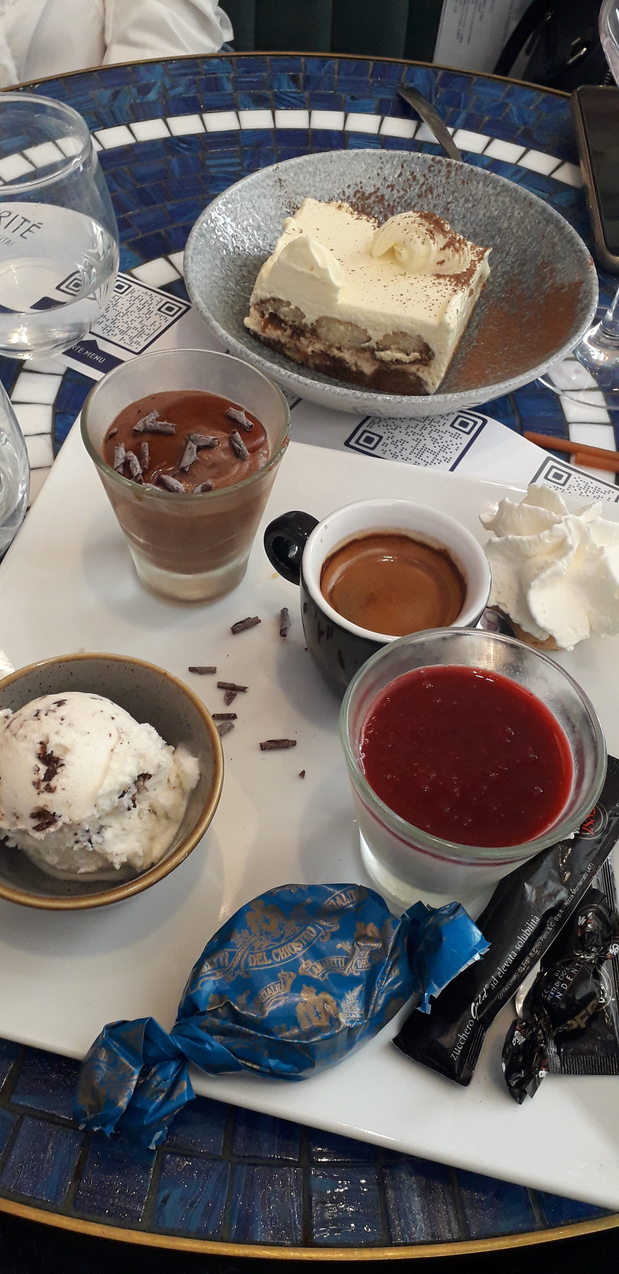Très peu de choix niveaux pâtes Très déçu par le dessert Fruits du jour 7,60€ pour deux fraises couper en 4 (Étant intolérant au lactose j’ai demandé sans glace vanille ni crème fouettée) , Le tiramisu pas digne de porter ce nom , le choux à la crème tte très sec et la sauce tomate de la pizza très salée !!! En bref très déçu de ce restaurant ils ne me verront plus