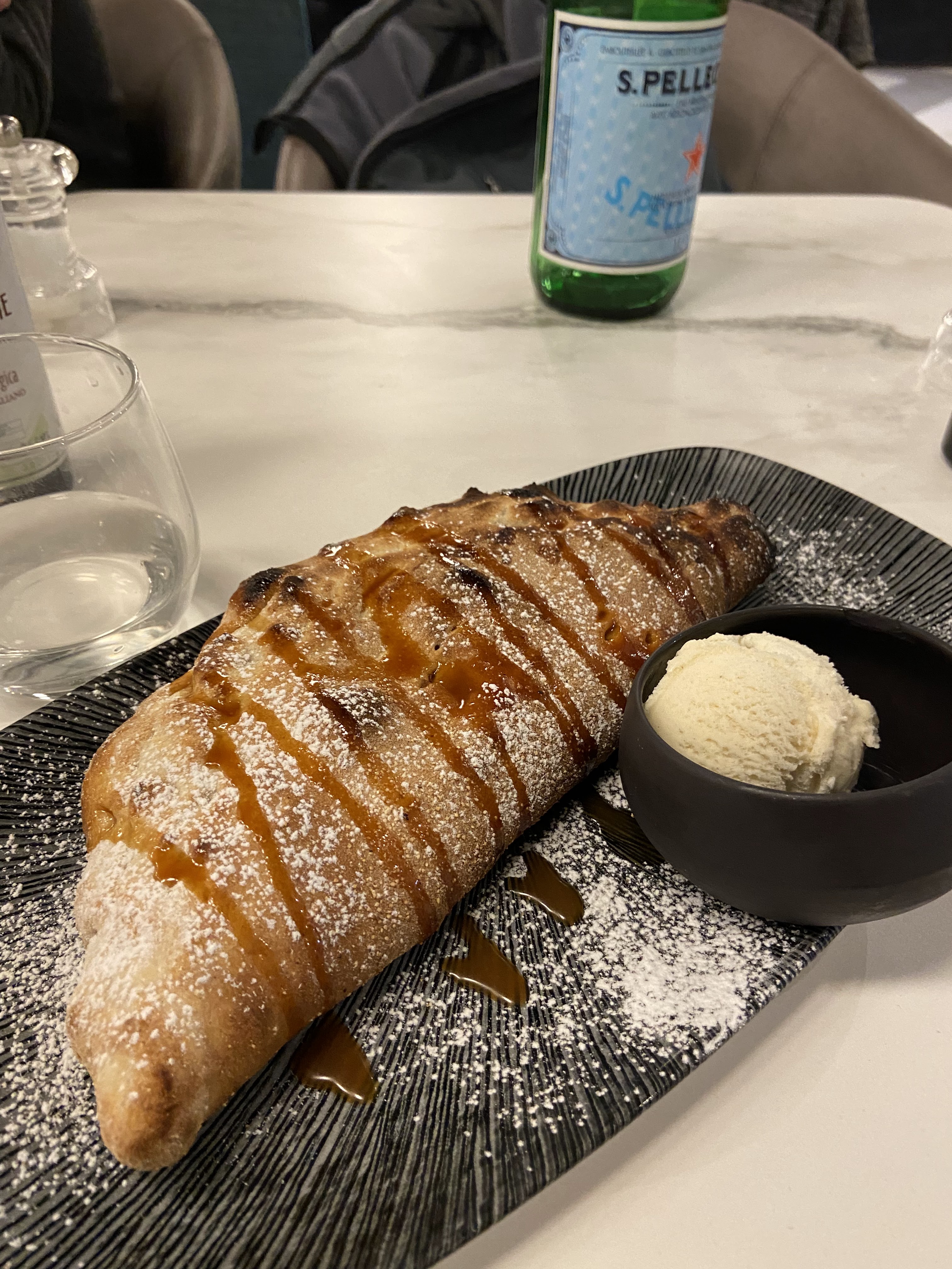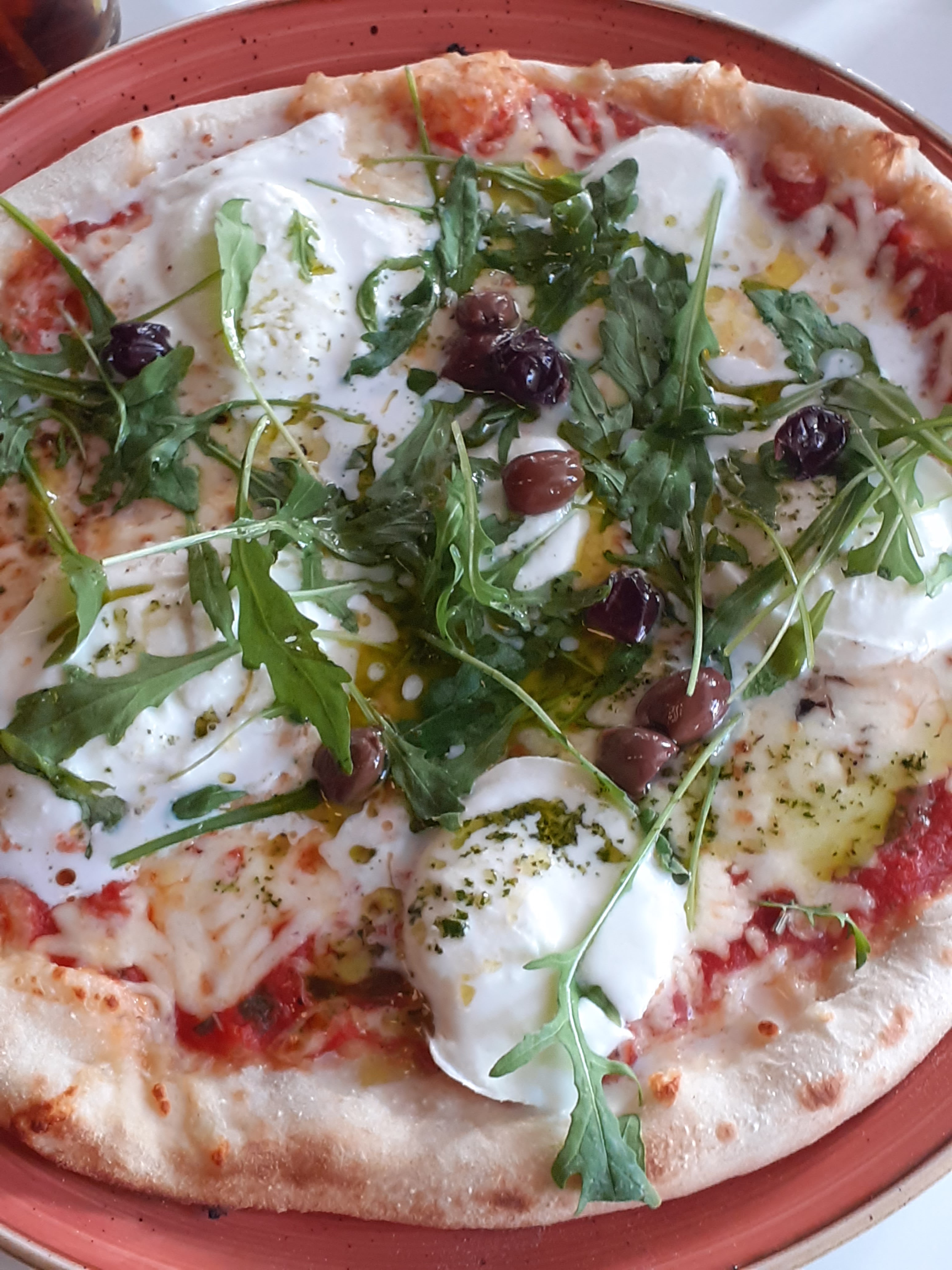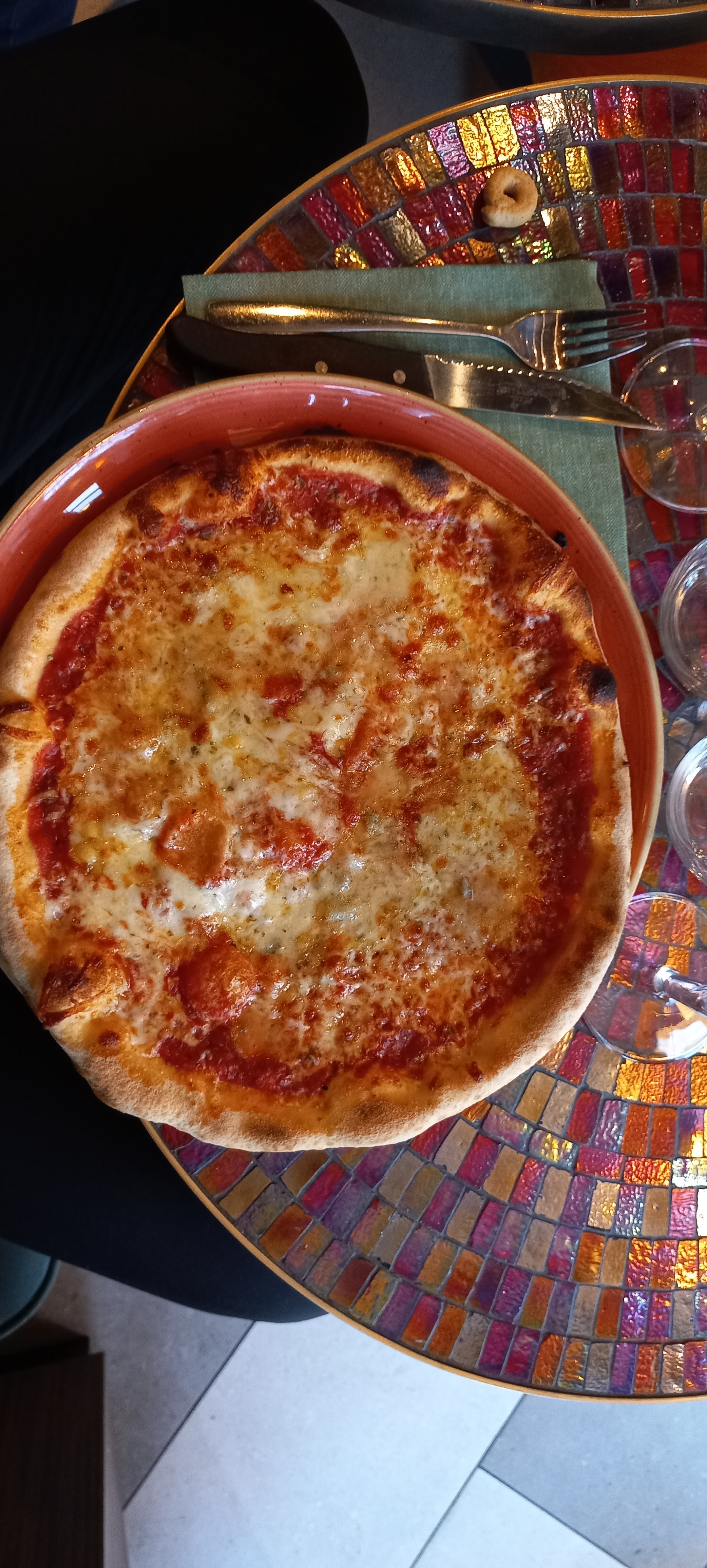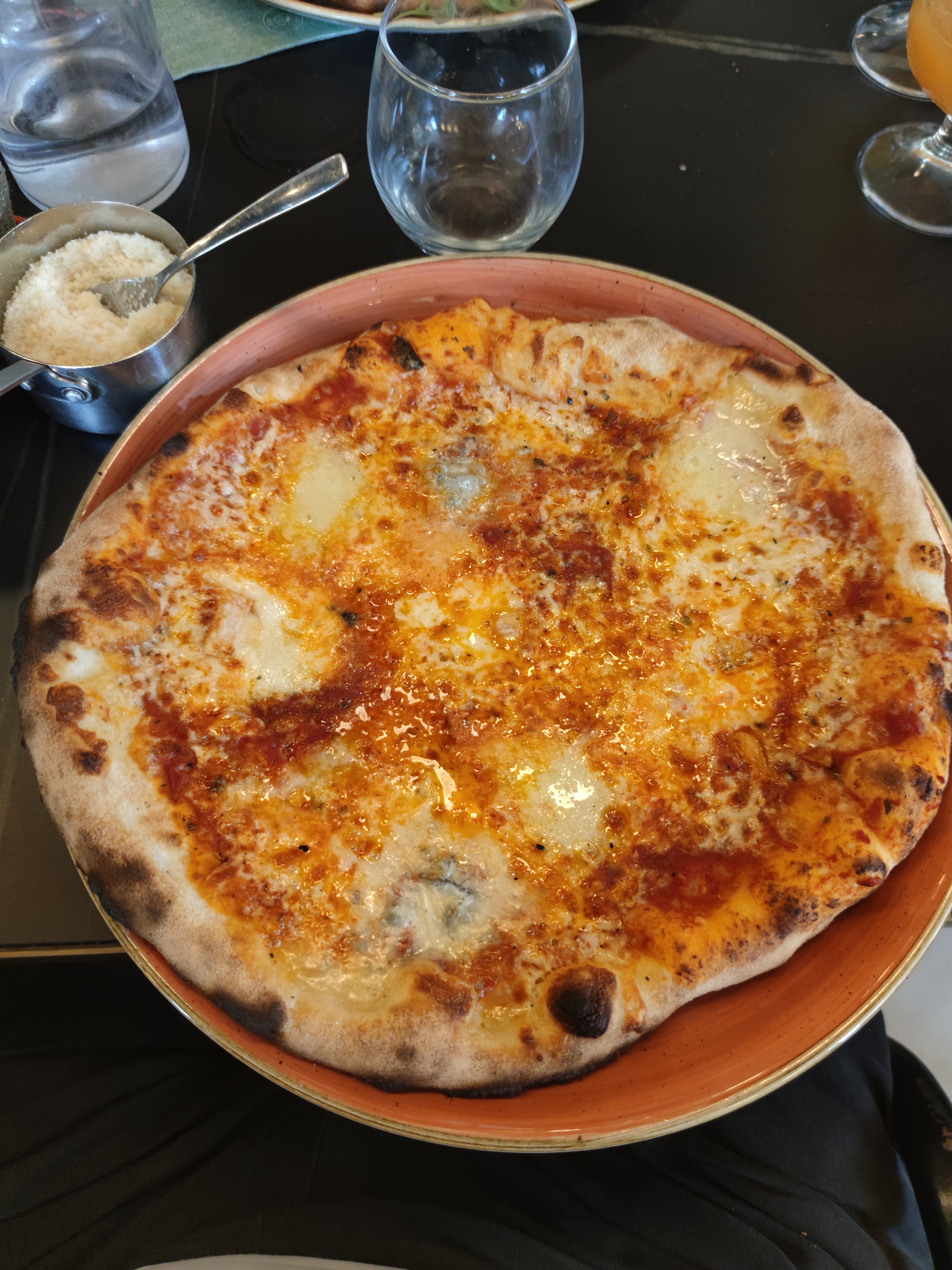 Joli cadre. Assez calme. Nous avons bien mangé. Le service était à la fois rapide mais pas speed non plus. La pizza était une bonne pizza Napolitaine (avec bord Corniccione) croûte légère et alvéolée. Manquait juste un peu de cuisson je pense. Les desserts très bons et généreux.