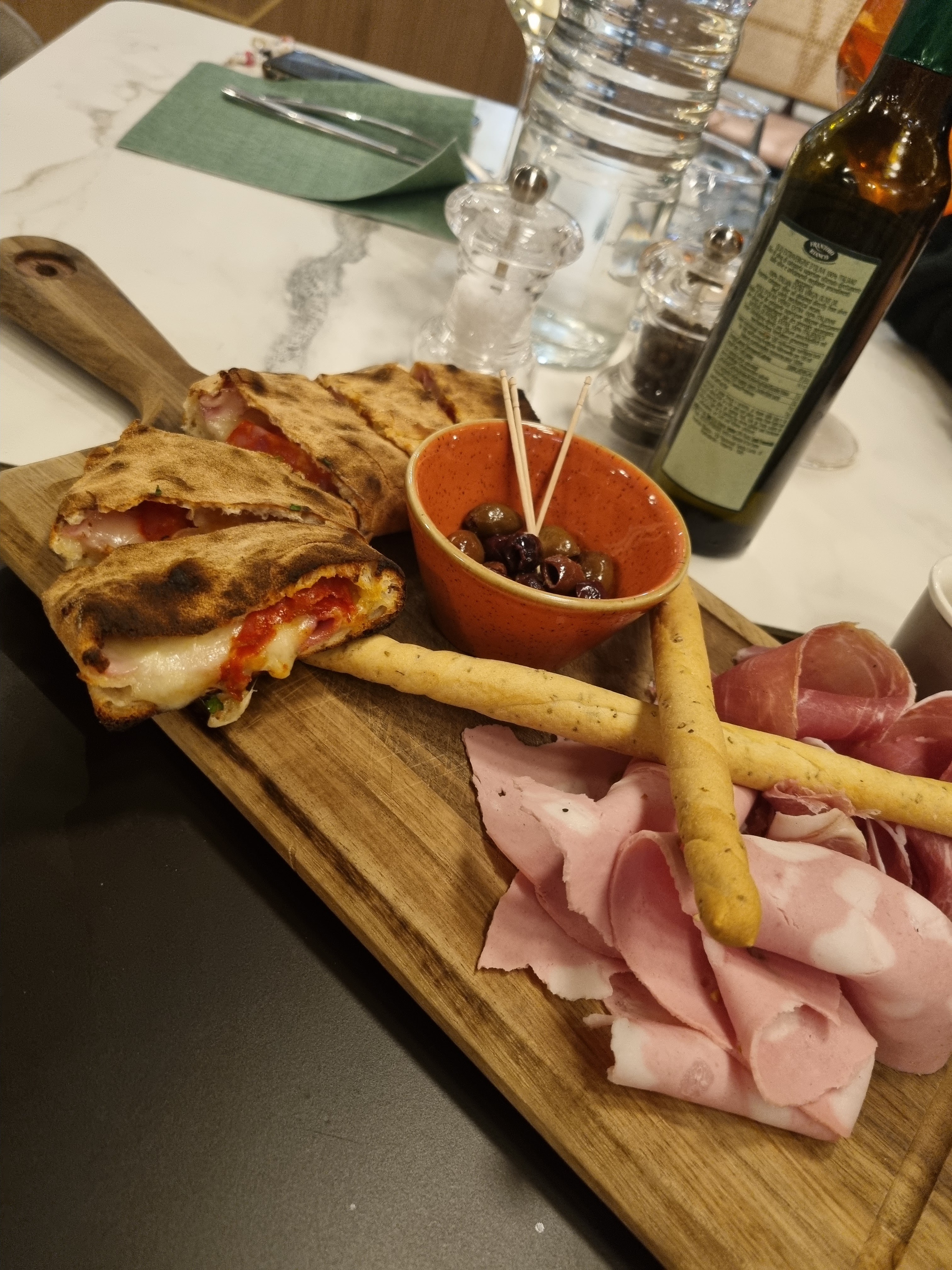 En antipasti calamars frits, mozza panées ...etc, que dire, excellentissimo, en plat pour ma part des tagliatelles fois gras/cèpe, excellent.., dessert trilogie de glace chocolat...les prix très correct, pour une qualité assez élevée, faisant beaucoup de restaurants, c'est une très bonne surprise dans la zone de plan de campagne, j'y retournerai, cadre beau, WC propre et bien décoré, pensez à réserver beaucoup de monde, ça vaut le cou😉