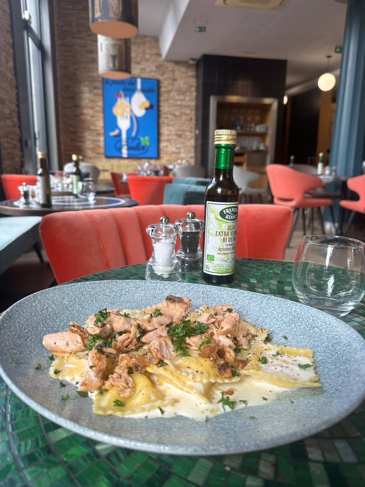 Beau restaurant italien avec des produits frais et maisons Belle adresse et belle carte de produits variés et divers Un bon rapport qualité / prix, avec des assiettes copieuses Service agréable professionnel et attentionné Une belle découverte